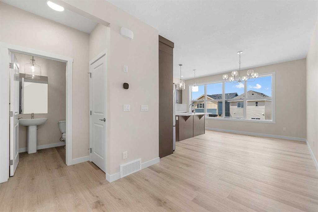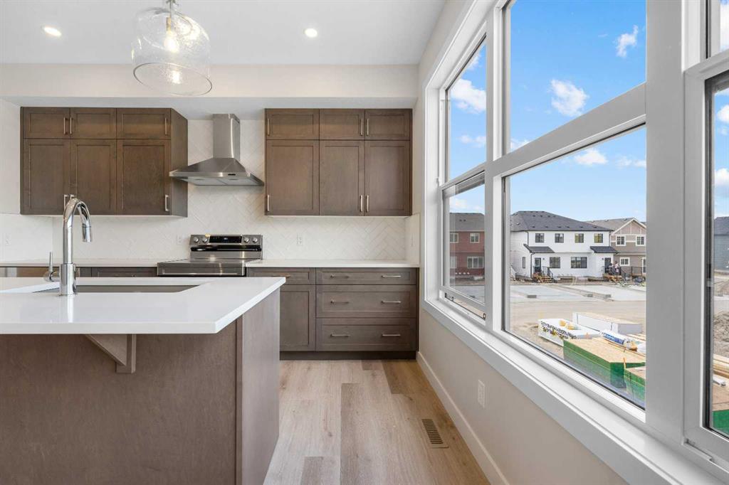 ** Brand New No Condo Fee Townhome Built by Genesis Homes ** Theo Model | Ready for Summer 2026 | 3 Beds | 2.5 Baths | Double Attached Garage | Main Level Den/Office | Incredible Open Floor Plan | Top of the Line Finishes | Quartz Countertops | Designer Curated Backsplash | Full Height Cabinets | Builder Package Stainless Steel Appliances | Gas Line to Range | Walk-in Pantry | Wide Plank LVP Flooring | Sizeable Bedrooms | Upper Level Hall Laundry | Smart Automated Home | Balcony | BBQ Gas Line | Double Attached Garage | James Hardie Siding. This stunning Theo model by Genesis boasts 1,687 SqFt, 3 bedrooms, 2.5 bathrooms and a spacious open floor plan layout that’s perfect for families, professionals, or anyone who loves extra space. The front door opens to a main level foyer with closet space and a flex den. With large windows and high ceilings this space is space has the versatility to be an office space with a peaceful retreat for work or creativity. Head upstairs to the 2nd level to a grand floor plan both open and functional. The kitchen is outfitted with sparkling quartz countertops, ample cabinet storage, a gas line and a stainless steel builders appliance package. The centre island in the kitchen is equipped with a barstool seating area making it the perfect space to enjoy small meals and socialize while you cook. The walk-in pantry is a bonus to your dry good storage. The dining room paired with the kitchen makes for an easy stove to table transition. The spacious living room is the perfect area to unwind with your family in the evenings and is ideal for hosting guests. Just off the living room is a door to your private balcony with a gas BBQ line for those summer cook outs! The uppermost level is paired with 3 bedrooms, 2 full bathrooms and hall laundry. The primary bedroom is a personal retreat with a deep walk-in closet and private 4pc ensuite bath with a deep tub/shower combo. Bedrooms 2 & 3 share the main 4pc bath with a single vanity and tub/shower combo. The upper level laundry is a treat as its located near all the bedrooms. The double attached garage secures you 2 year round secured parking and space for seasonal storage. Located just moments from essential amenities and nestled close to a picturesque park, you’ll enjoy easy access to shops, dining, and outdoor activities. Take in breathtaking mountain views and sunsets as you stroll by the serene pond. Hurry and book your showing at this gorgeous Genesis home today! Genesis Builders Group follows the First-Time Home Buyer GST/HST Rebate to eliminate the 5% GST on qualifying new homes (up to $1 million) for qualifying first time home buyers.*Photos & iguide are of 153 Wild Rose Way, THEO Model. Colors and finishes may differ at the time of completion, discuss with Builder Directly for final pallets.