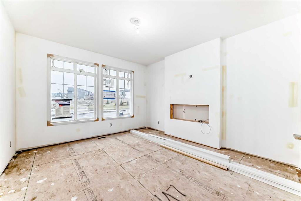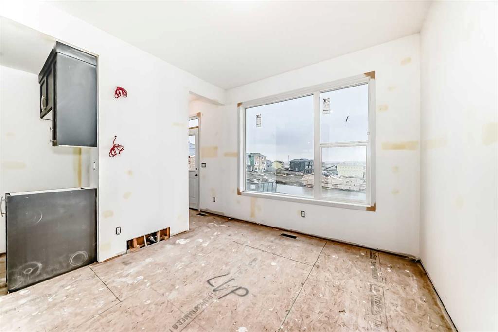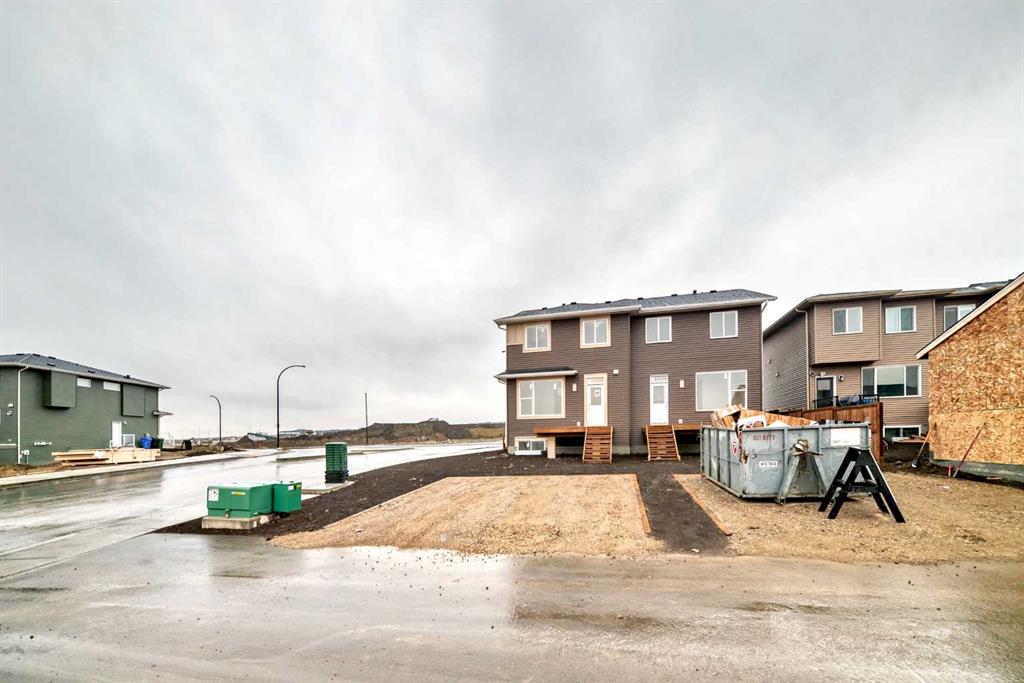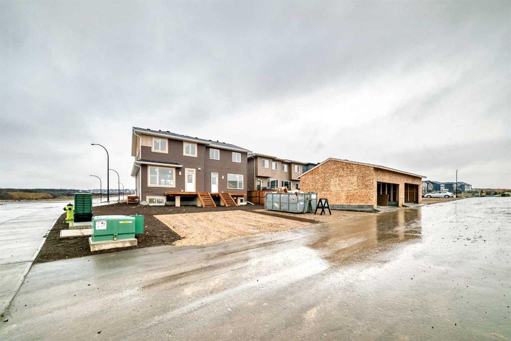 Welcome to this modern 3-bedroom duplex in the sought-after community of Glacier Ridge. The main floor offers an inviting living area with an electric fireplace, knock-down ceilings, vinyl flooring, and a stylish kitchen complete with a central island, quartz countertops, a built-in microwave, and a fridge with a water line. A half bath on this level provides added convenience for guests. Upstairs features three generous bedrooms, including a primary suite with its own 4-piece ensuite, plus a second 4-piece bathroom and a convenient laundry room. The basement includes a separate side entrance, a 9’ foundation, and rough-ins for a future suite, offering excellent potential for added living space or income generation. Outside, you’ll find a deck with a built-in gas line for your BBQ, plus a gravel parking pad providing easy off-street parking. Located in Glacier Ridge, one of Calgary’s newest and most desirable communities, this home blends modern comfort with everyday convenience.