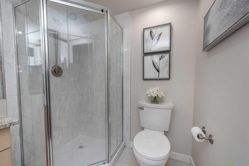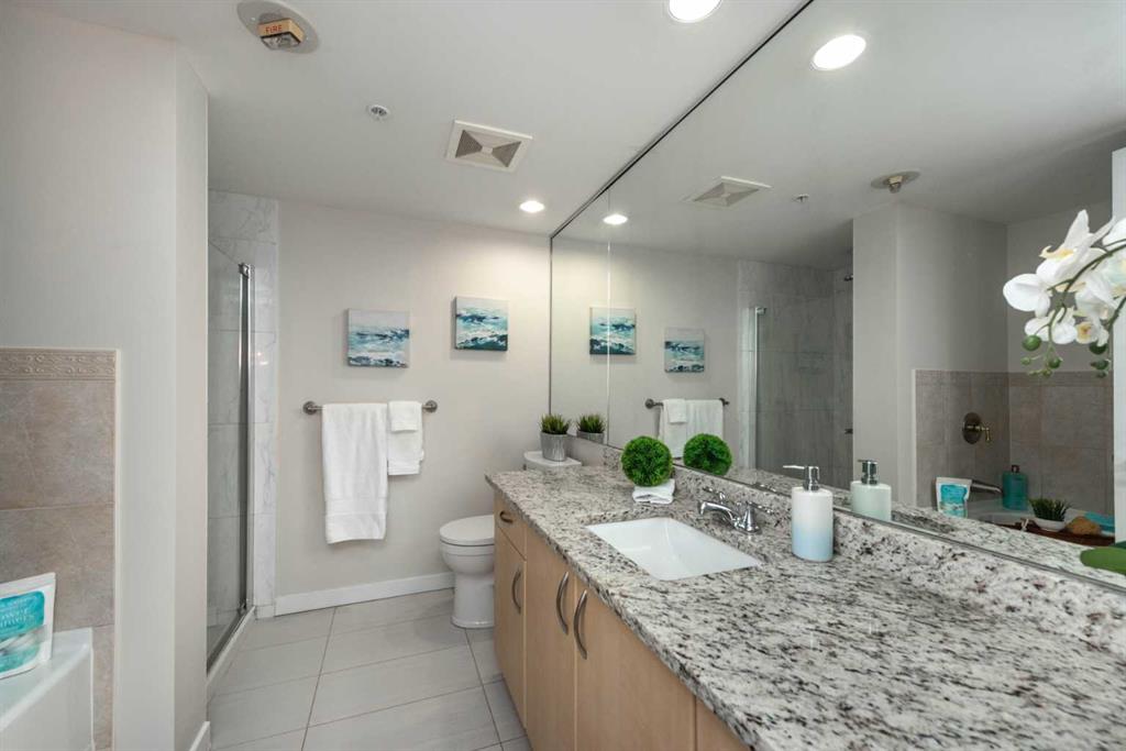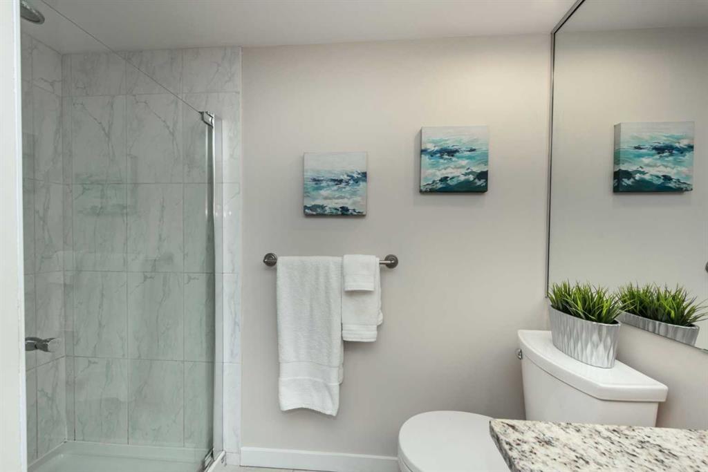 Penthouse at The Marquis – This is what you have been waiting for! Updated and renovated top floor, spacious 1274 SF river-side suite with oversized windows and extra height ceilings to take in the amazing North and West facing RIVER & MOUNTAIN VIEWS overlooking the Bow River. Freshly painted and showcasing a split bedroom design floor plan, this 2 bedroom PLUS DEN suite includes parking for 2 vehicles (tandem) plus additional storage locker. Entering the suite you are drawn to the open and spacious living and dining rooms – the view beckons! Cozy gas fireplace with marble tile front and mantle anchors the living room and oversized windows capture the views – sunset sky’s from here are stunning! The updated (in 2019), bright white kitchen overlooks the living area and offers ample granite counter space, breakfast ledge & stainless steel appliances. The primary bedroom is roomy and spacious and accommodates king sized furniture & features walk-through closets, 4 piece ensuite bath with soaker tub, separate shower and ample granite counter vanity space. Second bedroom easily fits queen-sized furniture, offers an extra closet as well and the 3 piece renovated bath (granite counters here, too!) is adjacent – perfect for a room mate or for when guests stay over. Don’t forget the den – it’s a great size and features floor to ceiling window on to the living room. Laundry room (new washer & dryer in 2024) with lots of storage space & extra shelving. Easy upkeep tile and laminate flooring are throughout the suite. The Marquis offers FULL concrete construction, including between suites, and all common areas have recently been renovated and are meticulously maintained. The gracious front lobby welcomes your guests and building amenities include 24 indoor visitor parking stalls, exercise facilities with his/her change rooms, yoga studio, a party room for gatherings and bike storage. With a walkability score of 95, this West Downtown location is amazing – super close to the Bow River pathways, Prince’s Island park, coffee shops, boutiques and great restaurants to explore, 1 block to the LRT (downtown free zone), & the fun and excitement of Kensington is just across the river. This is a pet friendly building (dogs under 20 lbs, with Board approval) – Start living the lifestyle you’ve dreamed of and call to view today!