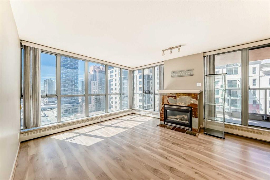 Welcome to the Seventeen Floor Corner Unit Facing South & West in the Wonderful Axxis Building. Bright Living room with Gas Fireplace. Spacious Dining Room leads out to the West Facing Balcony. Very Functional Kitchen has a Quartz Island. In-Suite Storage and Stacked Washer/Dryer. Tile in Entrance, Kitchen and the Main Bathroom & Ensuite Bathroom. Laminate Flooring in the Living Room, Dining Room, Hallways and the 2 Generous Sized Bedrooms. No Carpet in this Apartment!!! Building has a great Fitness Centre, a Party Room with Full Kitchen for Larger Gatherings, Gated Visitor Parking, Bike Storage and a Fantastic Outdoor Area on Two Levels. This Home is close to the River, Bike & Walking Pathways, C-Train, Shopping and Dining… See All the Terrific Things that West Downtown has to Offer!!!