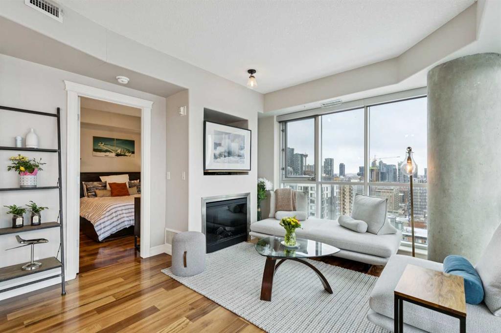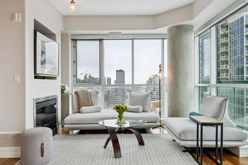 Welcome to #1701 in the Emerald Stone, an iconic concrete tower in the Beltline that has one of the best walkability scores in the city. Unit 1701 is a special home. What blew me away when I first walked in was the expansive view out the floor to ceiling windows. You get everything from a mountain view to the west, a south view over the vibrant 17th avenue entertainment district, and an eastern view of the city’s downtown skyline. Beautiful in the daytime, and magical at night, the view can’t be beat. Next, the floor plan is great, featuring an upgraded kitchen with new appliances, quartz counters, and backsplash that is open to the rest of the living area. A dedicated dining space, as well as a cozy living room with a fireplace complete the main area. The balcony is phenomenal. In fact, the 17th floor is the start of the full size balconies in the building. Lower floors don’t get this much outdoor space. There are two bedrooms in #1701, including a primary suite with a full ensuite. Also, California closets have been used to upgrade the bedroom storage spaces. The building itself has an extensive amenity package including a weekday concierge, a high-end fitness facility, and a refined social lounge for hanging out if you need more space for a party, or just a social gathering. Secure underground parking and extra storage also come with this home. The “walk-score” for the Emerald Stone is one of the best in the city, with the boutiques of Mount Royal Village and the heartbeat of 17th Avenue right out your front door. For more details, and to see our 360 Virtual Tour, click the links below.