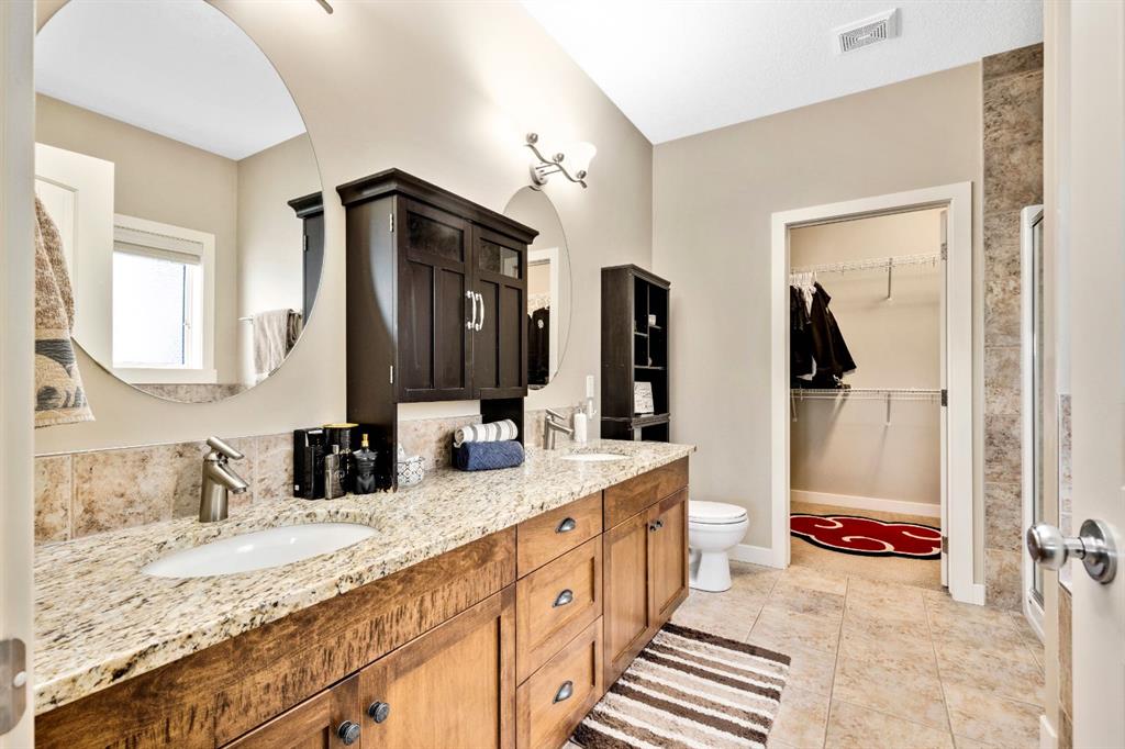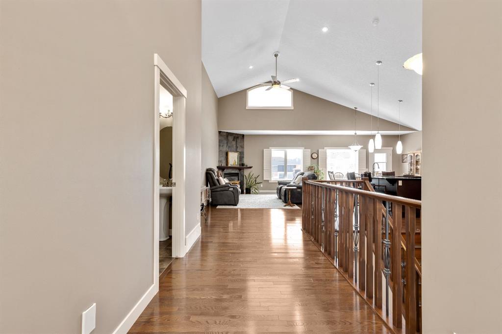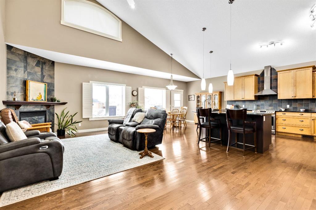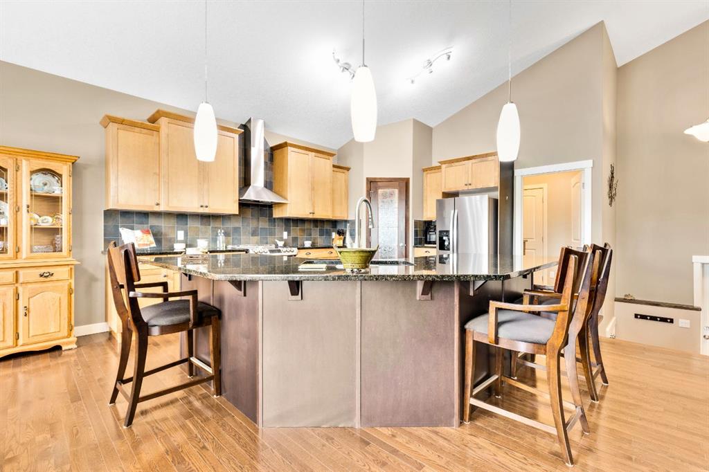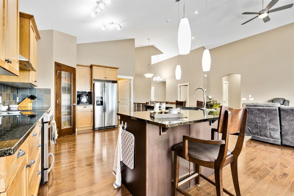 Welcome to this beautifully maintained executive bungalow tucked away in a quiet cul-de-sac and backing onto peaceful open space with no direct rear neighbours. Offering the perfect balance of comfort, style, and functionality, this home is designed for both everyday living and effortless entertaining. Featuring 3 spacious bedrooms, an office/bonus room and 3 bathrooms, the thoughtfully designed layout provides generous living space on both levels. The main living area showcases soaring vaulted ceilings, rich hardwood floors, oversized windows, and a stunning gas fireplace that creates a warm and inviting focal point. The kitchen is truly the heart of the home, complete with granite countertops, a large central island, stainless steel appliances, a walk-in pantry, and abundant cabinetry. It flows seamlessly into the dining and living areas, making it ideal for hosting family and friends. The primary suite offers a relaxing retreat with a beautiful 5-piece ensuite featuring a deep soaker tub, separate glass shower, and generous vanity space. Conveniently located on the main level, the separate laundry room is both spacious and functional, featuring a sink, extensive counter space, and plenty of storage to keep everything organized. The fully developed walkout basement expands your living space with a second large family room and another gas fireplace – perfect for movie nights, guests, or quiet evenings at home. Enjoy exceptional outdoor living with a deck off the main level, ideal for morning coffee or evening barbecues, as well as a covered patio below overlooking serene open green space, the setting offers privacy and peaceful views year round. Additional highlights include a double attached insulated garage, quality finishes throughout and pride of ownership that is evident from top to bottom. Cozy yet refined, sophisticated yet welcoming. This is a home that truly offers luxury you can live in.