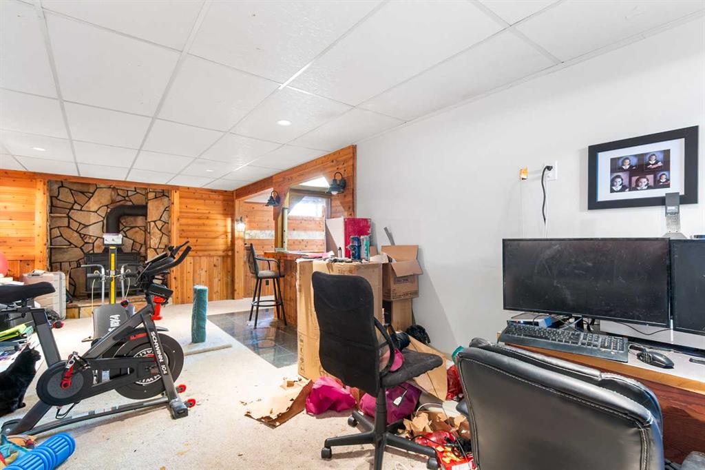 Downstairs, the fully developed lower level includes a recreation room with a bar and second wood-burning fireplace, two well-sized bedrooms, a 4-piece bathroom, and a large mechanical/laundry room with plenty of storage space.