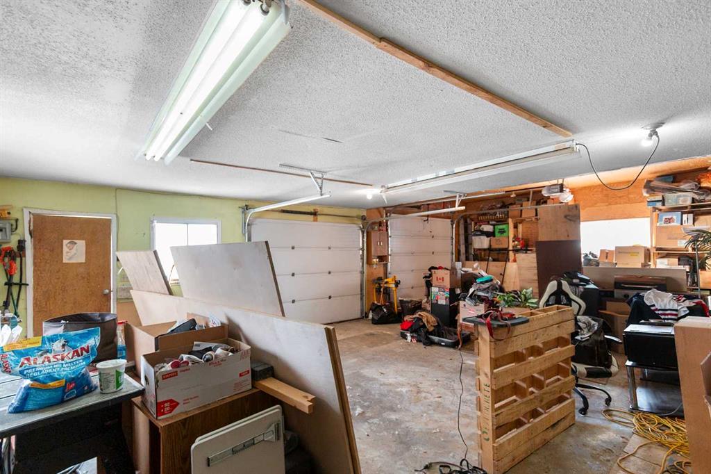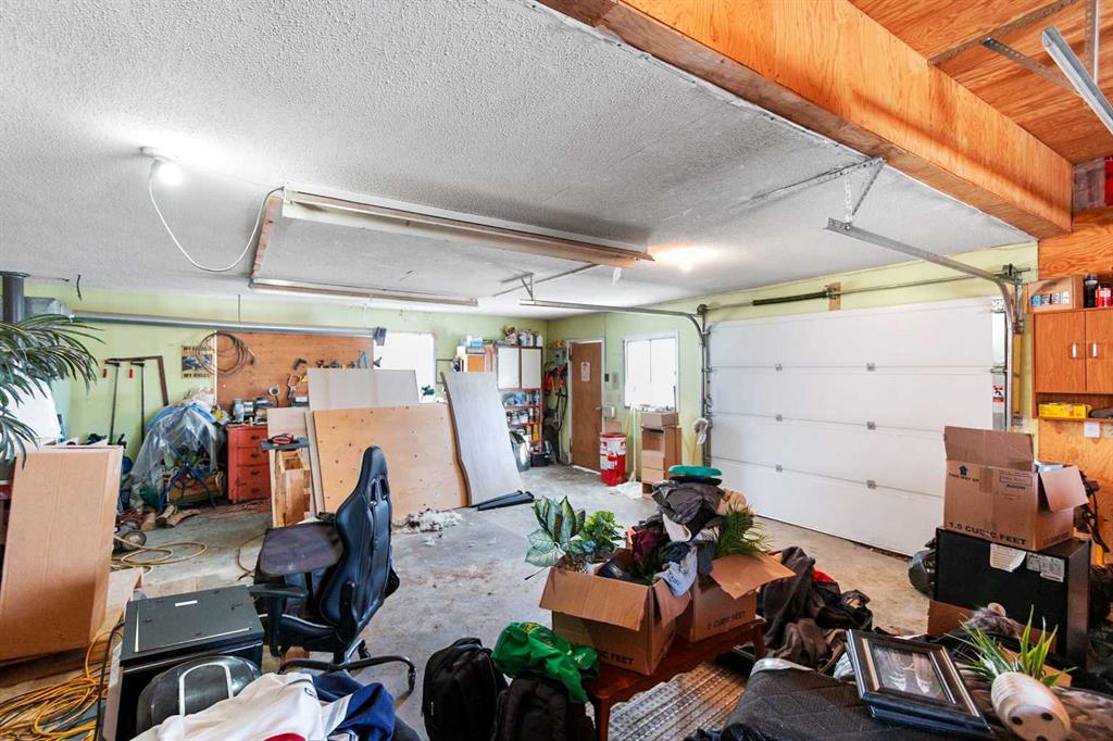 Outside, the home offers a front deck, a large oversized garage, and an attached workshop, providing excellent space for vehicles, hobbies, or projects.