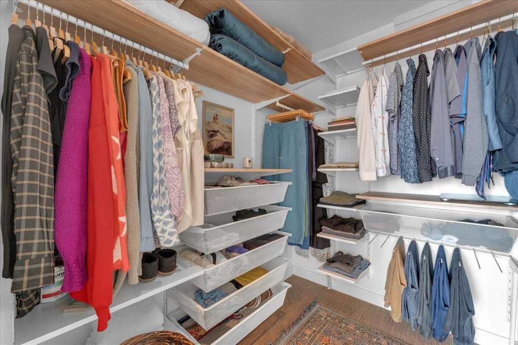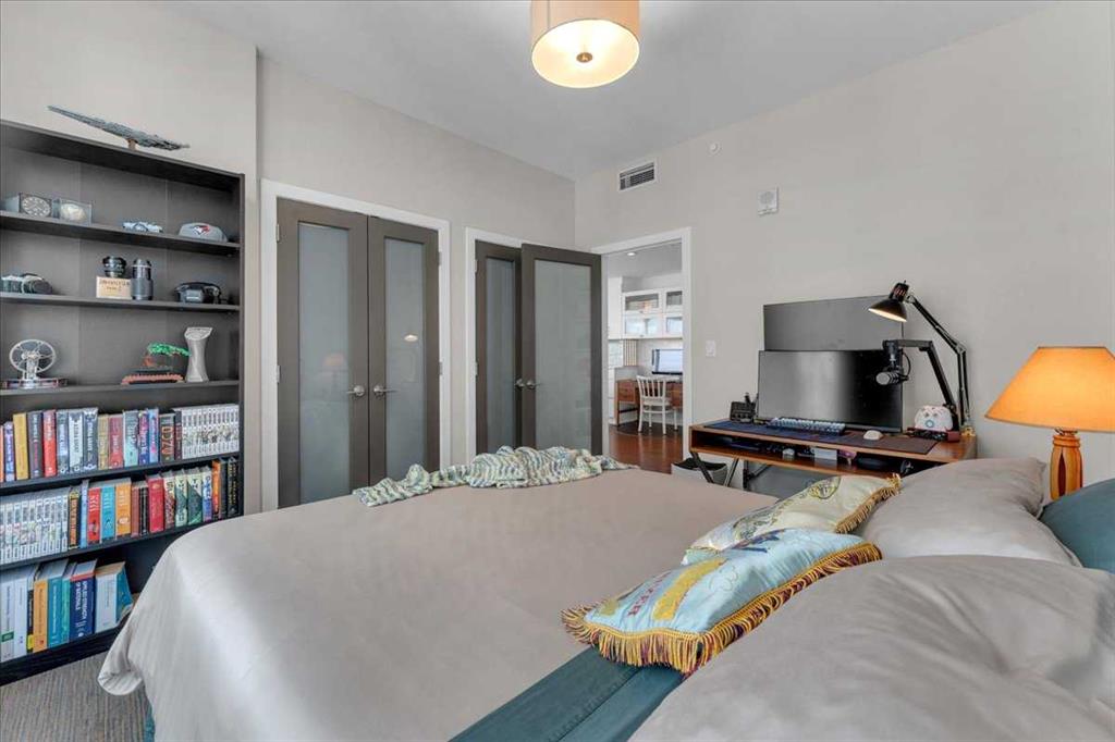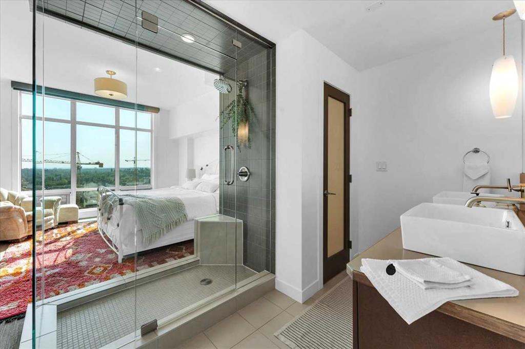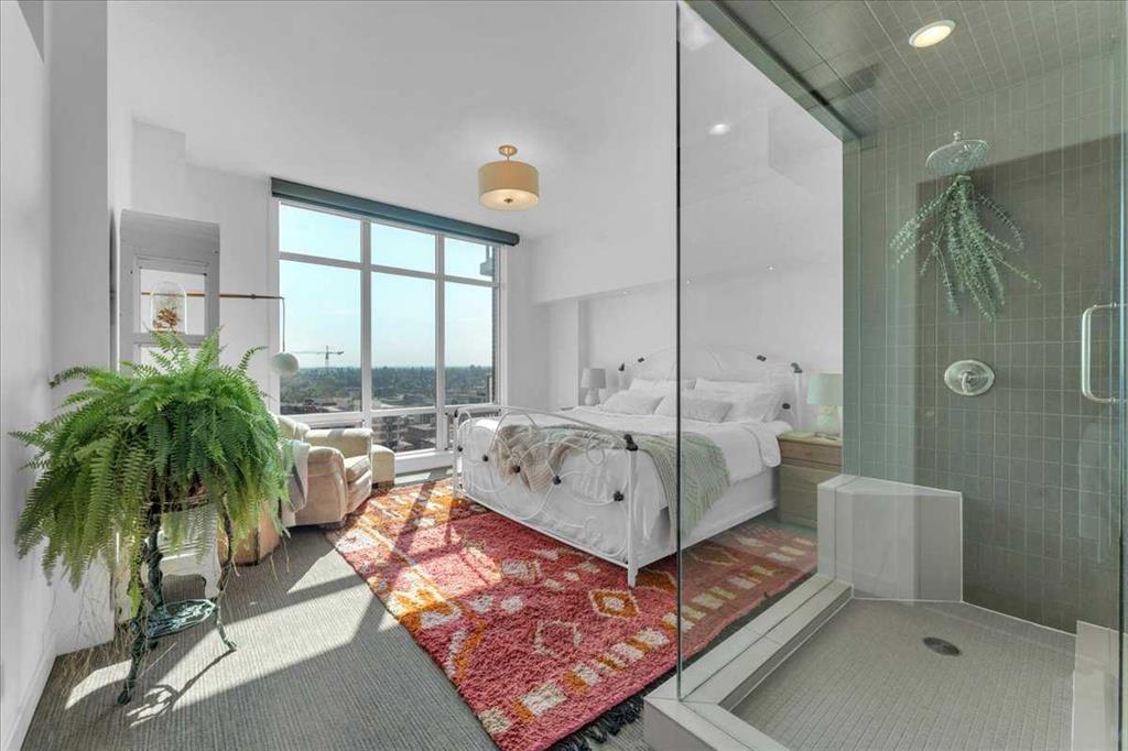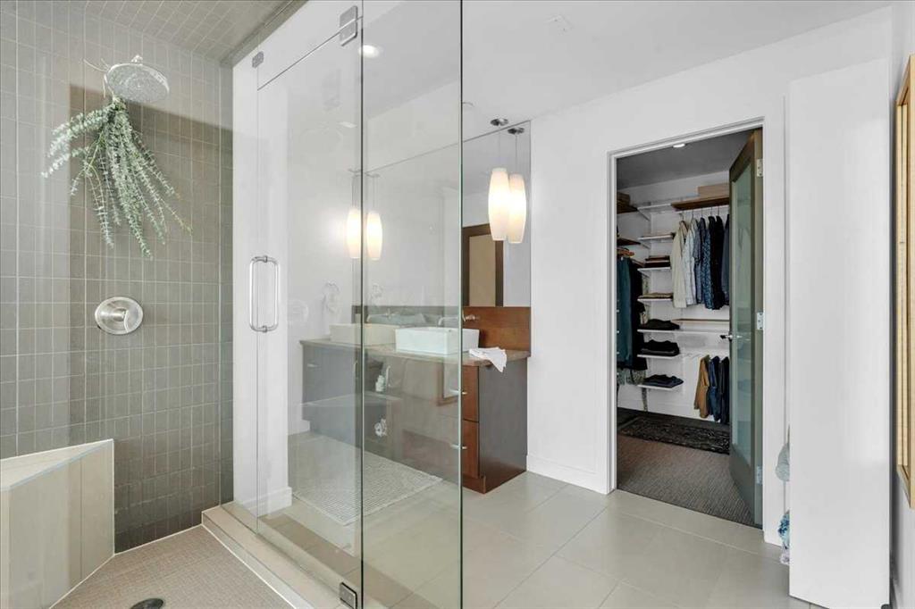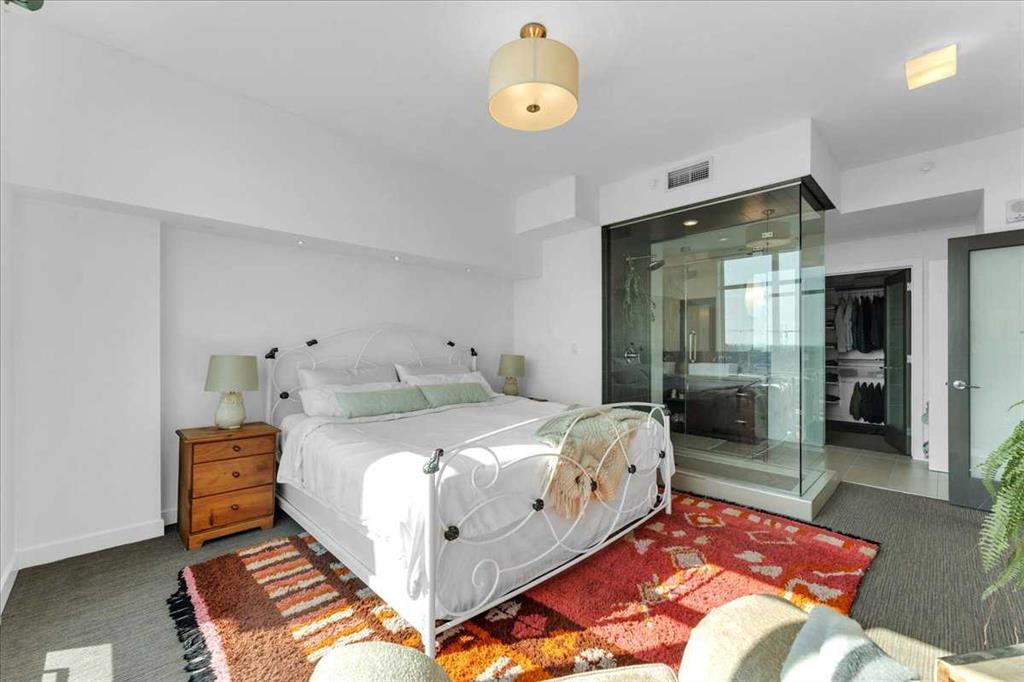 Your primary retreat is a true sanctuary, featuring a full length window with automatic blinds, a spacious walk-in closet with built-ins, and a spa-inspired ensuite complete with double sinks, a private water closet, and a luxurious 3-sided glass shower with rain head. A second bedroom and full bathroom offer flexibility for guests, a home office, or both.