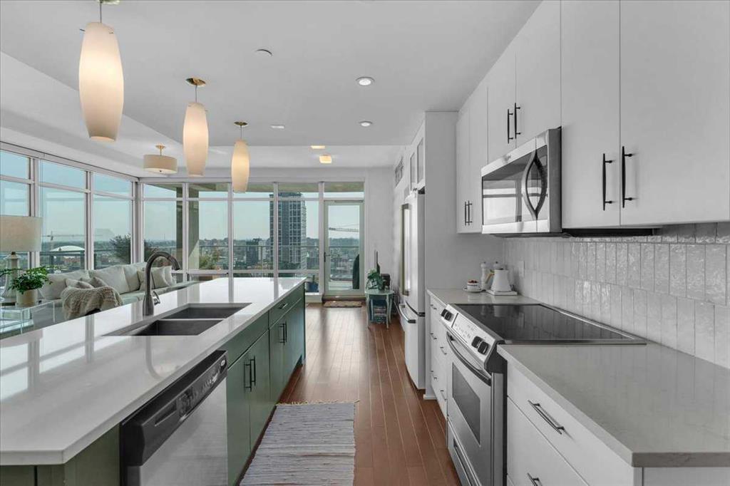 Designer Corner Unit with Panoramic City Views in the Heart of the Beltline. Step into modern luxury with this 17th-floor corner residence in the sought-after Castello building. Boasting floor-to-ceiling windows, 9-foot ceilings, and a massive wrap-around balcony, this home is designed for those who value natural light, stylish finishes, and unbeatable views spanning east, south, and west across Calgary’s skyline. Not to mention your own private viewing of the Stampede fireworks!