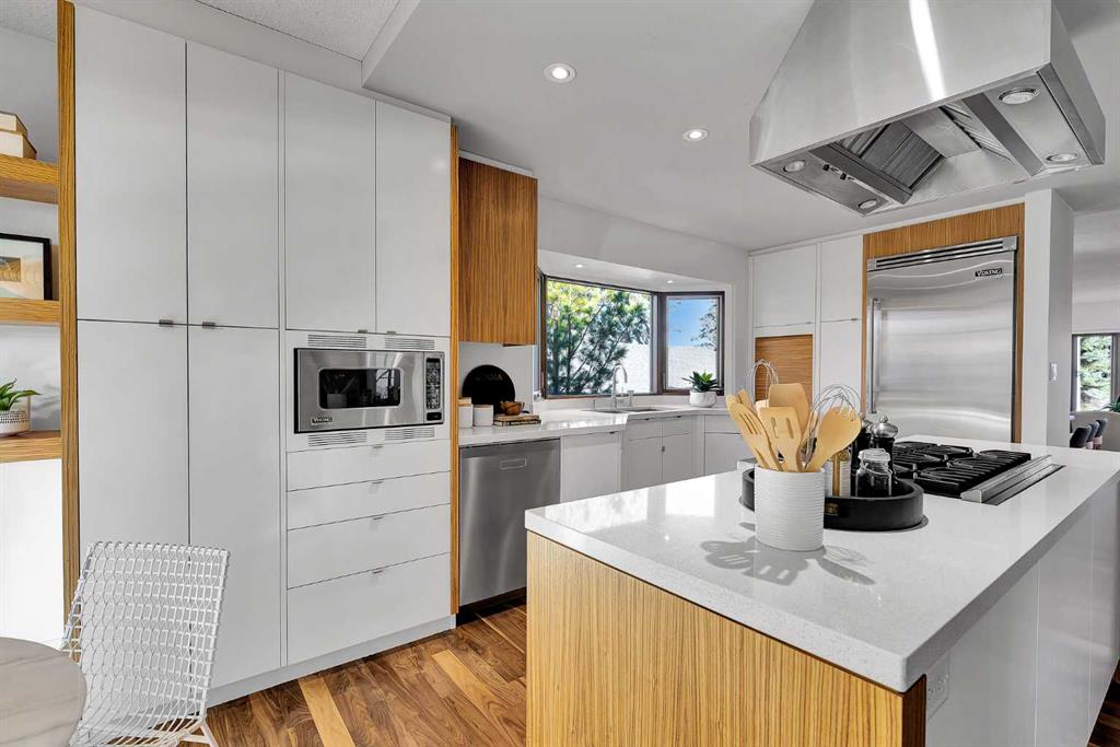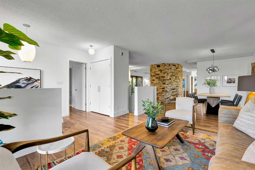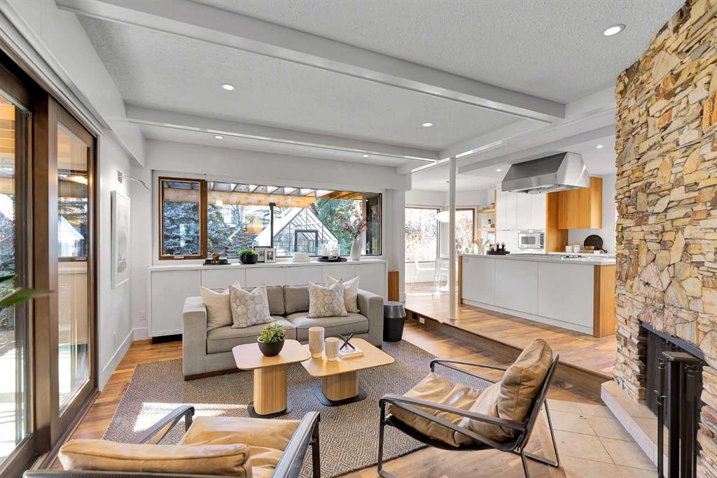 Some homes are renovated. Others are cared for, respected, and thoughtfully evolved. In the heart of Upper Scarboro, this updated mid-century bungalow offers approximately 2,650 sq ft of developed living space across both levels — where original architectural character meets modern-day comfort. Lovingly maintained by owners who appreciated its design, the home has been enhanced over the years without losing its soul. At the centre of the main living space, a natural stone wood-burning fireplace rises like a sculptural column — an authentic mid-century feature that brings warmth, texture, and quiet drama to the room. Light pours in through wide windows, reflecting off warm, freshly refinished walnut hardwood floors and clean architectural lines. The kitchen and bathrooms have been tastefully updated, complementing the home’s original character rather than competing with it. The main level includes a peaceful primary suite with a spa-style bathroom with a deep soaker tub and spacious shower. A bright front den offers flexible space for work-from-home or a guest room, and a convenient 2-piece bathroom provides access from the den or hallway for guests. A sunlit breakfast nook opens to a comfortable family room, while seasonal outdoor living is extended with a covered outdoor area — creating a natural extension of the interior and offering an electric fireplace to take off the chill. Beyond, the private backyard offers mature trees, perennials, shrubs and an inviting greenhouse — a lovely space for gardening and quiet mornings with a cup of coffee. Downstairs, the finished basement provides additional living space with potential for guests, teens, or a workout area, along with a 3-piece bathroom and storage. The under-house oversized double garage is heated and has 30 amp service for convenience. Situated just minutes from downtown and offering a large west-exposed yard for evening gatherings, this is a rare opportunity to own a thoughtfully updated mid-century home in one of Calgary’s most sought-after inner city neighbourhoods.