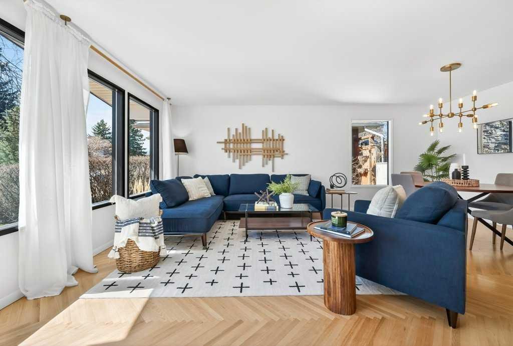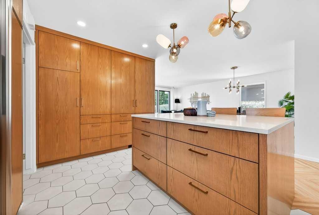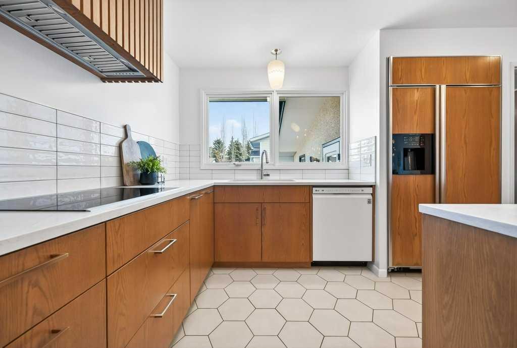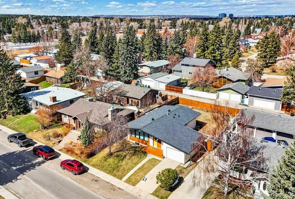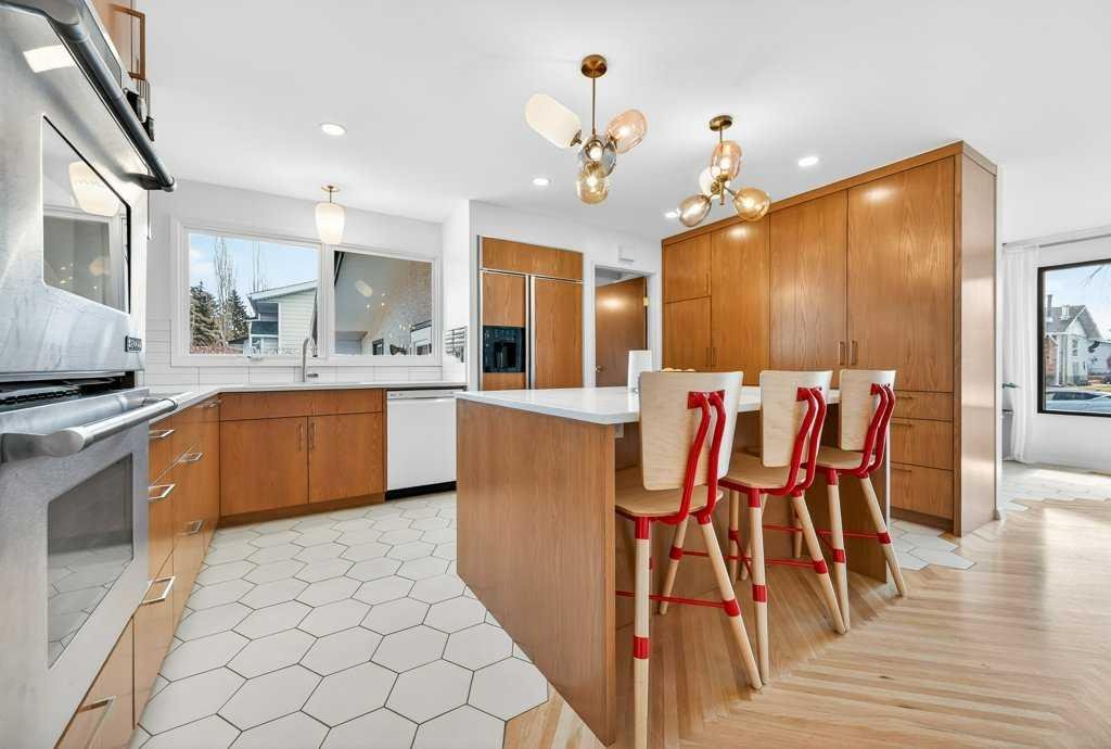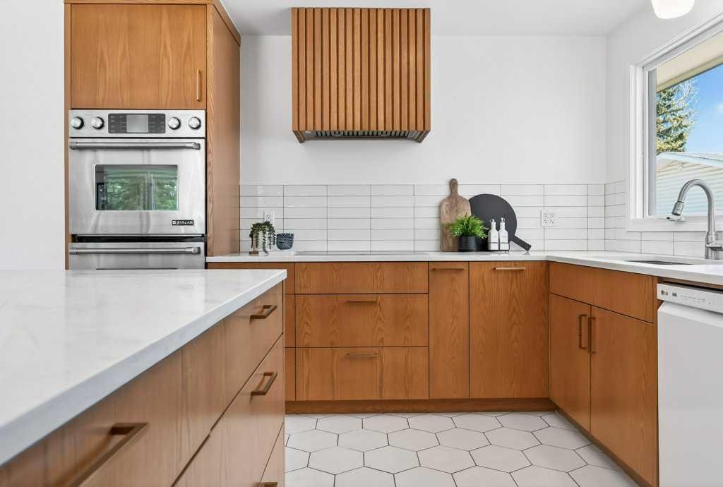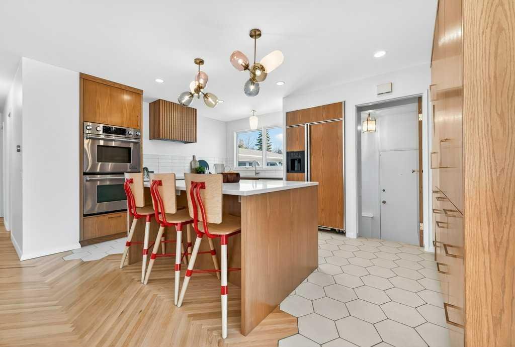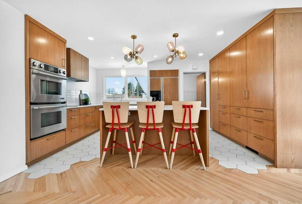 OPEN HOUSE: Saturday April 25th 12 – 2pm. Beautifully renovated Bungalow located on a quiet tree lined street in the sought-after community of Braeside! A truly REMARKABLE blend of style + design with the architectural nuances of both Mid-Century + Scandinavian design. Shut the front door! Brand new custom solid wood front door flows into a spacious foyer with inset custom hexagonal tiled floor, closet + custom storage cabinet leading into the open + SUN filled Living + Dining Rooms. Gourmet modern chef’s kitchen with new cabinetry, quartz countertops, Italian subway backsplash, upgraded appliances, central island + custom cabinetry / pantry wall. Main floor primary retreat with 3 pc ensuite, teak vanity, custom tile wrapped shower with 10 mil glass + Schluter decoupling membrane & closet. 2 additional bedrooms or Den/Study + fully updated 4 pc bath with tub/shower laced in floor to ceiling subway tile with Schluter decoupling membrane. Stairs lead to back entrance with access to backyard & insulated single attached garage. New fully finished lower level with upgraded 40 oz carpet & 7/16 underlay, new windows, wet bar, large family & rec room, 2 bedrooms / gym + 4 pc bathroom, laundry + storage area. Additional updates, features + amenities include: Flat ceilings on main floor with knockdown ceilings in lower level, newer roof (2020), pot lights, windows resealed, new electrical service + panel, fully pigtailed aluminum wiring, new bespoke light fixtures, fully painted exterior, newer cedar front steps + back fence (2018), self-watering cascading raised cedar garden beds, fruit trees / bushes: saskatoons, apple + cherry tree, gooseberries, black & red raspberries, rhubarb + perennial herb garden (mint, oregano, thyme, chives, sage) paved back alley, just steps to dog park, maintained skating rink, community centre, basketball courts + community garden. Close to all major amenities including Fish Creek Provincial Park, Glenmore reservoir, Southland Leisure Centre, Chinook & Southland Malls, playgrounds, schools, shopping, public transportation, 14th & 24th St, Stoney, Anderson & Glenmore. Exceptional Property!