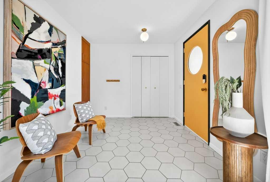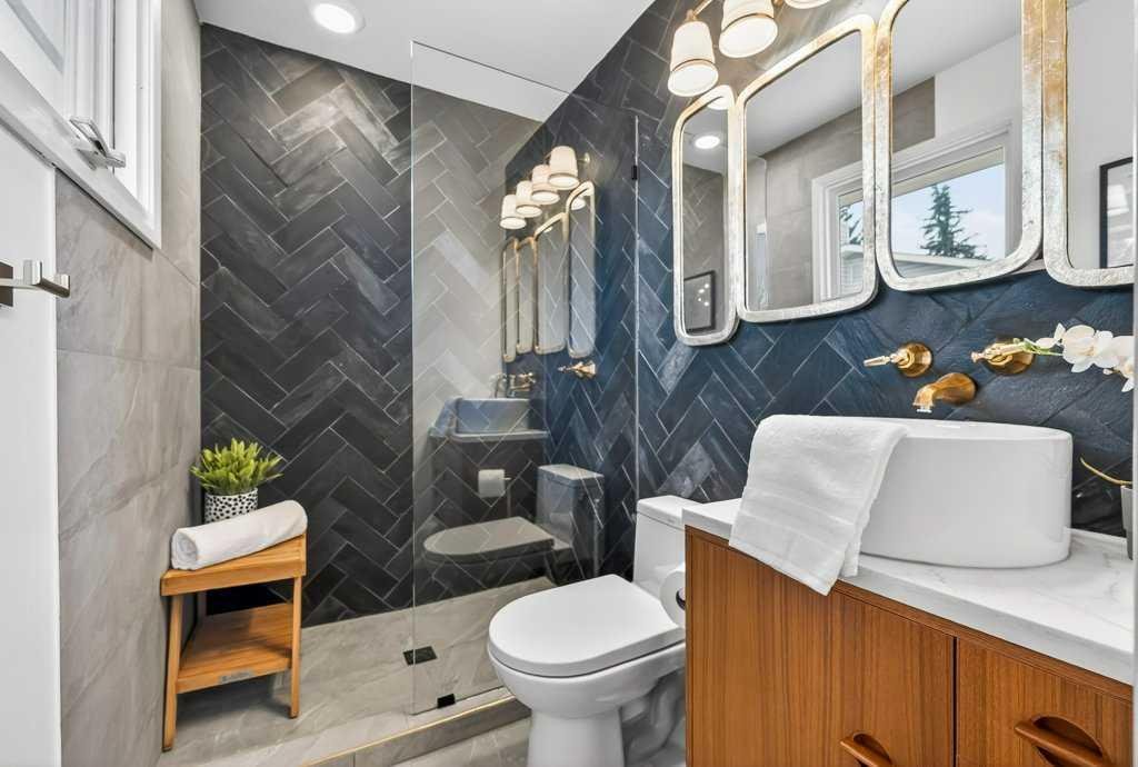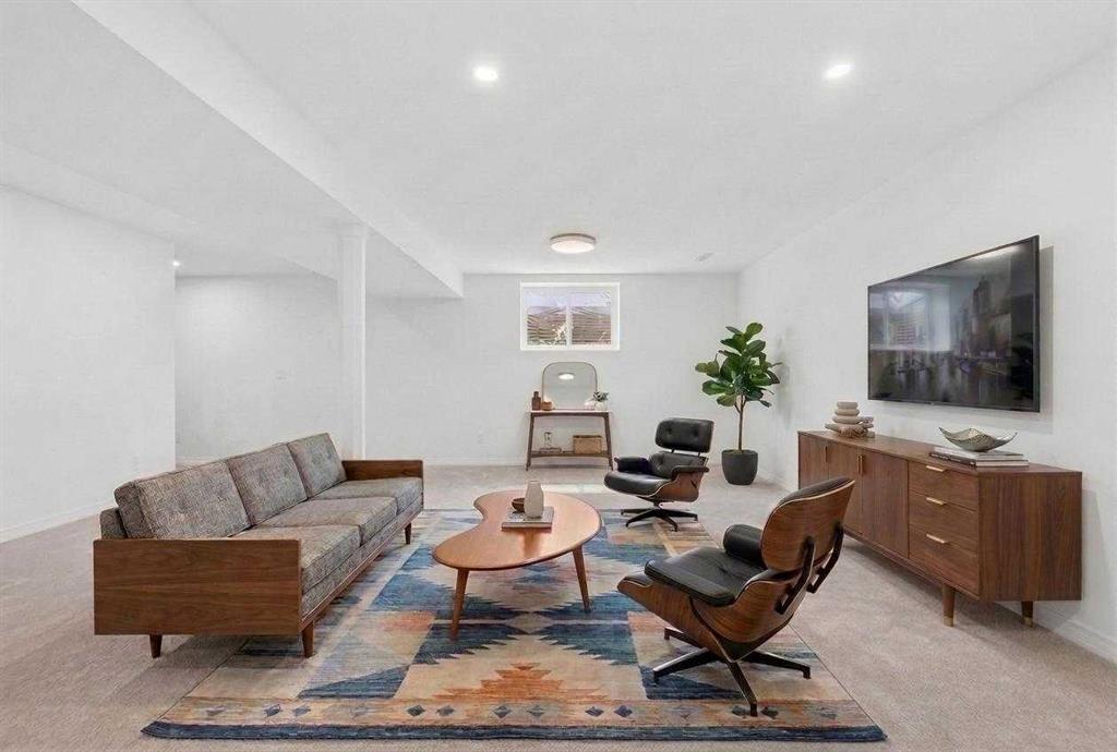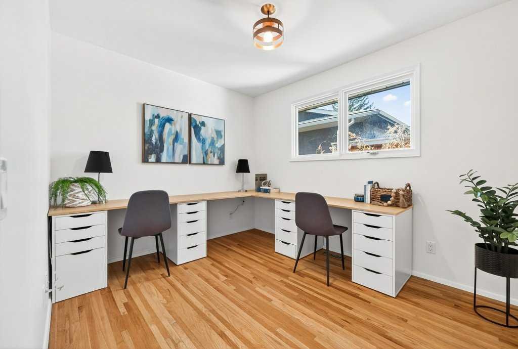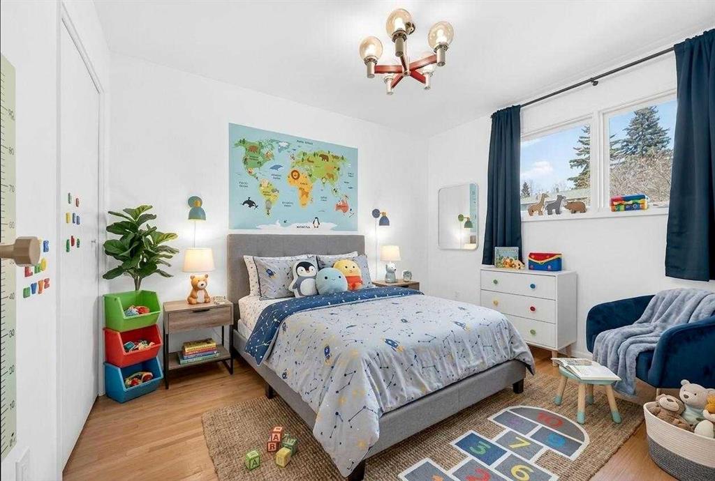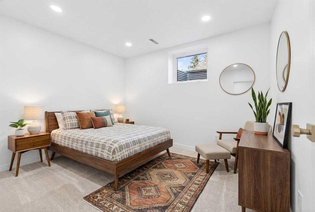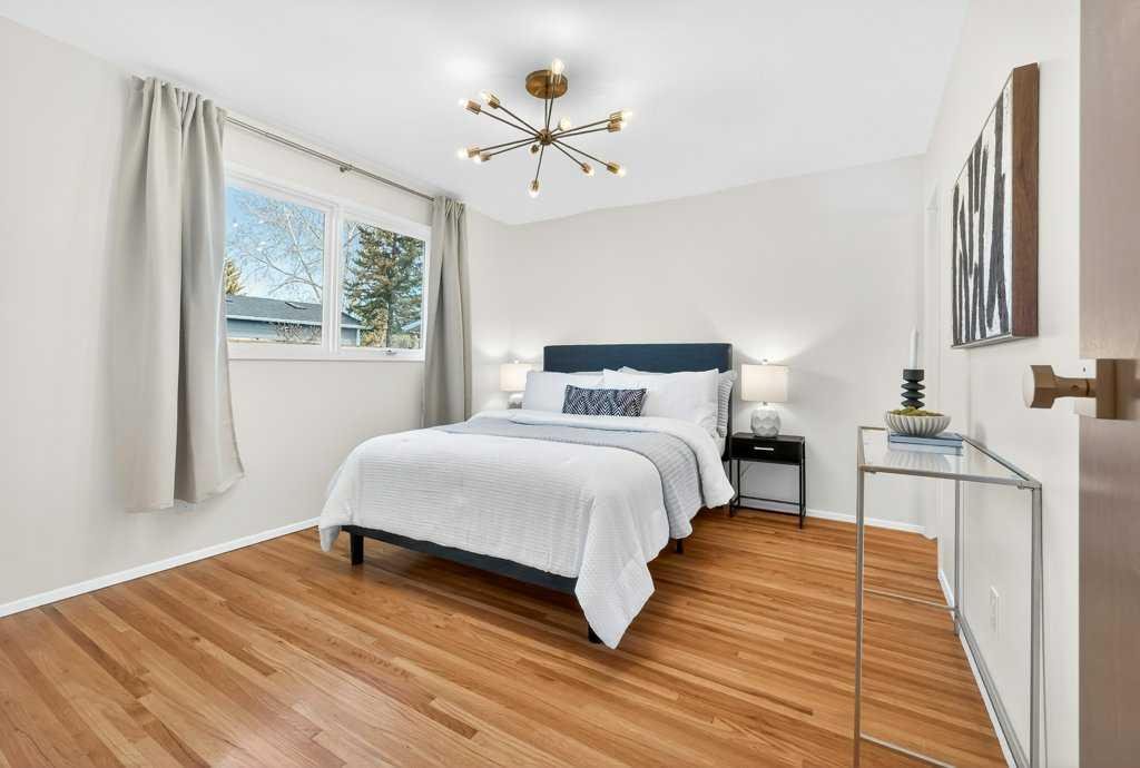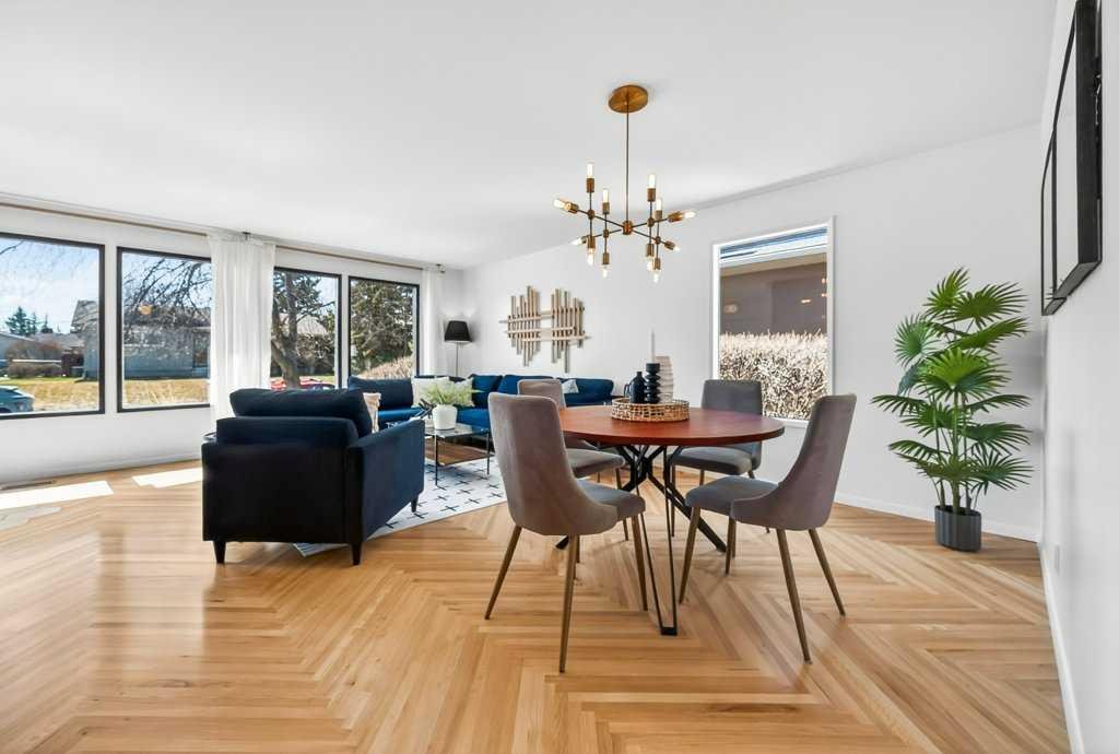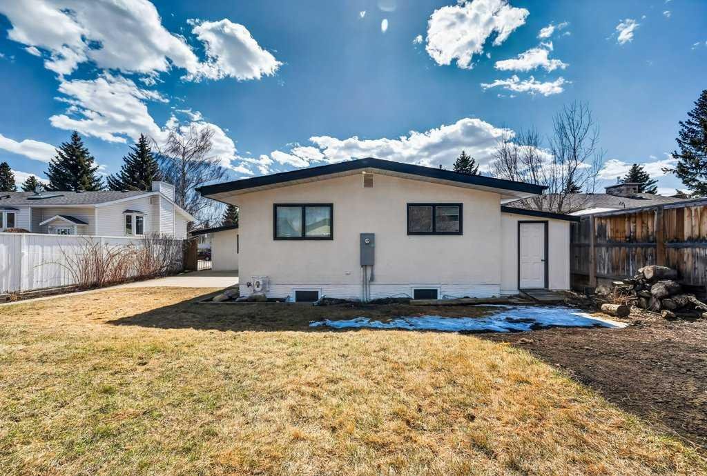 OPEN HOUSE: Saturday April 25th 12 – 2pm. Beautifully renovated Bungalow located on a quiet tree lined street in the sought-after community of Braeside! A truly REMARKABLE blend of style + design with the architectural nuances of both Mid-Century + Scandinavian design. Shut the front door! Brand new custom solid wood front door flows into a spacious foyer with inset custom hexagonal tiled floor, closet + custom storage cabinet leading into the open + SUN filled Living + Dining Rooms. Gourmet modern chef’s kitchen with new cabinetry, quartz countertops, Italian subway backsplash, upgraded appliances, central island + custom cabinetry / pantry wall. Main floor primary retreat with 3 pc ensuite, teak vanity, custom tile wrapped shower with 10 mil glass + Schluter decoupling membrane & closet. 2 additional bedrooms or Den/Study + fully updated 4 pc bath with tub/shower laced in floor to ceiling subway tile with Schluter decoupling membrane. Stairs lead to back entrance with access to backyard & insulated single attached garage. New fully finished lower level with upgraded 40 oz carpet & 7/16 underlay, new windows, wet bar, large family & rec room, 2 bedrooms / gym + 4 pc bathroom, laundry + storage area. Additional updates, features + amenities include: Flat ceilings on main floor with knockdown ceilings in lower level, newer roof (2020), pot lights, windows resealed, new electrical service + panel, fully pigtailed aluminum wiring, new bespoke light fixtures, fully painted exterior, newer cedar front steps + back fence (2018), self-watering cascading raised cedar garden beds, fruit trees / bushes: saskatoons, apple + cherry tree, gooseberries, black & red raspberries, rhubarb + perennial herb garden (mint, oregano, thyme, chives, sage) paved back alley, just steps to dog park, maintained skating rink, community centre, basketball courts + community garden. Close to all major amenities including Fish Creek Provincial Park, Glenmore reservoir, Southland Leisure Centre, Chinook & Southland Malls, playgrounds, schools, shopping, public transportation, 14th & 24th St, Stoney, Anderson & Glenmore. Exceptional Property!