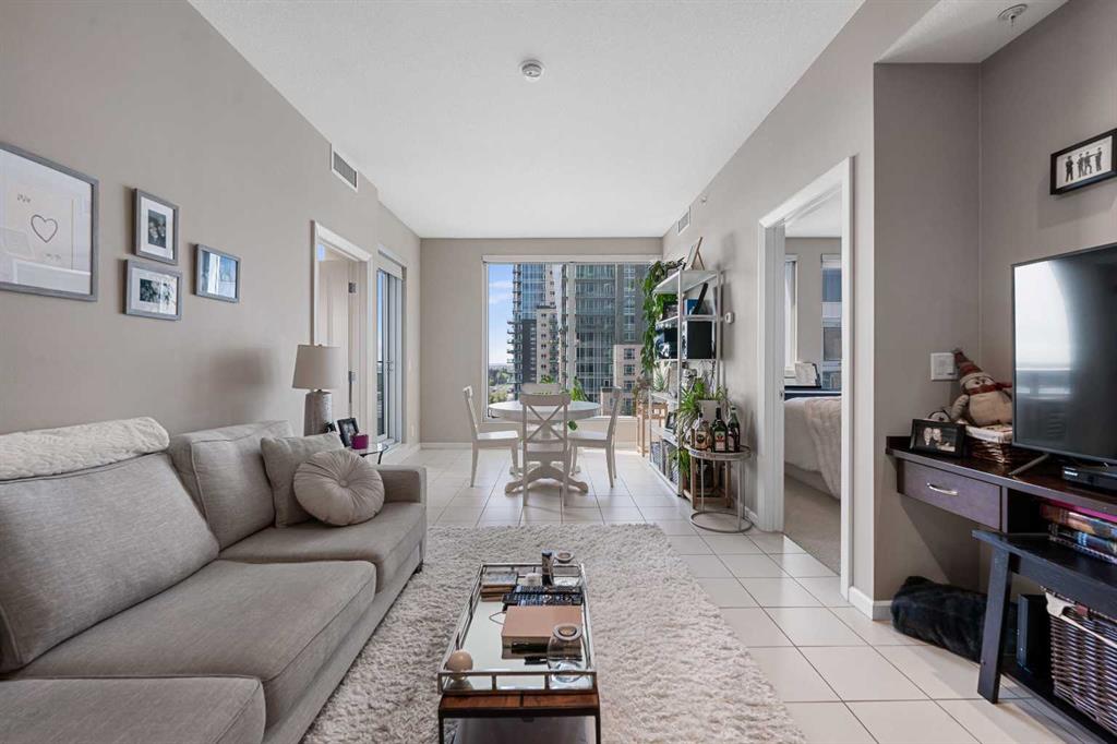 Welcome to the epitome of urban living in the heart of Calgary’s vibrant Beltline! This beautifully maintained 17th-floor unit in the sought-after Nuera building offers a seamless blend of style, comfort, and convenience with concierge service and first-class amenities right at your door. Step inside to a bright and open floor plan, where the sleek kitchen is equipped with quartz countertops, a modern tile backsplash, and stainless steel appliances ideal for cooking, entertaining, or simply enjoying your morning coffee. The spacious living area features durable tile flooring throughout, allowing you to easily customize your interior style while benefiting from low-maintenance design. Expansive floor-to-ceiling windows bathe the space in natural light year-round, while your private balcony offers sweeping views of Victoria Park and the Stampede Grounds the perfect place to unwind after a busy day. The primary bedroom is your personal retreat, complete with a walk-through closet and a 4-piece ensuite, providing a serene escape for rest and relaxation. A generous second bedroom and second full bathroom make this home versatile ideal for guests, a home office, or creative space to suit your lifestyle. Additional highlights include: Large titled underground parking stall conveniently located just steps from elevator access, storage locker for added convenience, on-site fitness centre take care of your health and wellness without ever leaving the building, and in-suite laundry, secure fob access, and professionally managed condo. Whether you’re a young professional, an investor, or someone looking to embrace carefree urban living, this home offers everything you need and more in a prime downtown location just steps from transit, 17th Avenue, shopping, restaurants, and the Saddledome. Welcome to your next adventure in modern city living.