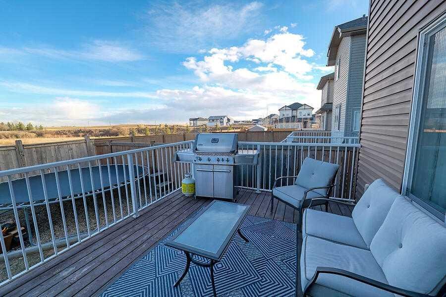 Welcome to this beautiful 2381 sq. ft. home in the sought-after community of Montrose in High River. A total of 4 bedrooms, 2.5 bathrooms, partially finished basement, double attached garage and air conditioned. This home is perfectly situated backing directly onto a peaceful vacant field. Step inside this bright, welcoming, open -concept, home into the stunning foyer with tiled floors and vaulted ceiling. Also on the main level is the versatile flex room creating a space for an office, playroom or dinning room. The bright spacious family room has a gas fireplace and is open to the kitchen and eating are. The eating area connects to the deck for hot summer BBQs or tranquil morning coffee. The kitchen boasts quartz counters, a large island and a convenient corner pantry. The main floor also has a 2 piece bathroom and a separate laundry room. Upstairs you’ll discover a bright bonus room, a 4 piece bathroom, a 5 piece ensuite and 3 bedrooms. The primary bedroom is a spacious retreat (15′ x 14′ 7″) including a walk-in closet and a 5pc ensuite. The ensuite has double sinks with quartz counters, soaker tub, separate shower and privacy door to the toilet. Both the Primary bedroom and ensuite are situated overlooking the private serene views of the fields. The basement contains the 4th bedroom, games room and family room. The storage room is plumbed in for an additional bathroom. The back yard is fully fenced with great views, overlooking the vacant field, which is a wonderful area to walk your dog or watch the wildlife. Montrose is a beautiful community with walking paths, playground, tennis/pickleball courts and off leash dog park You can walk or bike to Co-op, recreation complex (with new swimming pool) and restaurants. Please click on the multimedia tab (top left) for a 3D tour and additional photos. Welcome home to Montrose in High River.