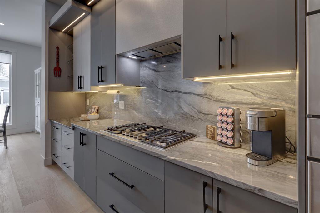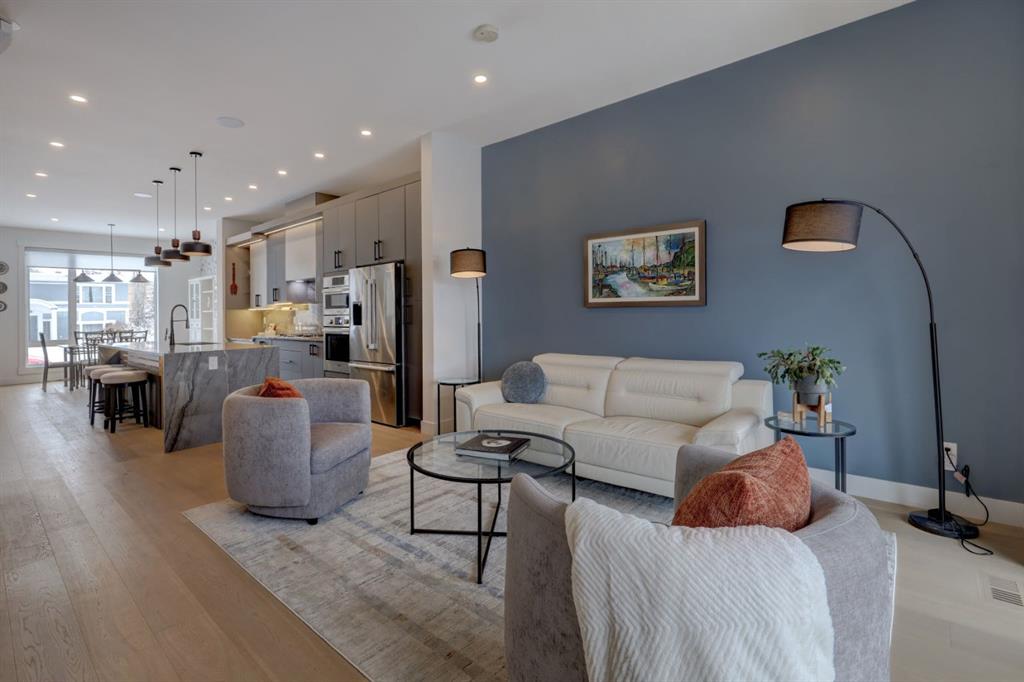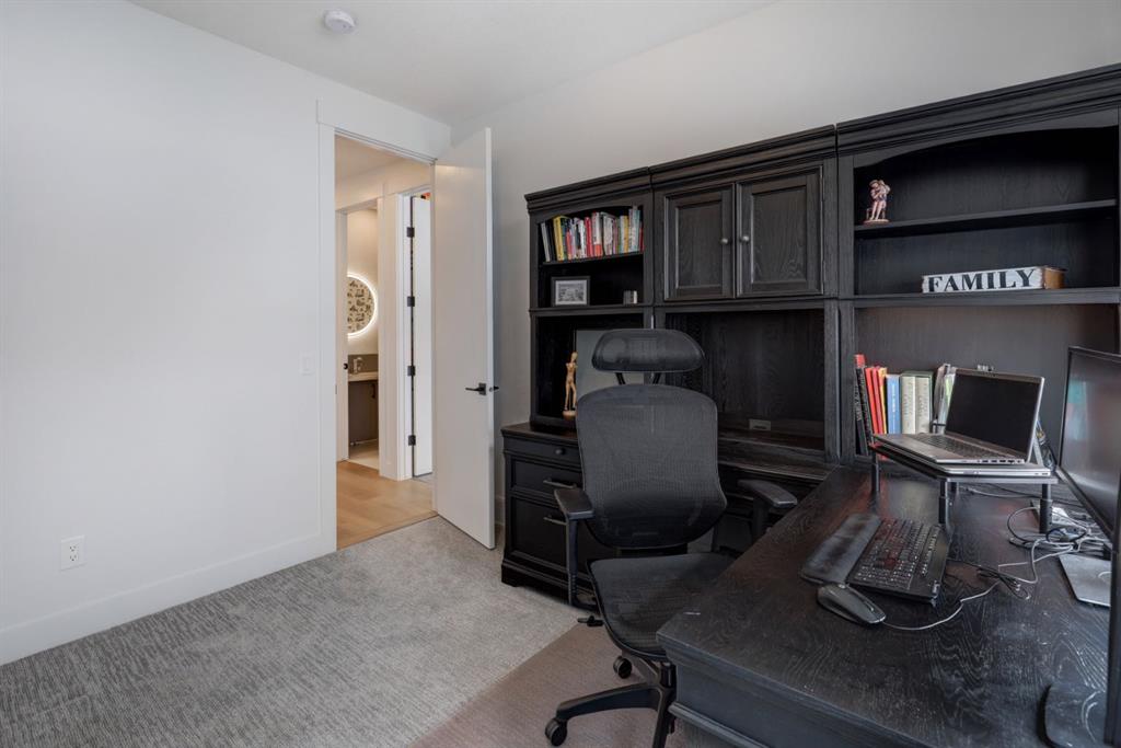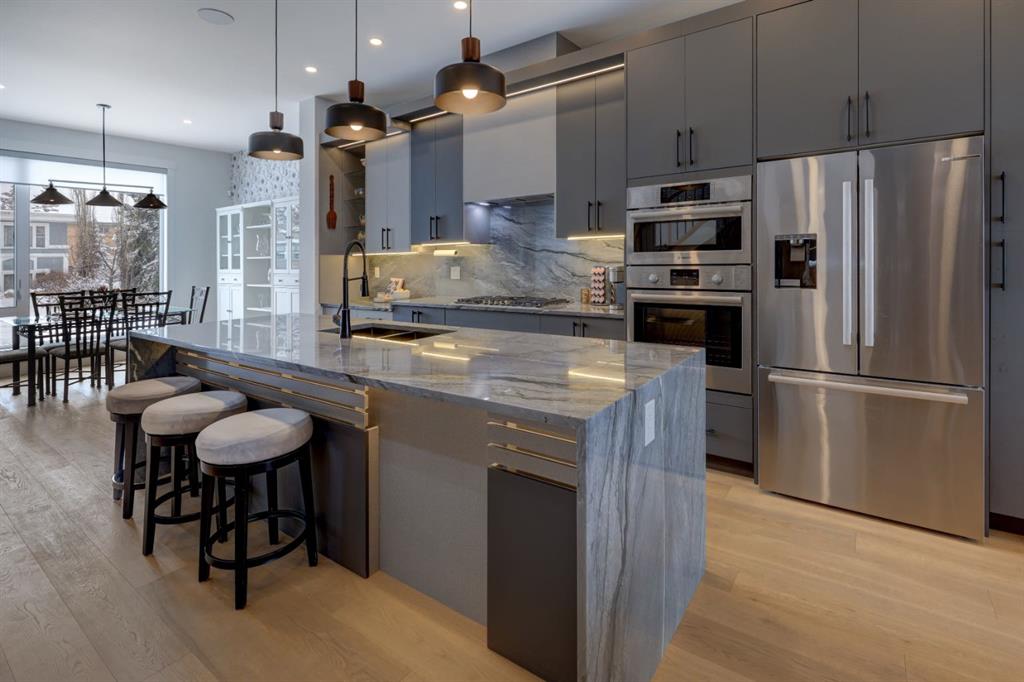 Welcome home to your NEXT TO NEW 4 bed, 3.5 bath home where LOCATION IS EVERYTHING! You can’t beat the proximity to Confederation Park (as well as Confederation Park Golf Course), schools & amazing access to downtown! The main floor impresses with its soaring 10-foot high ceilings, creating a spacious and airy ambiance. Quality craftsmanship is showcased throughout – note the 7.5-inch oak hardwood flooring that extends from the main floor to the powder room, hallway on the 2nd floor as well to the primary bedroom & ensuite with in-floor heating. The contemporary chef’s kitchen boasts granite backsplash & countertops, a large central waterfall island & integrated stainless steel Bosch appliances. There is a large dining area w/natural south light & the family room offers a stone & brick decorated gas fireplace as well as a sliding door leading to the SOUTH back deck. The practical mudroom provides storage and seating, and the home is equipped with speakers on all floors. The bathrooms offer luxurious retreats with LED mirrors, dimmable lighting, and anti-fog functionality. The primary bedroom features a vaulted ceiling & massive windows letting the light flow in. The ensuite boasts a heated tile floor & a modern shower area w/a steam unit generating and releasing steam, creating a wonderful environment for relaxation. The second and third bedrooms are filled with light and spacious enough to accommodate a queen-size bed. The loft on the second floor serves as an ideal space for studying or working from home & all of this is serviced by a 4-piece bathroom located near the additional bedrooms. The well-designed lower level features a welcoming family room, a large dining area, wet bar with soft-close cabinets the 4th bedroom w/ample natural light, and a 4-piece bathroom. Additional features of this exceptional home include custom-built closet organizers, high end window coverings, 10-foot flat ceilings on the main floor and 9-foot ceilings on the upper and lower levels, built-in speakers, a second-floor laundry room with custom built cabinets, a south-facing sunny backyard w/TREES & SHRUBS (including a 3 foot fence to keep any pets off of the grass), CENTRAL AC, hydronic in-floor heating rough-ins in the basement, water softener, and a rough-in for a Central Vacuum. The double insulated and drywalled garage provides convenience and ample storage space. This home is a true masterpiece, seamlessly combining elegance, functionality, and exceptional design.