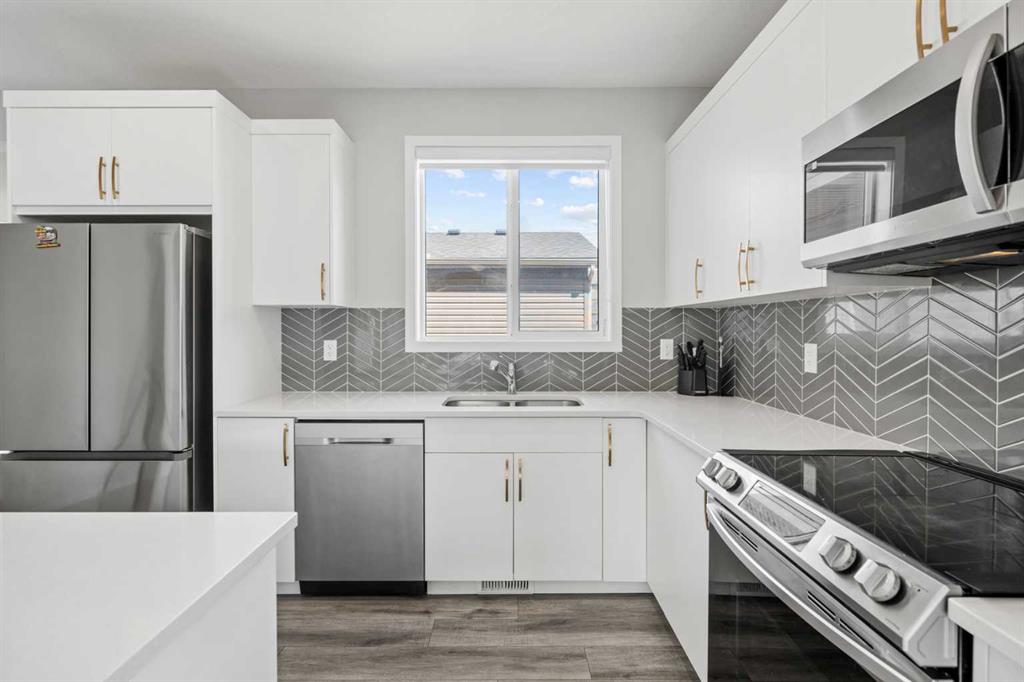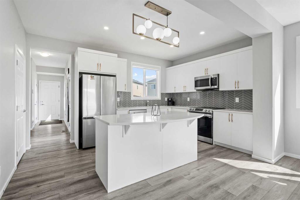 This beautifully designed home built in 2023 offers modern style, thoughtful finishes, and a location that makes everyday living effortless. Large windows throughout allow natural light to pour into each room, creating a bright and welcoming atmosphere from the moment you walk in. The kitchen is both elegant and functional, featuring spacious quartz countertops, stainless steel appliances, and stylish gold hardware accents that add a touch of warmth and sophistication to the modern design. Whether you’re cooking for yourself or hosting friends and family, the space feels open, polished, and practical. Outside, the home sits on a spacious pie-shaped lot, offering extra yard space and flexibility for your enjoyment. A double attached garage and parking pad in the rear provide plenty of room for multiple vehicles and storage, while the paved rear laneway adds both convenience and accessibility. Whether you seek additional living space, a home gym, or a media room, the undeveloped basement makes it easy to bring your vision to life. Located in a quiet and family oriented neighbourhood, you’ll enjoy quick access to the rest of the city via Stoney Trail only moments away, keeping your commute and extracurriculars simple. Plus, daily conveniences are close at hand, with multiple retail shops and restaurants nearby, as well as everyone’s favourite wholesaler, Costco, just a short 10-minute drive away. Stop by for a showing today!
