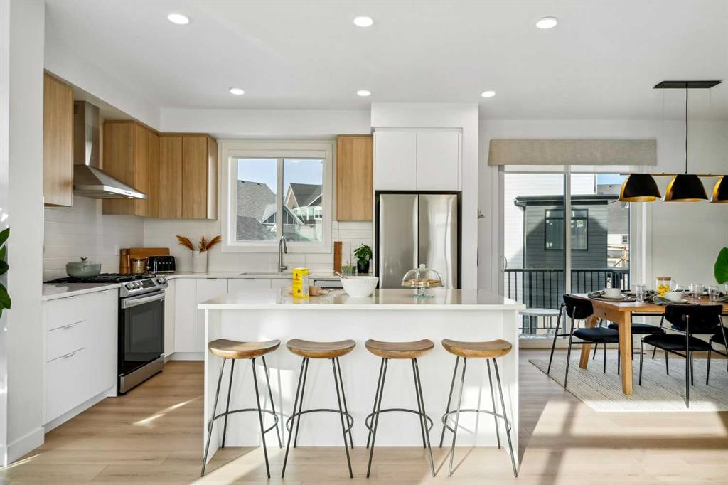 **OPEN HOUSE Saturday January 24th 1pm-4pm & Sunday January 25th 1pm-3pm(Being held at 3961 Quesnay Wood Drive)*** 1,463 SQ.FT | 3-BED | 2.5-BATH | 2-CAR ATTACHED GARAGE | END UNIT | EXTRA WINDOWS | LOW CONDO FEES. Welcome to 171 Dieppe Drive SW, an end-unit former showhome in the Billy community by Anthem Properties in the heart of Currie. Large windows on three sides fill the home with natural light, creating a bright, airy main floor with 9′ ceilings and an oversized kitchen that flows effortlessly into the living and dining areas. Quartz countertops, durable LVT flooring, and a full appliance package with a gas range and chimney hood fan add to the home’s modern appeal. Enjoy two outdoor spaces—a front patio and an oversized balcony—along with the convenience of air-conditioning rough-in, window coverings throughout, and an upper floor with a full-size washer and dryer, a well-appointed primary suite with walk-in closet and ensuite, and two additional bedrooms. An oversized double attached garage provides exceptional parking and storage. With a nearby dog park, restaurants, quality schools, and quick access to Marda Loop, this home offers comfortable, contemporary living in a highly walkable community. Book your showing today.