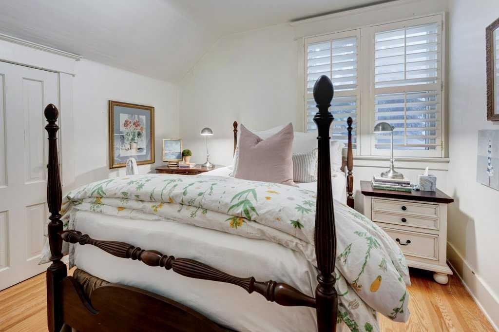 Upstairs, you will find four bedrooms, including a standout primary retreat with vaulted ceilings, a ceiling fan, and a custom designed step-in California Closet with track lighting and barn-style doors. A second bedroom, which is currently being used as an office space, also features a thoughtfully designed California Closet system, while the remaining bedrooms are bright and well-proportioned. The upper bathroom is a true highlight, featuring heated marble floors and a beautiful clawfoot soaking tub that adds a touch of vintage elegance.