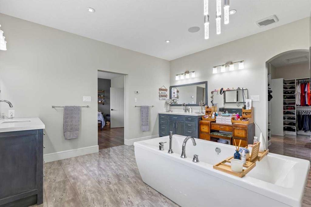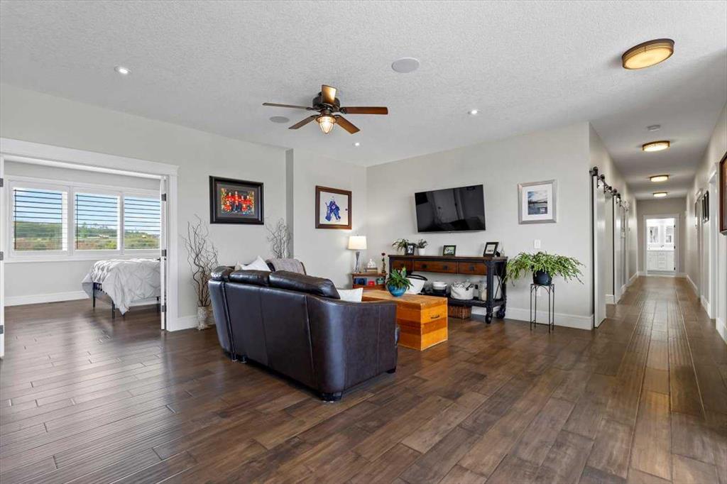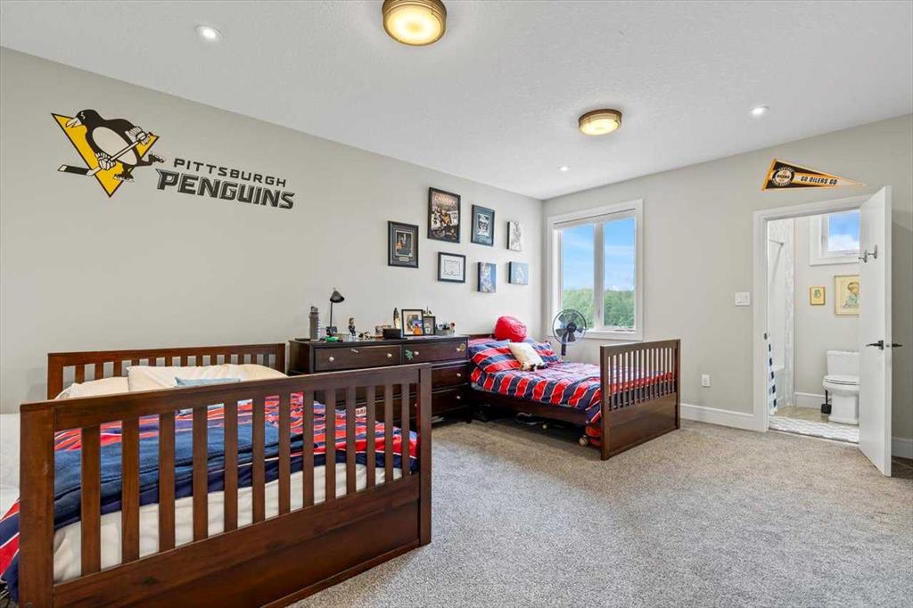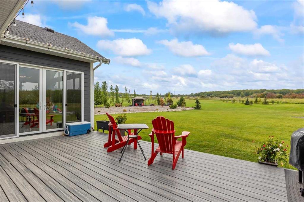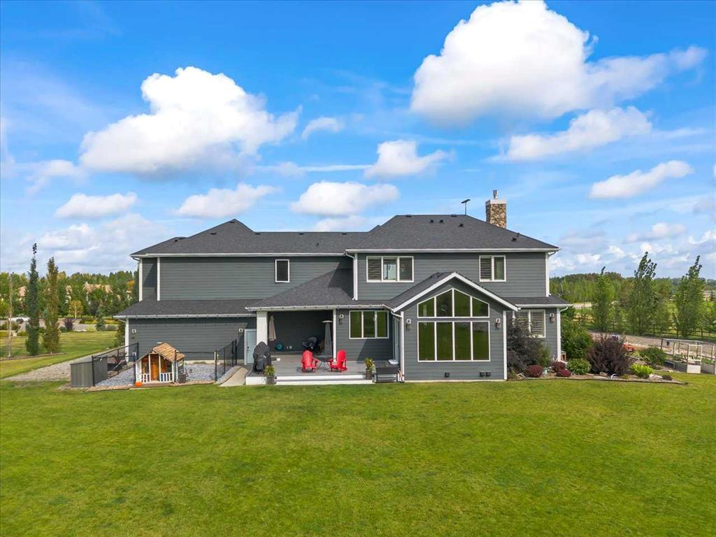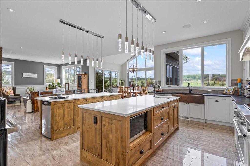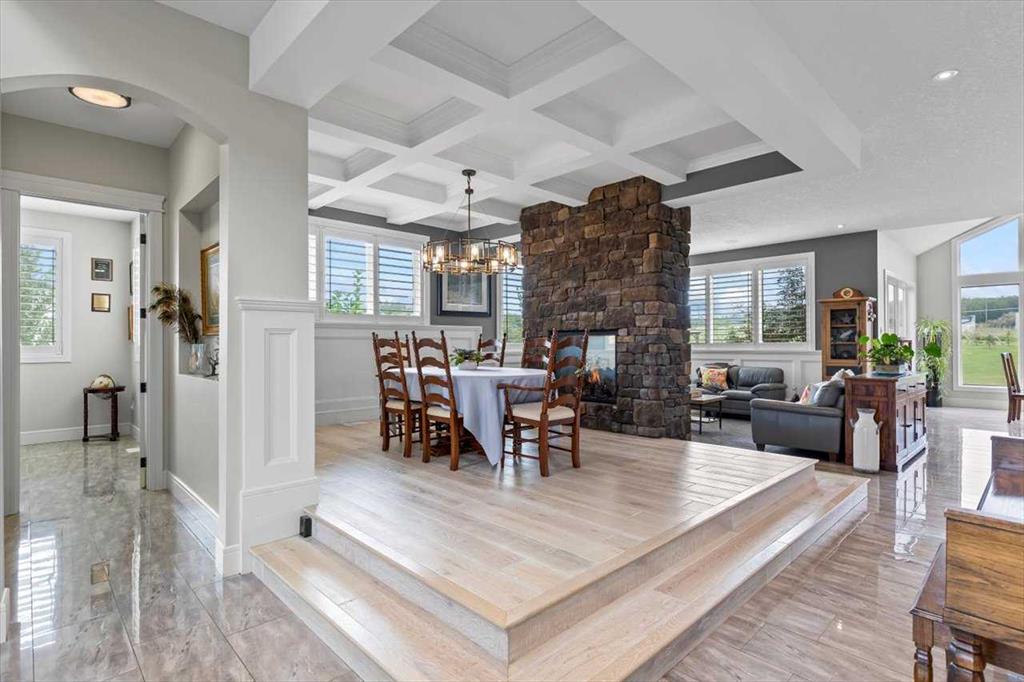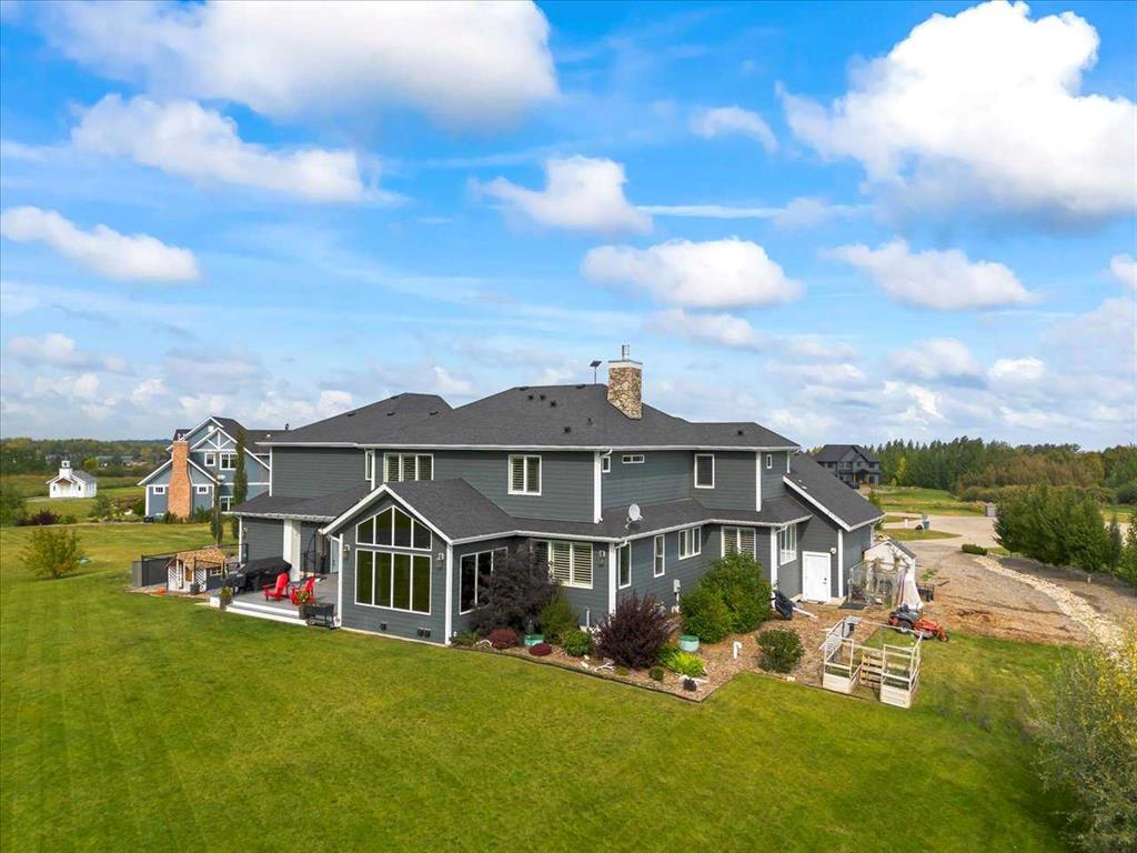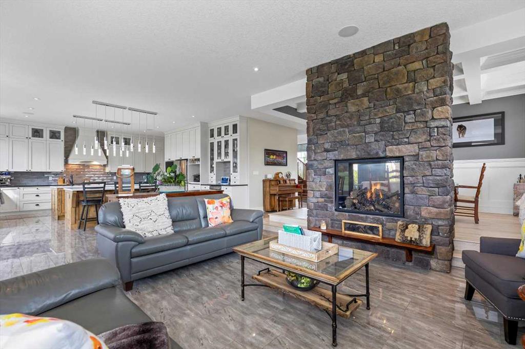 Welcome to an extraordinary CUSTOM-BUILT estate where functional luxury and privacy meet in perfect harmony. Set on 3.12 acres at the end of a quiet cul-de-sac with no neighbours behind, this residence offers more than 7,000 sqft of impeccably designed living space across three levels and a seamless balance of serene country living with city convenience. As you step inside the foyer, the 20-foot ceilings might be the last thing you notice as the adjacent awe-inspiring floating Alderwood staircase immediately grabs your attention and sets a tone of refined craftsmanship. While still standing in the foyer, the open concept design allows you to look past the raised dining room with coffered ceiling, double-sided stone fireplace and living room into the nook with its own 14-foot vaulted ceiling and a panoramic view of the backyard. The gourmet kitchen is a chef’s dream that features floor-to-ceiling custom cabinetry, double 8-foot Knotty Alder Islands, Jenn-Air Professional 36” Dual Fuel 6-Burner Range & Jenn-Air Professional Convection Wall Oven, 40” Native Trails Copper Farmhouse sink, and the striking combination of quartz and leathered granite countertops provides seemingly endless counter space. The main floor also includes a private office ideal for working from home, along with two mudrooms that provide entrance into the home from both heated garages. This magnificent home includes 8 BEDROOMS (each with its walk-in closet) and 7.5 BATHS (in total) with a fully developed basement. Upstairs, you’ll find six bedrooms, including the luxurious primary retreat with an oversized walk-in closet and a beautifully appointed ensuite, along with five bedrooms. There is room for extended family or multi-generational living. The fully finished basement boasts a massive recreation room/games room, two spacious bedrooms and storage. Comfort and efficiency are paramount with in-floor radiant heating, built-in multi-zone sound system and instant hot water throughout the house. The home comes equipped with water treatment, a dedicated sports room, ample storage and even three washers and three dryers to keep pace with an active lifestyle. Enjoy outdoor living at its finest with a large front veranda, a private gazebo surrounded by maturing trees, a firepit / BBQ area, and stunning views of the Calgary Skyline. There is room for your RV, complete with full RV hookups, along with ample parking spaces for more cars than you can imagine. The property is just outside of Okotoks corporate limits (500m), offering you the choice of public and Catholic schools within 5 minutes or private schools less than 10 minutes away from the house. This premium property delivers unrivalled space, privacy and craftsmanship making it a rare offering, add in its ideal location, it’s a one of a kind offering on the market today!