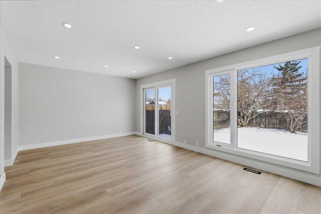 FULLY RENOVATED HOME | ILLEGAL BASEMENT SUITE | NEW FURNACE & WINDOWS | BACKING ONTO GREEN SPACE — Thoughtful updates throughout this home introduce a fresh, modern feel while maintaining everyday functionality for growing households or multi-generational living. A completely separate illegal basement suite with private entry and its own laundry enhances flexibility for extended family or future possibilities. A charming front porch welcomes guests while setting the tone for quiet morning coffee or relaxed evenings unwinding. Durable LVP flooring stretches across the main level, complemented by added recessed lighting that brightens each space beautifully. Effortlessly, prepare meals in the beautifully renovated kitchen showcasing stone countertops, stainless steel appliances, sleek cabinetry and a stylish backsplash, all arranged for both efficiency and visual appeal. Gather in the adjacent dining area where bayed windows frame the space and encourage connection over shared meals. Relax comfortably in the living area where a gas fireplace anchors the room and custom built-ins add both character and practical storage. Oversized windows paired with patio sliders draw in natural light while creating a seamless transition to the backyard for simplified indoor and outdoor living. A refreshed powder room completes the main level with clean, modern finishes. Head upstairs where LVP flooring continues without any carpet, supporting easy maintenance and a cohesive look. Enjoy the convenience of upper laundry while 3 bright bedrooms accommodate family or guests with ease. Refresh daily routines in the updated 4-piece bathroom finished with contemporary styling. Discover additional living space downstairs where the illegal suite presents an open layout, full kitchen with full-height cabinetry, separate laundry, a spacious bedroom and a modern 3-piece bathroom, all designed for comfort and independence. Step outside to a west-facing backyard where mature landscaping surrounds a fully fenced yard, offering ample room for kids and pets to play. Backing directly onto green space with sports fields and an outdoor skating rink extends recreational options while eliminating rear neighbours. Take advantage of off-street parking via the front driveway for added convenience. Situated in the established and family-oriented community of Abbeydale, this location places schools, parks, pathways, transit, tennis courts and a vibrant community centre within easy reach, while nearby shops and major routes simplify daily errands and commuting.