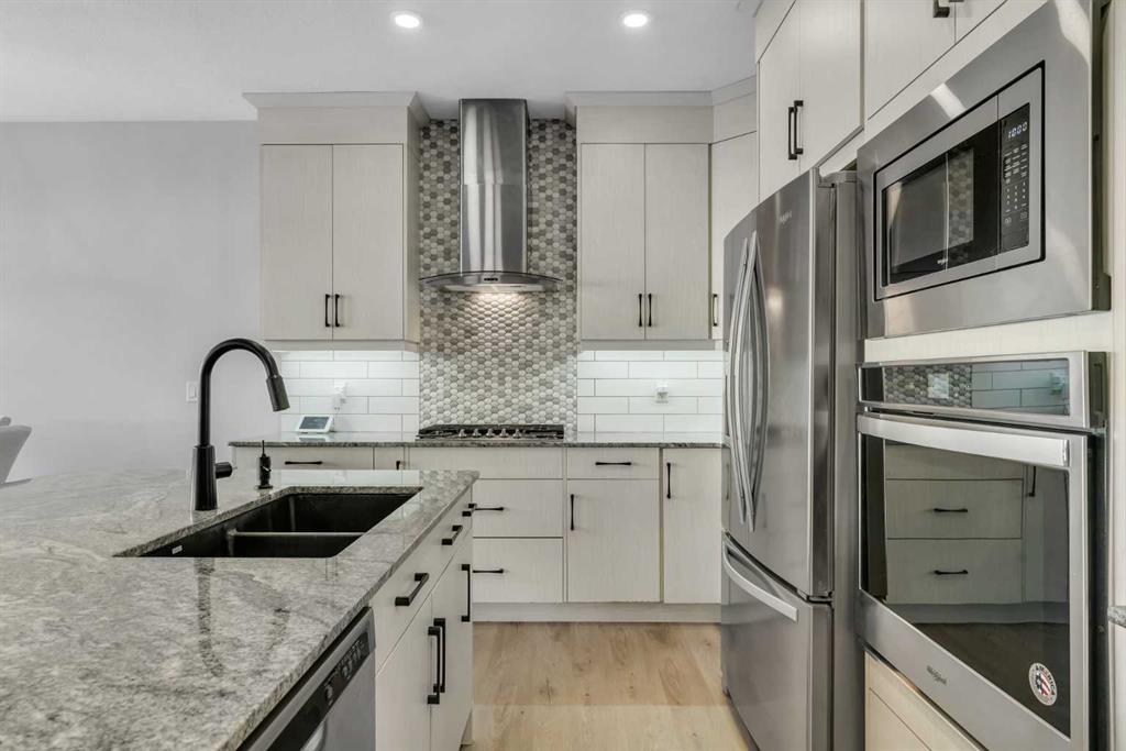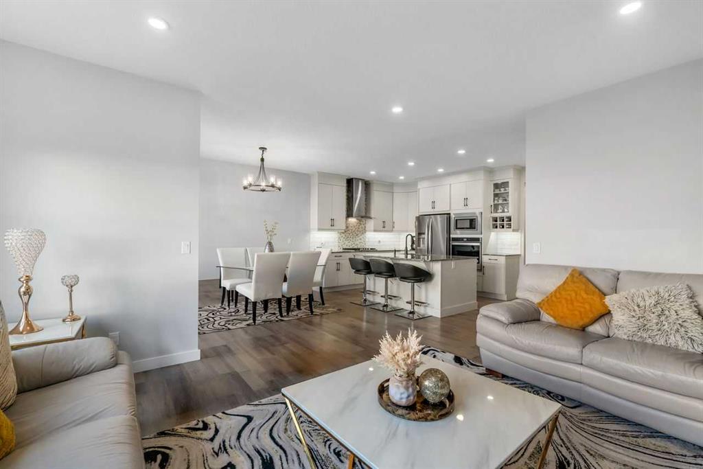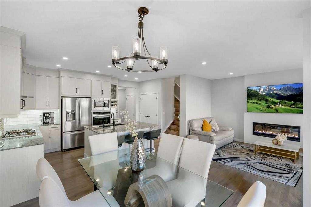 *Watch the video* Open House March 14th: 2:30pm – 4:30pm. This is the one! Home Sweet Home! Fall in love at first sight with this picture-perfect home where luxury meets everyday functionality in the heart of Carrington NW. This fully upgraded, nearly 2,000 SQFT, move-in ready Trico-built home showcases high-end finishes and modern elegance — prepare to be impressed! Located on a quiet, family-oriented street just steps from walking trails and the pond, this home offers the perfect setting for nature lovers. Excellent Location | Bright & Open Floor Plan | Generous Size Backyard | Stunning Chef’s Kitchen | Top of the Line Appliances | 3 Spacious Bedrooms (All with walk-in closets) | Vinyl Flooring Throughout | Bonus Room with Vaulted Ceilings | Side Entrance | 9FT Basement Ceilings. Upon entry, a warm and inviting foyer welcomes you into an open floor plan filled with natural light. The state-of-the-art chef’s kitchen is the true showstopper — featuring gorgeous quartz countertops, extensive cabinetry including glass cabinets and wine shelving, sleek black hardware, an upgraded designer backsplash, under cabinets lighting, and a massive island perfect for entertaining. The elegant living room is framed by large windows and a cozy fireplace, creating a warm and inviting space for winter evenings. The spacious dining area comfortably accommodates a 6–8 seat table for family gatherings. Upstairs, upgraded vinyl flooring continues throughout — no carpet whatsoever! The vaulted bonus room is ideal for movie nights or a kids’ retreat. This level offers three generous bedrooms, including a primary suite with a walk-in closet and a private ensuite featuring a tub, glass shower, and dual sinks. Two additional bedrooms with walk-in closets, a full bathroom, and a convenient laundry room complete the upper floor. And with a separate side entrance and an unfinished basement with rough-ins for a future bathroom, wet bar, and laundry, you’re not just buying a home — you’re investing in future potential. Ample of backyaard space – something which would find as a rare feature now days – your kids would love to play around and your summer gatherings would be amazing. Located in a desirable NW Calgary community with quick access to Stoney Trail, schools, parks, and shopping, this home offers the perfect blend of luxury, space, and modern convenience. Don’t miss your chance to own this fully loaded dream home.