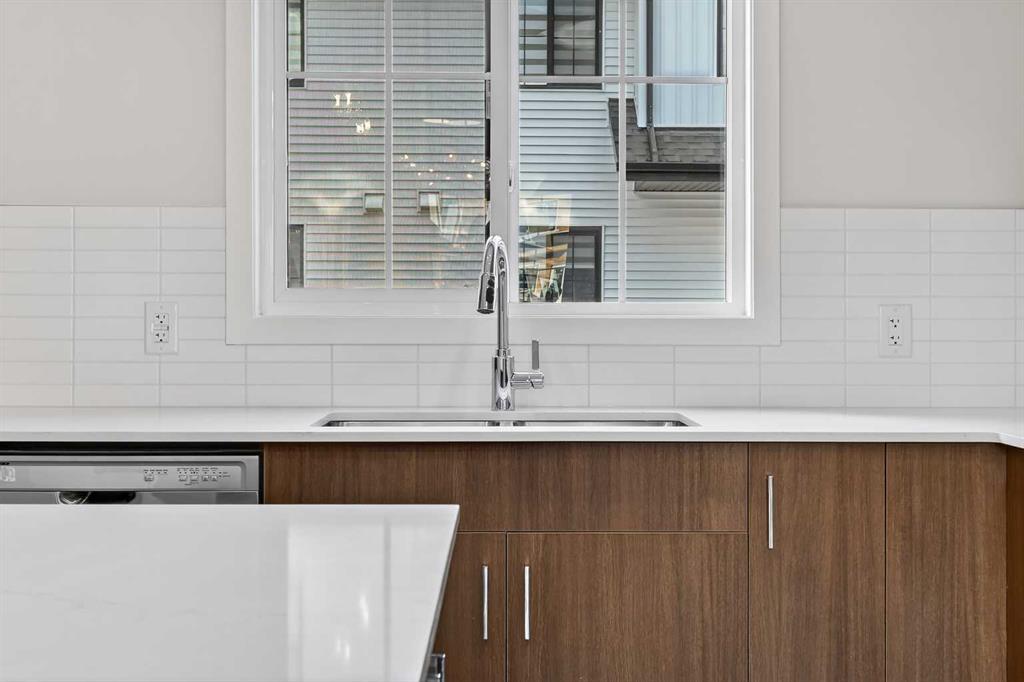 HOME IS UNDER CONSTRUCTION. StreetSide proudly presents this exceptionally popular interior-unit townhome, where expansive living areas meet modern comforts and sophisticated finishes. The thoughtfully designed floorplan features three spacious upper-level bedrooms and two and a half well appointed bathrooms, complemented by a versatile lower-level den perfect for a home office or quiet retreat. The heart of the home is an inviting open-concept main floor, anchored by a large gourmet kitchen featuring a functional breakfast bar for casual dining. This bright living space transitions seamlessly to a private balcony, offering a perfect setting for outdoor relaxation. The interior showcases high end craftsmanship, including modern dark slab-style cabinetry with a full bank of drawers for maximum storage. The kitchen is further elevated by polished white quartz countertops and a full suite of premium stainless steel appliances. Durable luxury vinyl flooring runs throughout the primary living areas, while the stairs and upper level are finished with plush carpet over an 8lb underlay for superior comfort. Additional conveniences include an attached double car garage and a lifestyle defined by maintenance free living and professionally maintained landscaping. Located in the vibrant community of Hotchkiss, where nature takes centre stage by boasting 80+ combined acres of green space and wetlands, providing a scenic backdrop for modern living. Enjoy proximity to Seton’s vibrant retail district, world-class healthcare, and easy highway access. As the community grows to include its own school and daycare, Hotchkiss remains the premier choice for those seeking a balanced, well-connected lifestyle. Please note that photos used are of another unit as this home is still being built.