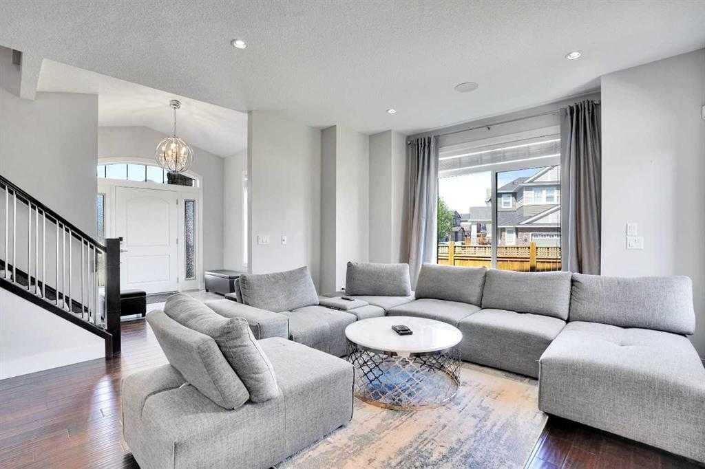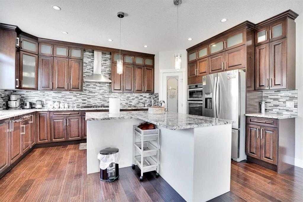 Luxury living at its best in heart of Chestermere. Outstanding curb appeal with custom stonework and a spacious front porch with an extra wide front entry door. With over 4000 total square feet of beautifully designed living area which will exceed all expectations. Step inside the spacious entry foyer overlooking a beautiful open design and layout.You will be greeted by high end upgrades such as dazzling crystall chandeliers, a striking stone feature wall with a gas fireplace, built-in shelving, gorgeous granitecountertops,, gleaming engineered hardwood floors. Expansive Palladian windows flood the interior with natural light while walk-in closets, custom built-ins, and premium appliances add to the home’s luxurious appeal. The open concept main floor with family sized living and dining rooms, genorous sized office. Chef inspired kitchen is a show stopper with an oversized island featuring a second sink and breakfast bar, ceiling height cabinitry and a walk-in pantry. With 6 bedrooms and 5 bathrooms there is room for everybody. The primary bedroom is your personal spa like retreat that is accessed through elegant french doors into a massive bedroom withwith a walk-in closetthat is custom outfitted with dressers, jewelry drawers, shoe racks,purse hooks, and a full length mirror. The ensuite bathroom includes an oversize jacuzzi tub and a walk-in stone and tile shower. Included in the upper floor are 3 more bedrooms 2 full bathrooms, laundry room plus a spacious bonus room with built-ins (plus if you desire there is full laundry hook-ups on the main floor. The fully developed basement offers 2 more bedrooms, alarge recreation room, 3 large storage rooms. There are speakers built-in throught the home and the backyard to provide the perfect ambiance for those who enjoy entertaining. Your private backyard oasis features massive exposed aggregate patio area with a new quarry stone fireplace. The fully landscaped yard includes mature trees for privacy, raspberry bushes, perennial, gardens, and including a cheery treeplus apple trees that produce three apple varieties. The oversized triple garage is a dream for mechanics and hobbyists of all kinds with high knockdown ceilings, a large built-in workbench, fully insulated and roughed in for a gas heater. There is backyard access via a large gate for storing an RV or boat on this huge 5527 sq foot corner lot.Tucked away on a quiet street with minimal traffic, just 1 blockfrom East Lake school, Camp Chestermere, and close to walking paths, parks, playgrounds, as well as shopping, dining, and other amenities.