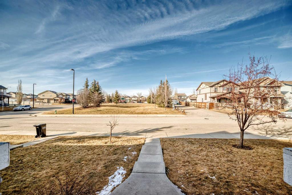 Hello, Gorgeous! Welcome to this charming two-storey home located in the family-friendly community of Morningside, Airdrie. Situated on a quiet street directly across from a greenspace and playground, this home offers a functional layout and convenient access to nearby schools, shopping, and pathways. The main floor features hardwood flooring, an open-concept living and dining area, and a kitchen with granite countertops, a central island, and stainless steel appliances. A 2-piece bathroom completes the main level. Upstairs includes three bedrooms and two full bathrooms, including a primary bedroom with a walk-in closet and 4-piece ensuite. The basement is partially finished with framing in place for two additional bedrooms and a bathroom. The backyard includes a variety of fruit trees and garden space, along with a double detached garage. This home is within walking distance to schools, parks, and amenities, with easy access to Deerfoot Trail for commuting.