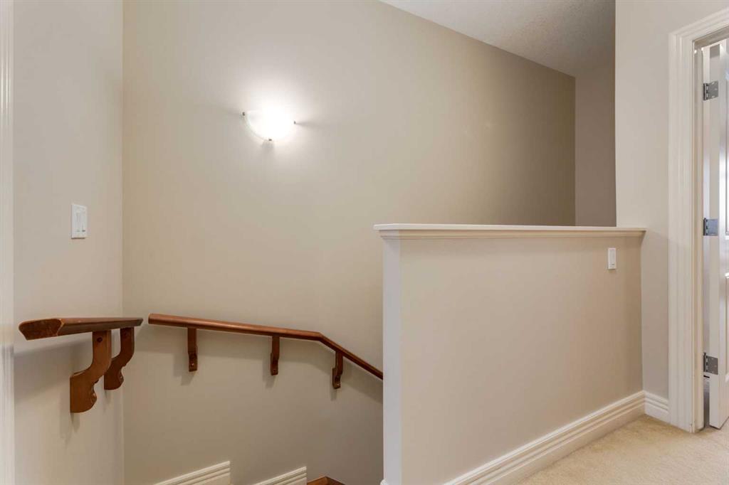 Exceptional value with low condo fees in the highly sought after community of Rocky Ridge, offering west facing mountain views and a quiet, private location in the complex. The entry level welcomes you with a spacious foyer, additional storage and direct access to the single attached heated garage, complete with an EV charging station. The main floor features 9’ ceilings, rich cherry hardwood flooring and a bright open concept design ideal for everyday living. The kitchen connects to the dining and living areas, while large windows flood the space with natural light. Just off the living room, a patio door opens to a spacious deck; perfect for relaxing or entertaining. Upstairs, enjoy the convenience of upper level laundry. The primary bedroom captures beautiful mountain views and includes a 3 piece ensuite, while a second bedroom and full 4 piece bathroom offer flexibility for family, guests or an additional space for a home office. Recent updates include; Furnace (2021), Epoxy flooring in garage (2024), Hot water tank (2025) and Humidifier (2025). The complex itself includes a spacious fitness centre, ample visitor parking, gazebo area and included in the condo fees is access to the Rocky Ridge Community Center. The community provides easy access to parks, playgrounds, walking paths, shopping & schools. Just 15 minutes from the University of Calgary, Foothills Hospital, Calgary Children’s Hospital, Market Mall, Bowness Park, Canada Olympic Park & more!