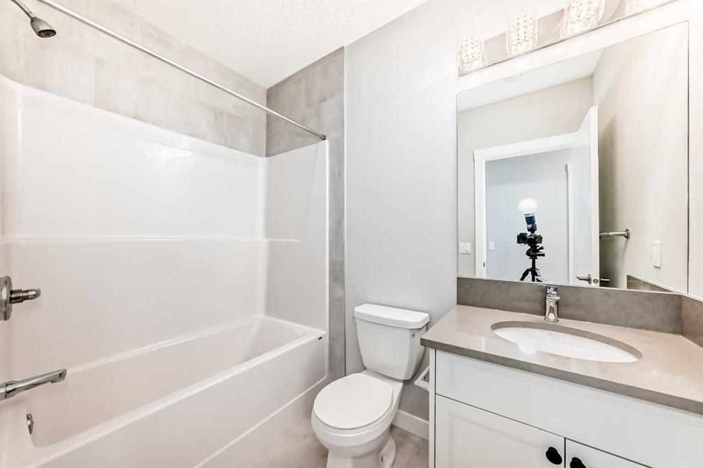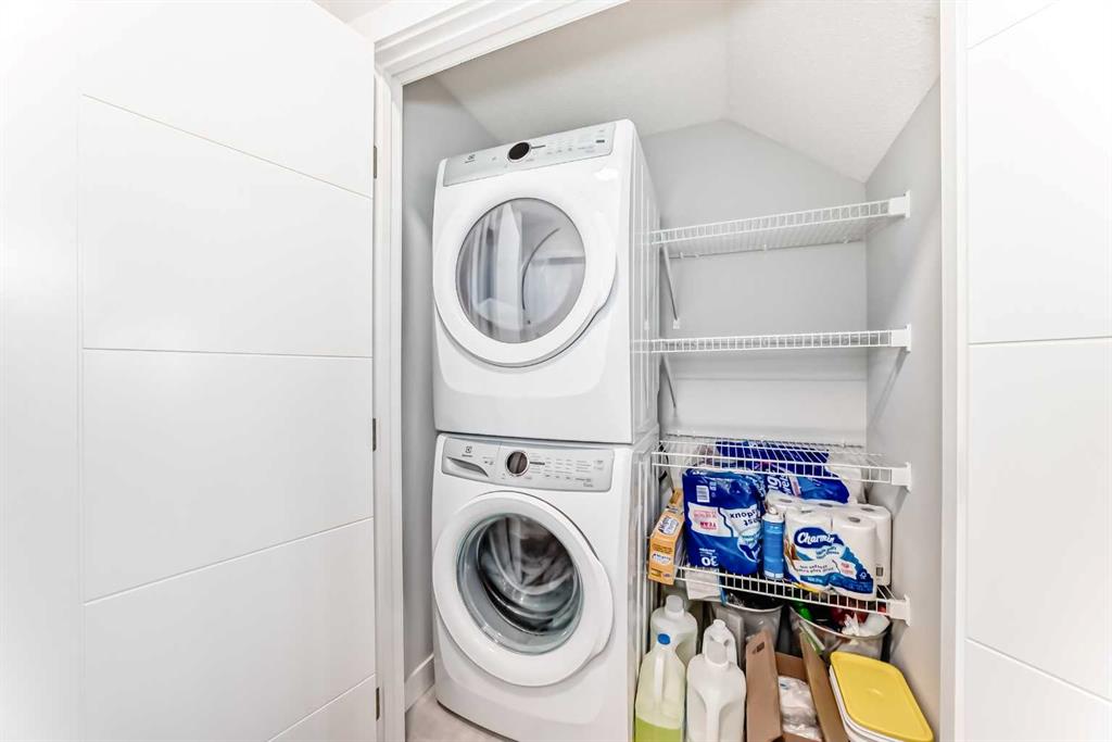 Legalized basement secondary suite with separated front entry, good starter home or investment property, welcome to this very well kept half duplex in prestige Rockland Park (Haskayne). It situated directly across Rockland community center and the pond. It features vinyl flooring throughout, tiles in the bathrooms, 9 feet ceiling on the main and basement floors, quartz counter tops in the kitchen and bathrooms with undermount sinks, full height cabinets, and upgraded stainless steel appliances. Upper floor has 3 good size bedrooms, master bedroom with covered balcony overlooks the community center, the pond, and open view, ensuite with 4 pieces full bath, large walk in closet, and upper laundry room. Main floor with spacious dining area, large balcony, open kitchen with induction stove, built in microwave, chimney hood fan, and large fridge, and large living room with big windows. Walk up basement has been fully finished with legalized suite. It has large living room, spacious kitchen and dining area, 1 bedroom, and full bath room. It closes to the pond, community center, playground, and easy access to major roads. ** 172 Rowmont Blvd NW **