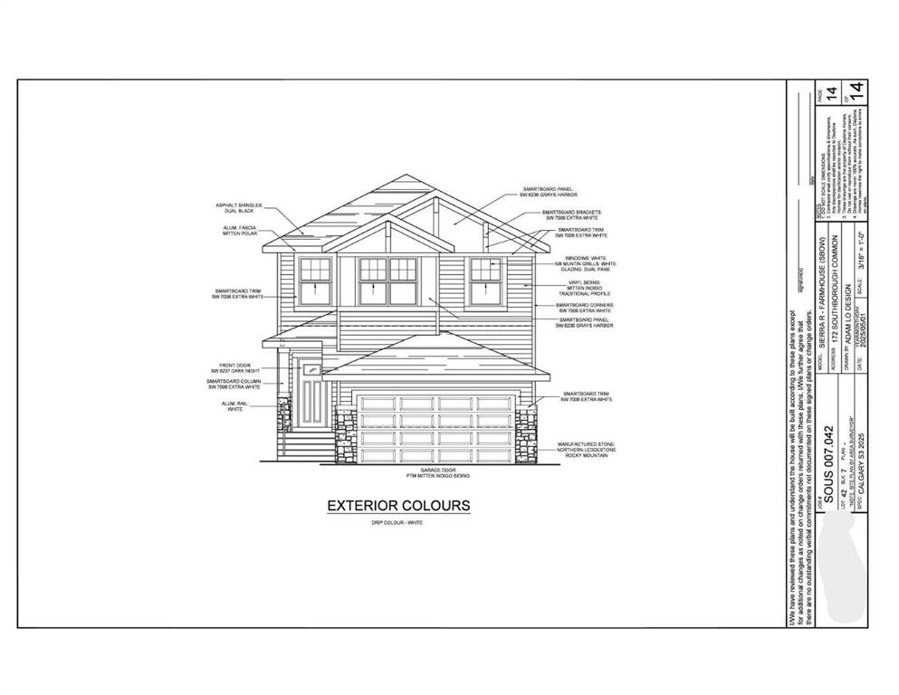 The unfinished basement features a 9-foot foundation height and a practical layout ready for future development. The exterior shows strong curb appeal with a modern farmhouse elevation, smartboard detailing, stone accents, and a full double attached garage.