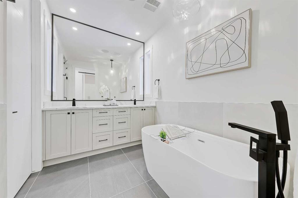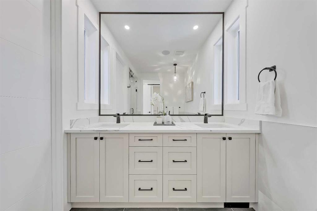 **SHOWHOME HOURS THIS WEEKEND: SATURDAY, JANUARY 17 & SUNDAY, JANUARY 18 AT 12-2PM** *SEE MULTIMEDIA LINKS FOR FULL DETAILS* This fully-developed and move-in-ready detached infill is a refined blend of architectural presence, thoughtful functionality and timeless design. Featuring over 2,655 sq. ft. of finished, bright living space (more than 1,900 sq. ft. above grade), this home includes 4 bedrooms, 3.5 bathrooms, and a double detached garage. This home was built by a custom inner-city builder, renowned for their meticulous attention to detail. Designed with the focus on beauty and natural lighting, this home provides instant luxury that exceeds expectations. The open-concept main floor is defined by 10-foot flat painted ceilings and wide-plank hardwood flooring throughout. A bright entryway with a generous front hall closet lead into the sun-filled dining area, where oversized windows create an inviting atmosphere. The living room is anchored by a linear gas fireplace with a full-height tile surround, offering warmth and understated elegance. A discreet powder room with quartz countertops and custom cabinetry, along with a rear mudroom featuring built-in storage and backyard access completes the space. At the heart of the home, the chef-inspired central kitchen makes a striking statement with an oversized 13-foot quartz waterfall island, ceiling-height shaker cabinetry, full-height tile backsplash, and a premium Bosch appliance package, including a gas cooktop, wall oven, French door refrigerator, chimney-style hood fan, built-in microwave, and integrated dishwasher—delivering both performance and timeless appeal. Upstairs, 9-foot ceilings and engineered hardwood flooring continue throughout. The primary retreat offers a vaulted ceiling, oversized windows, built-in speakers, and flexible space for a reading nook or home office. The spa-like 5-piece ensuite features heated tile floors, a freestanding soaker tub, dual vanities with quartz counters, and a fully tiled walk-in shower with rainfall head, body jets, and steam rough-in. Two additional bedrooms with walk-in closets, a beautifully finished main bath, and a dedicated laundry area complete the upper level. The bright, fully developed basement features 9-foot ceilings, plush carpeting, a spacious rec room with a wet bar, a large fourth bedroom with a walk-in closet, and a 4-piece bathroom. Thoughtfully prepared for a future legal basement suite, it includes a framed second exterior door, in-floor heat rough-in, future kitchen wiring, laundry rough-ins, and a 200-amp electrical panel. The exterior showcases Hardie board and brick siding, exposed aggregate walkways, full landscaping, and a large composite deck with a BBQ gas line. The home is backed by a Builder Warranty and Progressive 10-Year New Home Warranty. Ideally located in Capitol Hill, just minutes to downtown, SAIT, U of C, North Hill Centre, parks, schools, transit, and major routes—offering effortless inner-city living with enduring value.