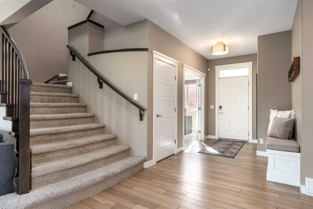 Experience the ultimate year-round lake living with this exceptional former Albi show home, nestled on one of Auburn Bay’s most desirable cul-de-sacs. With semi-private access to Auburn Bay’s lake shared by only 18 homes, this property offers an extraordinary lifestyle with privacy, convenience, and luxury, just steps from your home. Follow the semi private path to the lake, where you’ll find a shared dock, perfect for swimming, paddleboarding, or soaking up sunset views. This exclusive access, paired with Auburn Bay’s resort style amenities, delivers an unmatched four-season lifestyle—whether you’re skating in winter or hosting summer gatherings on the water. Offering over 4,050 sq. ft. of beautifully developed living space, this home blends timeless design with thoughtful upgrades throughout. The bright open concept main floor is anchored by a custom stone gas fireplace and filled with natural light from oversized east facing windows. The chef’s kitchen is an entertainer’s dream, with full height cabinetry with customized pull-outs, quartz countertops, upgraded stainless steel appliances, and a large centre island. A walk-through pantry adds convenience and extra storage. A private home office near the front of the home provides a quiet retreat, while the spacious mudroom complete with built-in benches and custom closet organizers-keeps life organized and clutter-free. Upstairs, the primary retreat offers privacy on the opposite side of the upper level from the secondary bedrooms and bonus room. This serene space includes a spa-inspired ensuite with heated floors, dual vanities, soaker tub, and a walk-through closet with direct access to laundry. Two additional bedrooms, two linen closets, a full bath, and a sun-lit bonus room wired for surround sound complete this level. The fully finished basement, completed in 2024, adds even more versatility with a dry bar, media/games room(wired for projector), gym area, and a guest bedroom with solid core door and a full bathroom with heated floors, offering peace and privacy. The soundproofed basement ceiling ensures a quiet environment throughout. Highlights include: • Two furnaces & two A/C units (zoned) • In-ceiling speakers & Hunter Douglas window coverings • Smart Hunter irrigation system for improved efficiency • Professionally landscaped yard with fire pit, hot tub rough-in, and private lake access gate • Double attached garage with vaulted ceilings, wall & ceiling storage, tire rack, and rough-in for heat • NEST thermostats, security system & components (not monitored), and central vacuum. Beyond the impressive features of the home lies its true highlight, exclusive access to Auburn Bay’s lake and a vibrant, family-friendly community. Enjoy year-round amenities including swimming, skating, paddleboarding, tennis, the splash park, and the Beach House. Close to South Health Campus, YMCA, top-rated schools, shops, and major routes this home offers not just luxury, but a complete lifestyle experience.