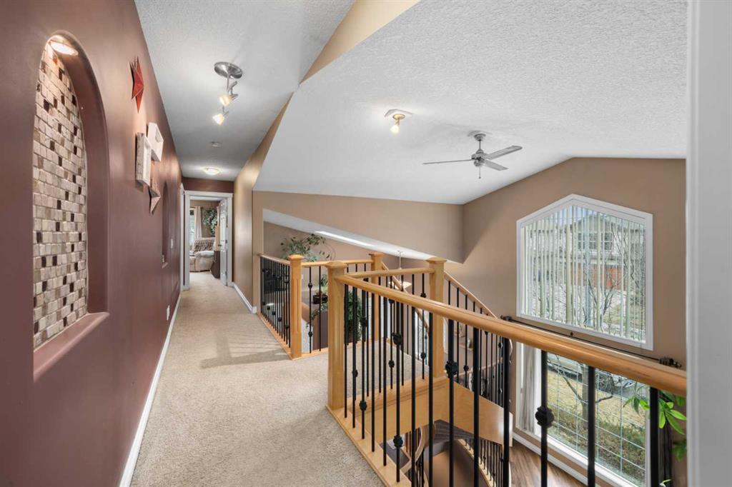The main floor is completed by a bedroom or office and a convenient 2-piece bathroom. Upstairs, the spacious primary retreat offers a charming window seat, walk-in closet, and a luxurious ensuite with heated floors, jetted tub, dual sinks, and a tiled shower. A second bedroom and a combined laundry with 4-piece bathroom add everyday convenience.