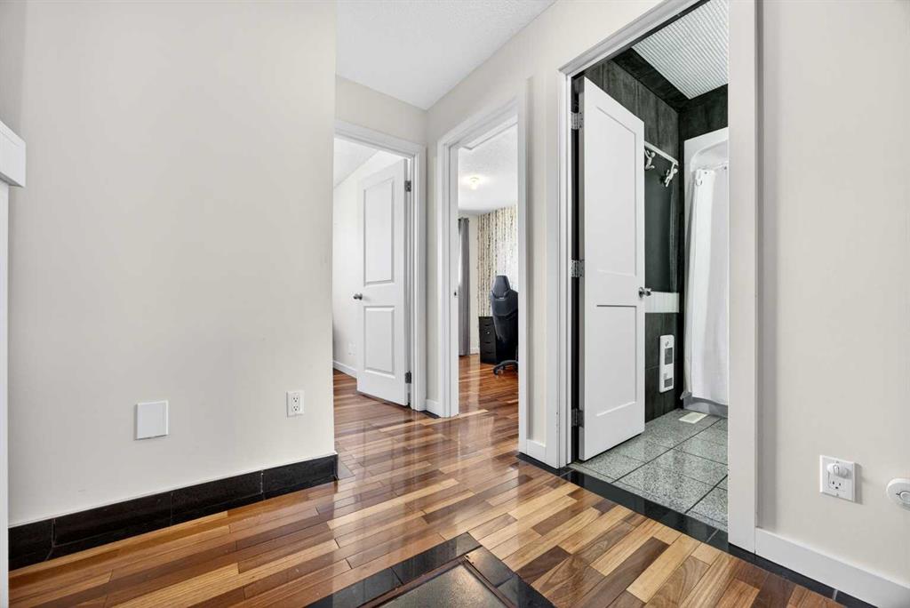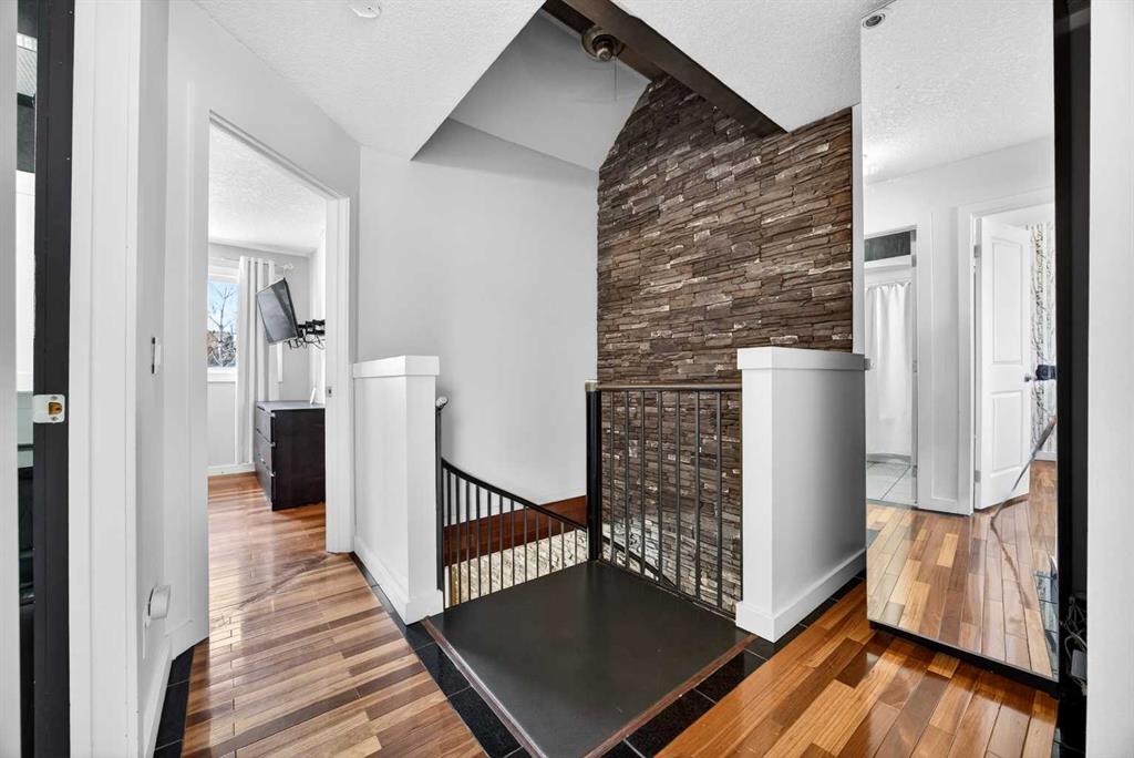 Welcome to this bright and beautifully maintained end-unit townhome in the heart of Temple. With 3 bedrooms, 2.5 bathrooms, and a fully developed basement, this home is ideal for families, first-time buyers, or investors alike. Step inside to a sun-filled, open-concept main floor featuring gleaming hardwood floors and an abundance of natural light. The kitchen is both modern and functional, showcasing floor-to-ceiling cabinetry, granite countertops, and a spacious island with built-in cooktop and upgraded hood fan—perfect for entertaining. A built-in oven, stainless steel appliances, and a French door fridge complete the space, all seamlessly flowing into the inviting living room. A convenient 2-piece bathroom rounds out the main level. A striking spiral staircase adds architectural charm and leads you upstairs to three well-sized bedrooms and a full 4-piece bathroom. The primary bedroom offers a walk-in closet. The fully developed basement extends your living space with a newer 4-piece bathroom—ideal for guests, a home office, or recreation area. Enjoy your east-facing, fenced backyard with morning sun—perfect for your coffee. Additional features include air conditioning, an assigned parking stall, and the added natural light of an end unit. Located within walking distance to St. Thomas More School, and just minutes from shopping, restaurants, and Stoney Trail, this home offers unbeatable convenience for commuters and families alike. Call your favourite realtor today to book a private showing.