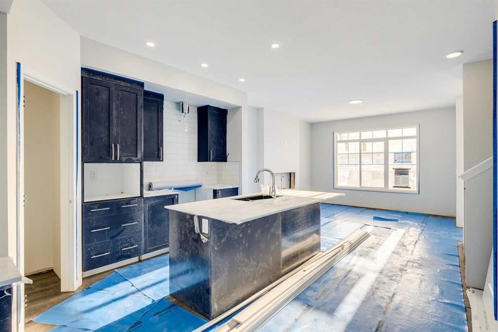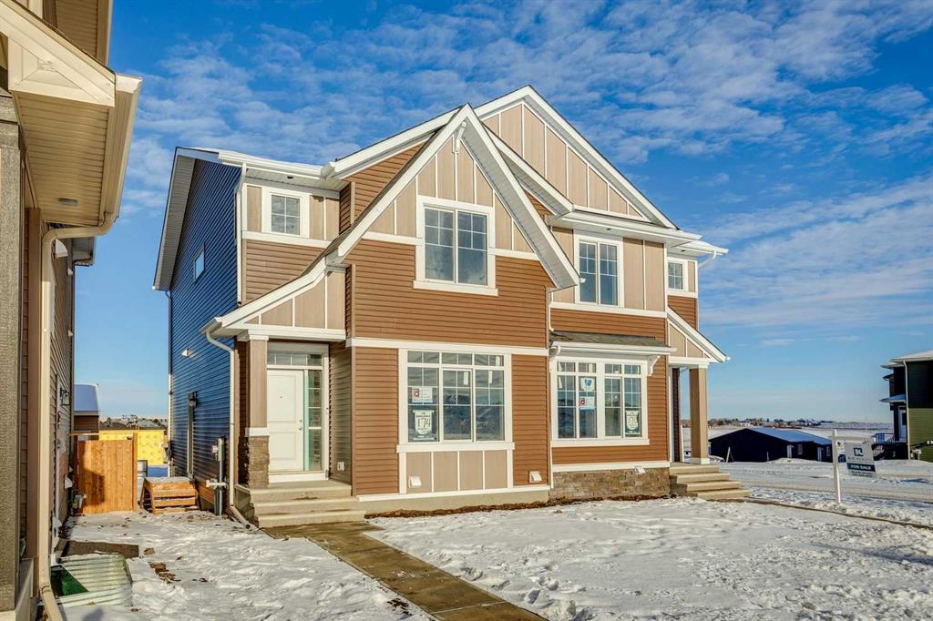 Welcome to this modern Morrison Homes 3-bedroom duplex in the sought-after community of Glacier Ridge. The main floor offers an inviting living area with an electric fireplace, knock-down ceilings, vinyl flooring, and a stylish kitchen complete with a central island, pantry, quartz countertops, a built-in microwave, and a fridge with a water line. A half bath on this level provides added convenience for guests. Upstairs features three generous bedrooms including the primary bedroom with its own 4-piece ensuite, plus a second 4-piece bathroom and a convenient laundry area. The basement includes a separate side entrance, a 9’ foundation, and rough-ins for a future suite (a secondary suite would be subject to approval and permitting by the city/municipality) offering excellent potential for added living space or income generation. Outside, you’ll find a deck with a built-in gas line for your BBQ, plus a gravel parking pad providing easy off-street parking. Glacier Ridge Village is expected to open in 2026 and will feature a skating ribbon, walking paths, basketball courts, an all-ages playground, spray park, tennis court, ice rink, patio spaces, firepit, and a toboggan hill. Inside, residents will enjoy a gymnasium, rentable rooms for programs and private events, banquet space, and welcoming seating and gathering areas. Located in one of Calgary’s newest and most desirable communities, this home blends modern comfort with exceptional future amenities.
