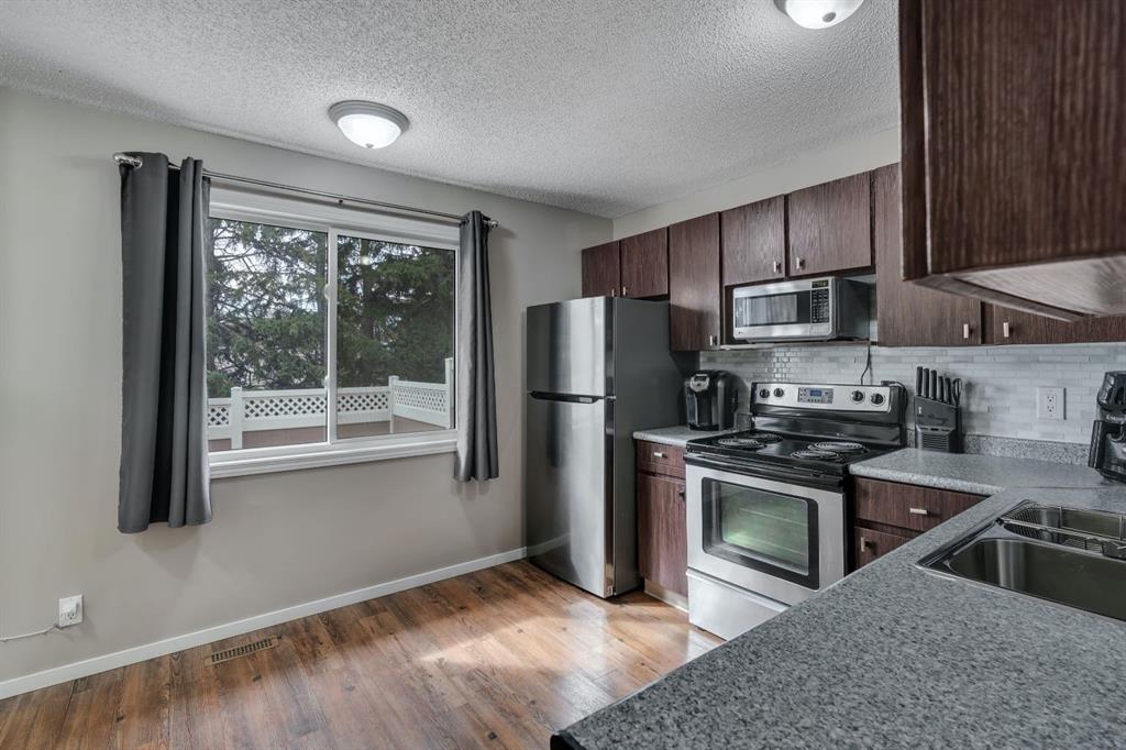 Welcome to this beautifully updated townhouse in a fantastic location close to all amenities. The spacious eat-in kitchen features freshly painted cabinets, updated hardware, newer sink and faucet, updated countertops, and durable laminate flooring. The bright living room offers large windows, newer paint, and updated carpet, creating a warm and inviting space. The main floor bathroom has been fully refreshed, while the upstairs bath features a new vanity, fresh paint, and laminate flooring. Upstairs you’ll find three bedrooms with closet organizers, including an exceptionally large primary bedroom for a home of this size. The lower level family room provides excellent additional living space and has been updated with new paint, baseboards, and Berber carpet. Enjoy your private fenced backyard, perfect for relaxing or entertaining. With low condo fees and a location close to shopping, schools, parks, and transit, this is an excellent opportunity for first-time buyers, families, or investors. 24 notice required .