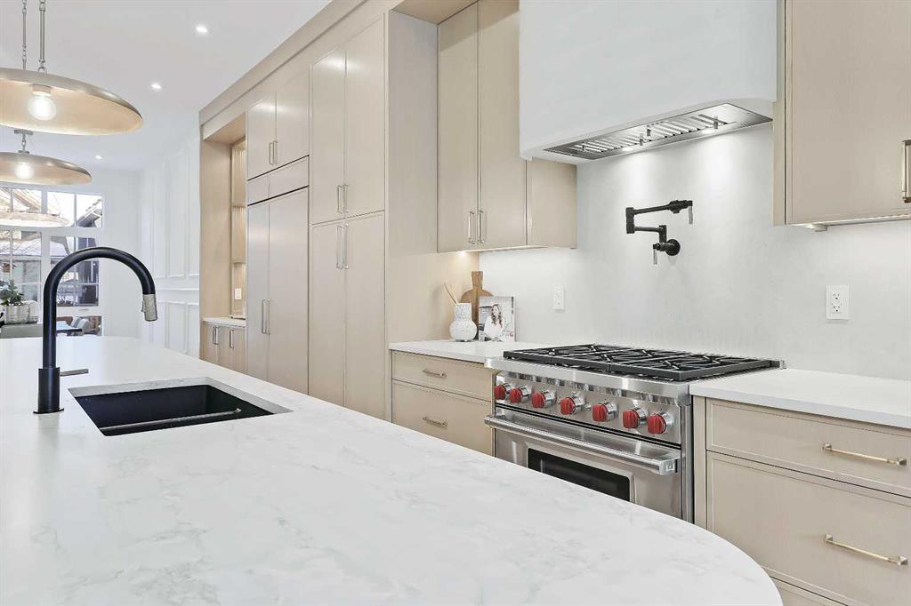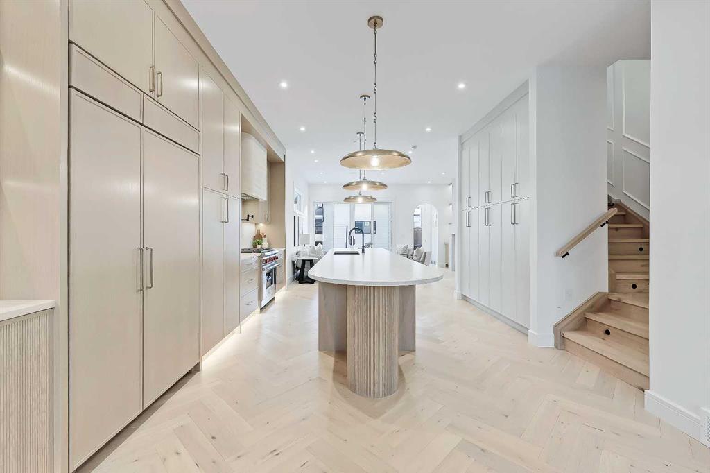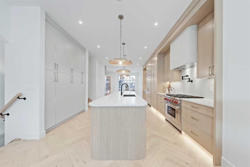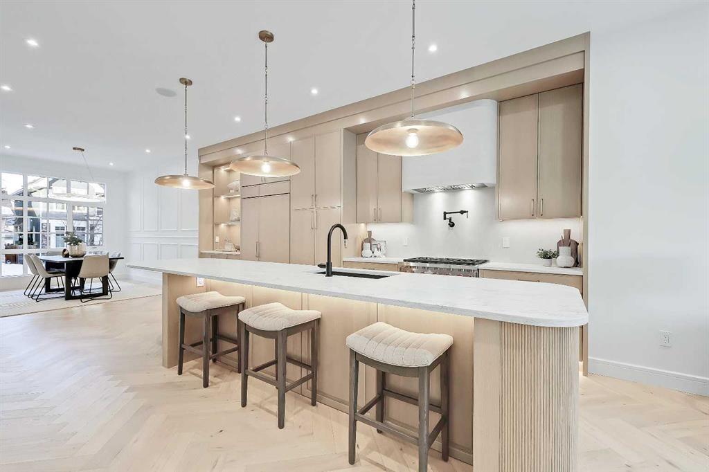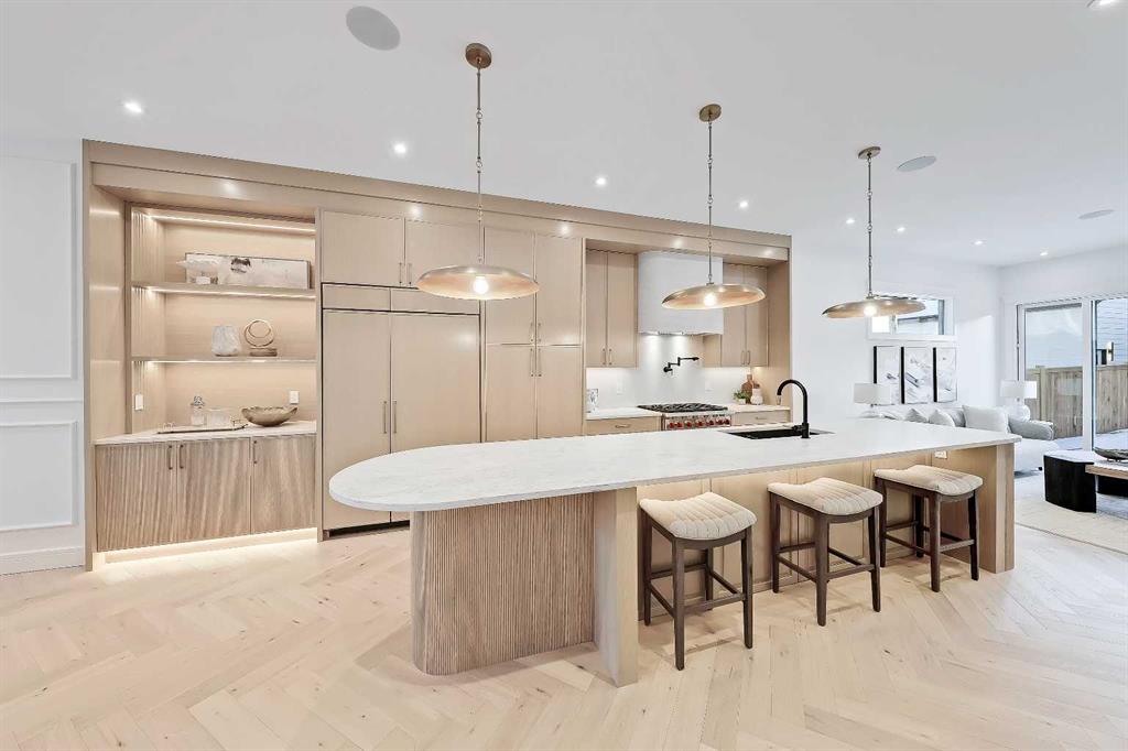 Welcome to a home that truly defines luxury living in Calgary’s prestigious Altadore community! Built by renowned Alliance Custom Homes, this 3-STOREY residence combines exceptional craftsmanship w/ thoughtful design to create a space that’s as functional as it is beautiful. Located on a desirable street in Altadore, this home is surrounded by stunning infills that create a cohesive & upscale streetscape! From the moment you arrive, the home’s timeless architecture & clean lines exude elegance. Inside, you’re greeted by an abundance of natural light pouring in through oversized windows, highlighting the soaring ceilings & open layout. The heart of the home is the kitchen – a true showstopper for culinary enthusiasts. It’s equipped w/ professional-grade appliances, including a gas cooktop & built-in wall oven, along w/ a sleek quartz island that serves as a workspace & gathering spot. Custom, full-height cabinetry offers plenty of storage, while a butler’s pantry keeps everything organized & out of sight w/ a convenient prep sink. The main floor flows seamlessly into a spacious living room anchored by a sleek gas fireplace & accented by full-height sliding glass doors leading to the wood deck & landscaped backyard. Whether you’re hosting a formal dinner in the elegant dining area or enjoying a quiet evening at home, the main floor delivers on both style & comfort. A thoughtfully designed mudroom w/ built-in storage adds practicality to the mix, as does a bright pocket office w/ a glass wall, making day-to-day living effortless. Upstairs, the primary suite is a luxurious retreat w/ a recessed 11-ft ceiling in front of the ceiling-height windows! The spa-inspired ensuite feels like your own private getaway, featuring a soaker tub, an oversized tile shower, & a custom vanity w/ dual sinks. Dual walk-in closets are equally impressive, w/ built-ins designed to keep everything perfectly organized. The other side of this level features two good-sized secondary rooms w/ a modern 4-pc bath, perfectly spacious for growing kids! The modern conveniences continue up to the third floor, w/ a third bedroom w/ a walk-in closet, a 4-pc main bath, a large storage room, & every entertainer’s dream – a full wet bar w/ quartz island! A private balcony is perfect for summer get-togethers & quiet evenings w/ family. The living space continues into the finished basement w/ a large rec space w/ a custom wet bar, a home gym area, & a fourth bedroom w/ direct access to a 4-pc bath – ideal for guests or a live-in nanny. Located in one of Calgary’s most vibrant communities, this home isn’t just a place to live – it’s a lifestyle. Altadore is known for its mature tree-lined streets, close-knit community feel, & access to some of the city’s best amenities. From top-rated schools to boutique shops, trendy cafes, & the stunning green spaces of River Park, everything you need is just steps away. This home is the perfect blend of sophistication, comfort, & convenience!
