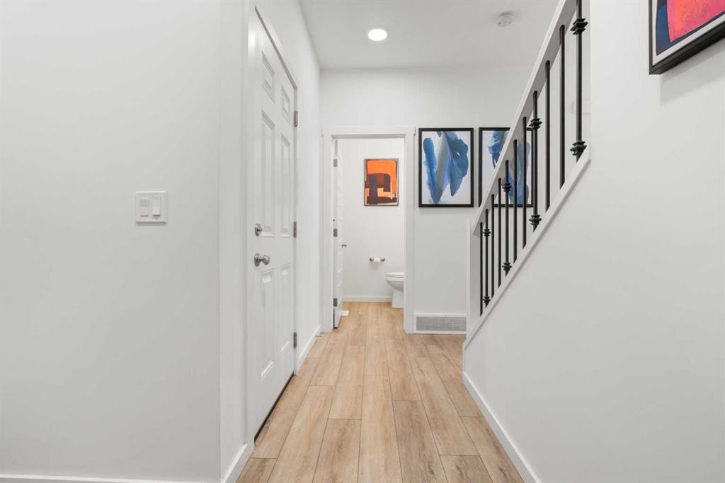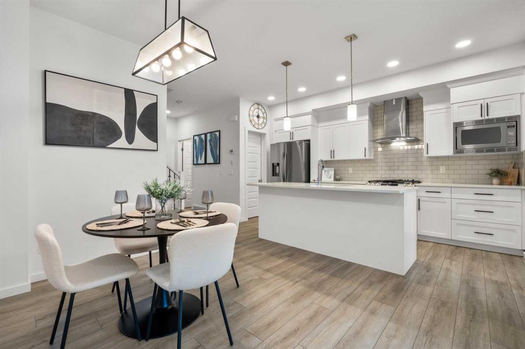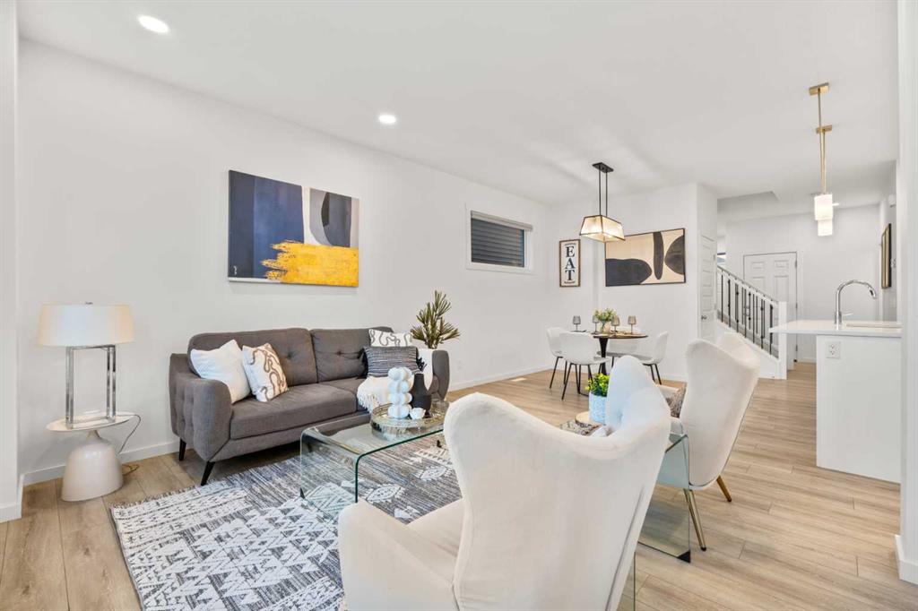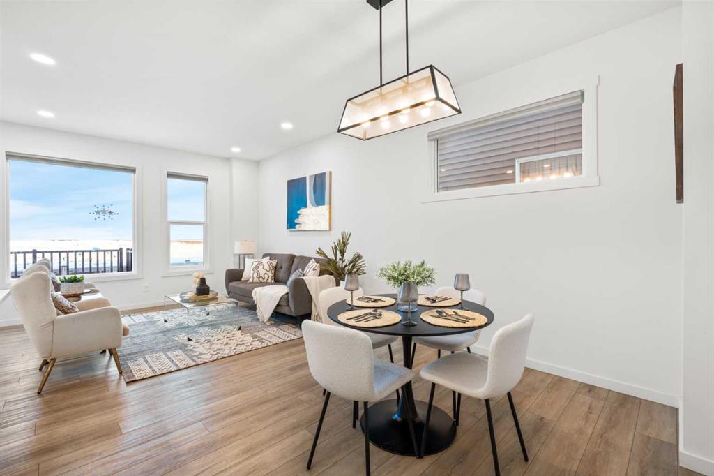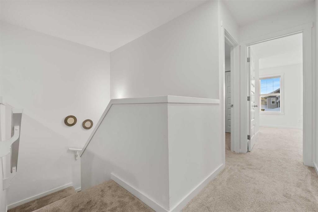 Welcome to this beautifully appointed 3-bedroom, 2.5-bath duplex in the peaceful and thoughtfully designed community of Creekstone—one of Southwest Calgary’s most exciting new neighbourhoods. This home offers the perfect blend of modern comfort and natural surroundings, featuring a quiet family-friendly street, a single attached garage, a spacious backyard with an oversized deck, and open views with no rear neighbours—including a glimpse of downtown Calgary. Inside, the main floor is filled with natural light thanks to oversized windows, 9 ft ceilings, and light-toned luxury vinyl plank flooring. The kitchen stands out with stainless steel appliances, rich dark cabinetry raised to the bulkhead, quartz countertops, a large pantry, and a generous centre island, all flowing into a bright dining area and a stylish rear living room with wall-to-wall windows, patio doors, and a custom wood-slat entertainment wall. Upstairs, a central bonus room provides flexible space, while the primary bedroom offers downtown views, a walk-in closet, and a beautiful 4-piece ensuite. Two additional bedrooms, a full bathroom, and a dedicated laundry room complete the upper level. The home also includes a separate side entrance with basement framing and plumbing already done, making it easier to convert into a future 1-bedroom suite (subject to city approval), supported by a low look-out basement window at eye level. Living in Pine Creek means enjoying over 50% preserved natural land with walking paths, wetlands, storm ponds, and playgrounds, plus future plans for a school and sports fields—all while being minutes from South Health Campus, Spruce Meadows, Fish Creek Park, and major routes like Macleod Trail and Stoney Trail. Whether you’re starting a family, seeking more space, or exploring rental potential, this home delivers exceptional value, comfort, and lifestyle.
