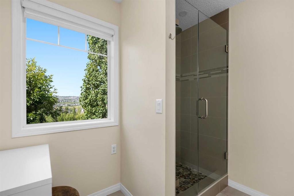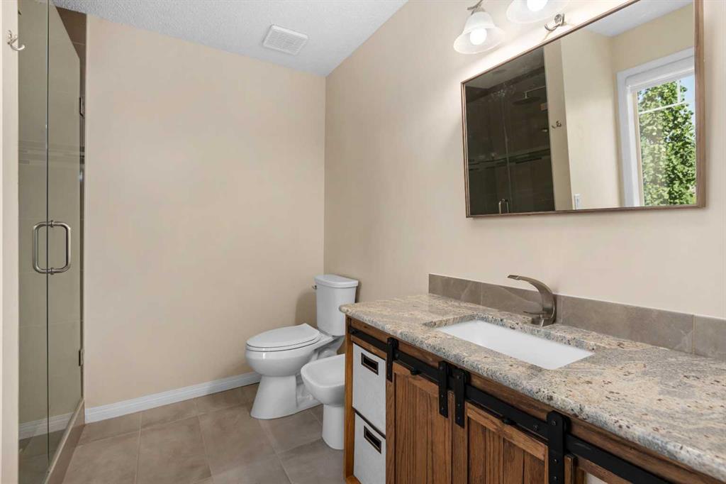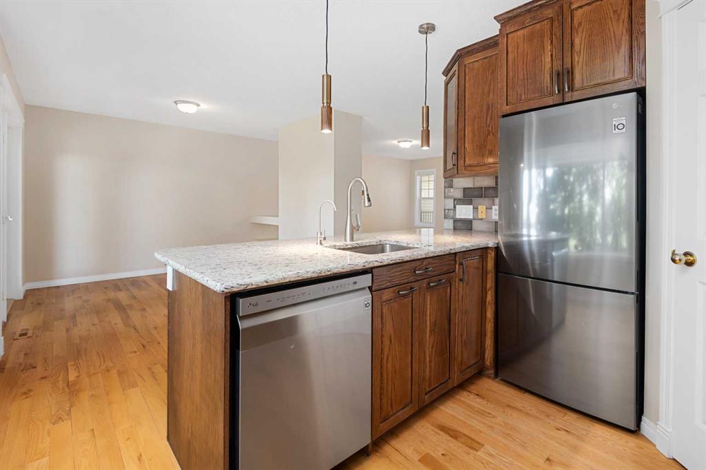 Completely renovated just three years ago, the home features gleaming HARDWOOD floors on the main level, a modernized kitchen with premium GRANITE counters, custom cabinetry, a walk-in pantry, and a water purification system delivering clean, filtered drinking water. All appliances were replaced at the time of renovation, including a GAS range with Air Fryer oven, refrigerator, microwave, dishwasher, and a high-efficiency tower washer/dryer. The open-concept main floor provides a welcoming living room with a cozy gas fireplace, a bright dining area ideal for gatherings, and access to a private balcony with a natural gas BBQ hookup—perfect for enjoying summer evenings outdoors. At the time of renovation, the entire home was freshly painted and new carpeting was installed on both the upper and lower levels. Upstairs, you’ll find two spacious bedrooms, each with its own ensuite bath. The primary suite is filled with natural light, while its ensuite showcases upgrades including a European-style bidet, custom vanity, and a spa-inspired shower. A versatile bonus room offers flexibility as a TV lounge, home office, or optional third bedroom. The WALK-OUT basement expands the living space with a large recreation room, an additional bedroom with a newly renovated full bathroom, and a separate utility room with furnace and humidifier. Comfort is ensured with central forced-air heating plus electric baseboard heating in the lower level. The double attached garage is fully drywalled, painted, and enhanced with a fully boarded, lit attic storage area—an uncommon but highly practical feature. Added conveniences include a central vacuum system and fibre internet wiring (Telus-ready). From autumn through spring, enjoy expansive, unobstructed VIEWS across Hidden Valley; while in summer, mature trees provide shade and privacy. Ideally located near parks, pathways, schools, shopping, and offering quick access to Stoney Trail, Deerfoot Trail, and downtown Calgary, this immaculate, move-in ready home is a rare find and absolutely worth viewing.