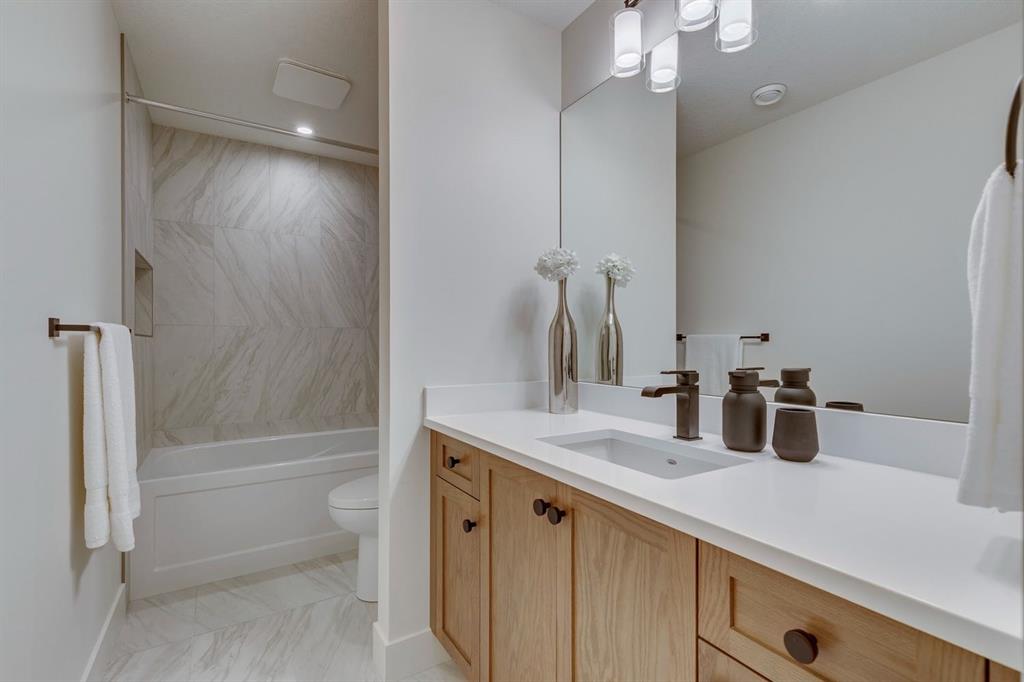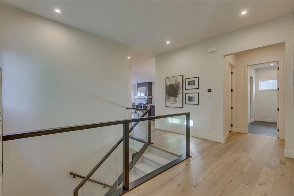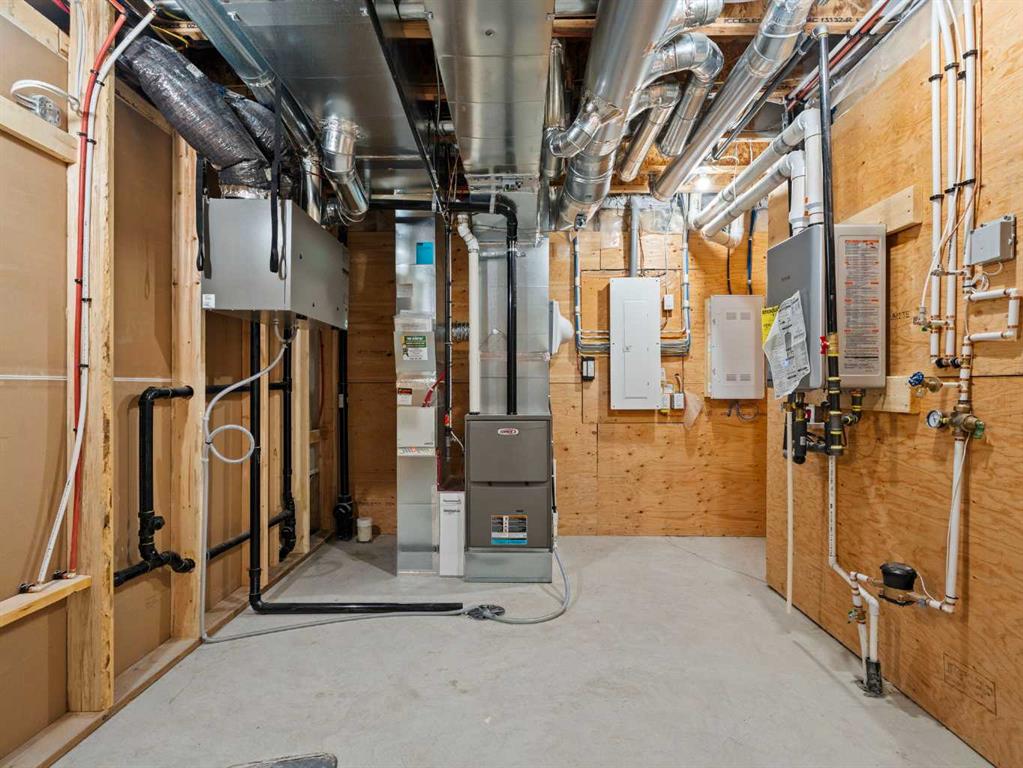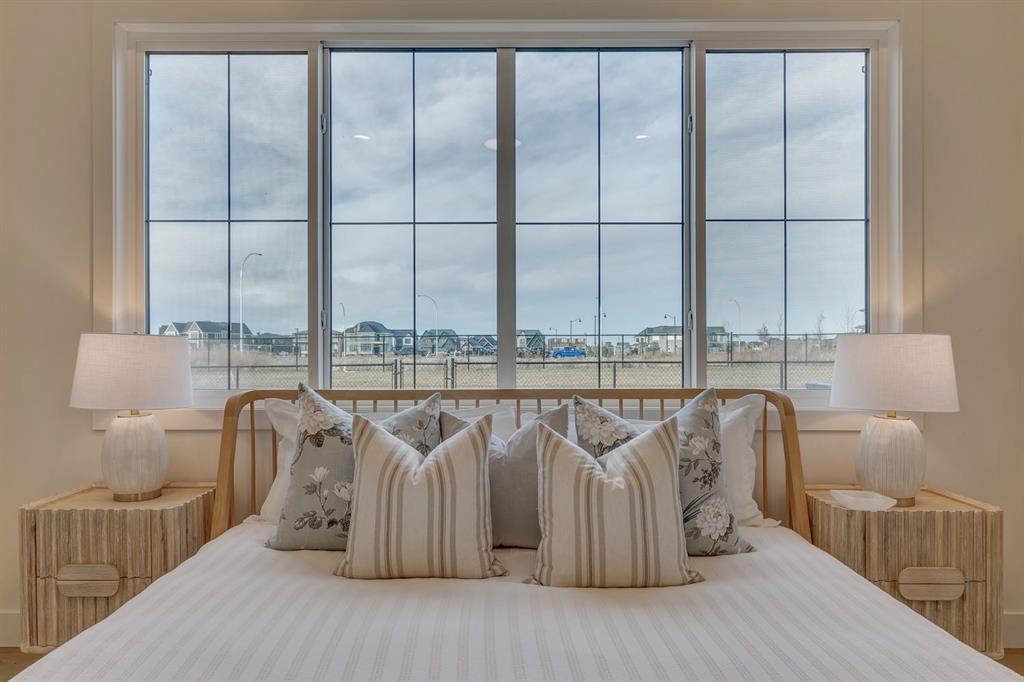 OPEN HOUSE SATURDAY & SUNDAY, OCTOBER 25 & 26 FROM 1:00-4:00 PM…..Nestled in the heart of Calgary’s prestigious Mahogany Estates, this brand-new custom-built, 3,200 sq ft bungalow by Baywest Homes redefines lakeside living. With exclusive access to a semi-private dock and beach, this home offers an unparalleled lifestyle in one of the city’s most sought-after lake communities. The main level, spanning nearly 1,700 square feet, boasts soaring nine-foot ceilings and wide plank luxury hardwood flooring in natural wood tones, creating a warm and inviting ambiance. The open-concept design seamlessly integrates the living, dining, and kitchen areas, making it perfect for both entertaining and everyday living. The kitchen is a chef’s dream, featuring full-height white cabinetry, a striking oversized dark island, and a high-end appliance package that includes a high-end Kitchen Aid fridge-freezer and built-in oven with a convention microwave. Quartz countertops extend as a sleek backsplash, complemented by designer lighting and a butler’s pantry equipped with a bar sink and beverage fridge. The living room, with its elegant feature fireplace, opens onto a north-facing deck overlooking serene green space, complete with a gas line for effortless outdoor grilling. The master suite is a private retreat, offering a spa-like en-suite with heated tile floors, an oversized shower, a freestanding soaker tub, dual vanities, and a private water closet. A spacious walk-in closet and adjacent laundry room add to the convenience and luxury of this space. The main floor also includes a private office with glass French doors, a well-appointed mudroom, and a walk-in closet. Descending to the fully finished basement, you’ll find a large recreation room, a family room, two generously sized bedrooms, and a full bathroom with heated floors. The home is thoughtfully designed with ample storage and numerous upgrades, including tankless hot water and triple-paned windows. The attached triple garage, with its 14-foot ceilings, offers ample space for a car lift and is equipped with 220V for a vehicle charging station. This property is a masterpiece of design and functionality, offering the perfect blend of luxury, comfort, and convenience. With its prime location and exclusive amenities, lakeside living in Mahogany has never been more enticing.