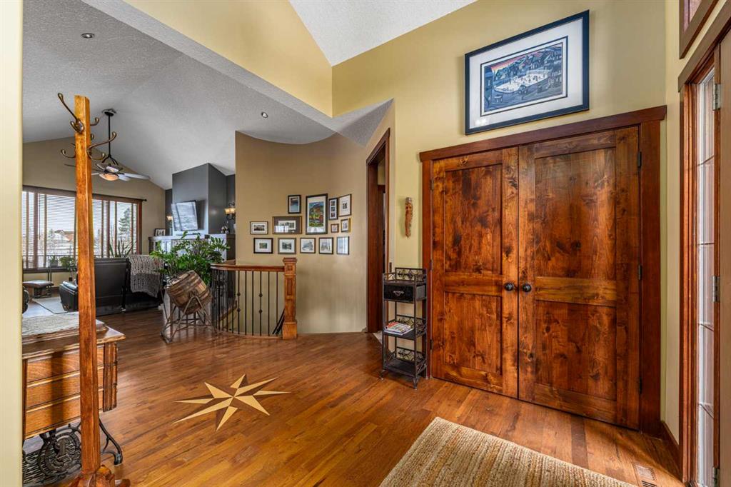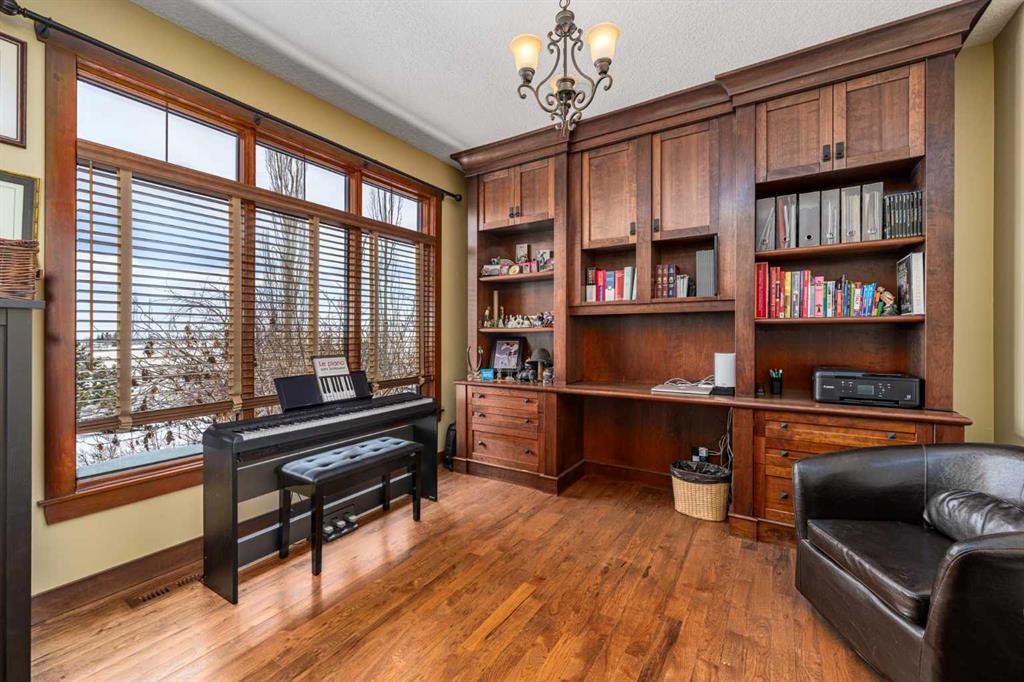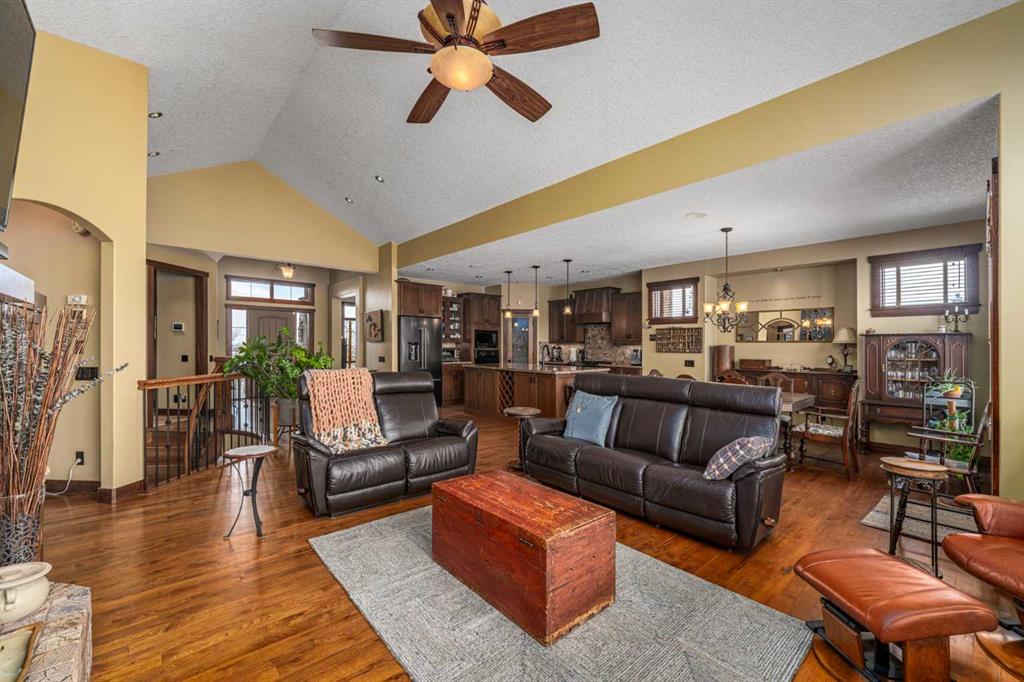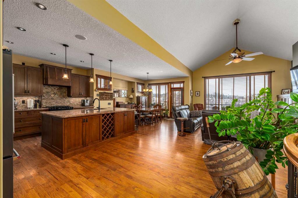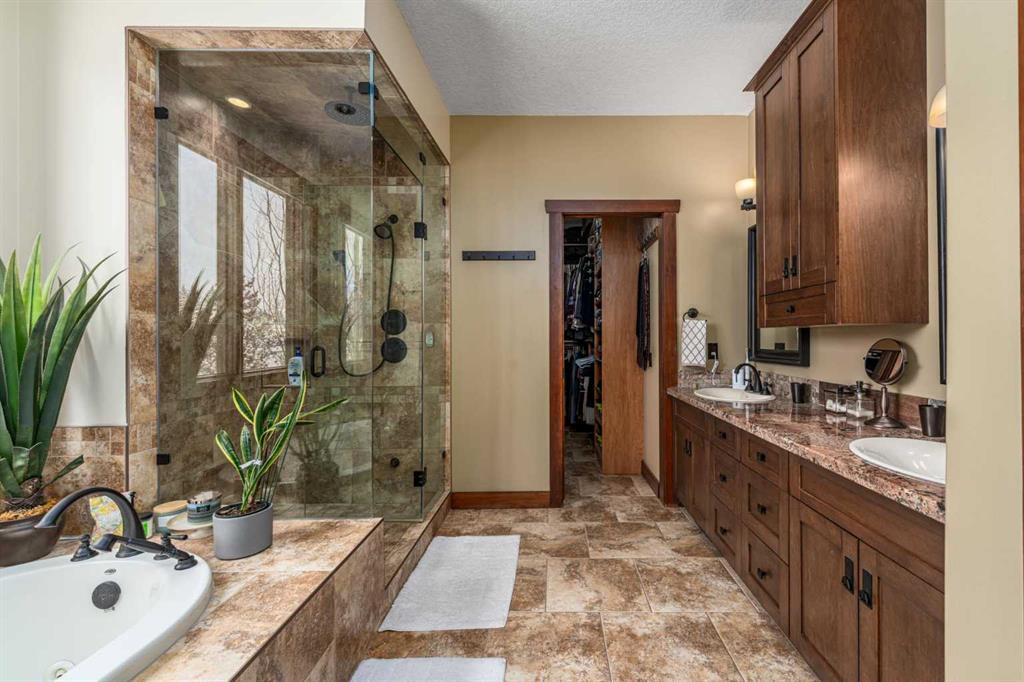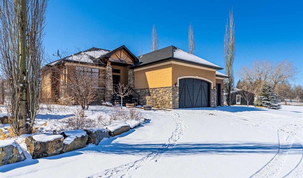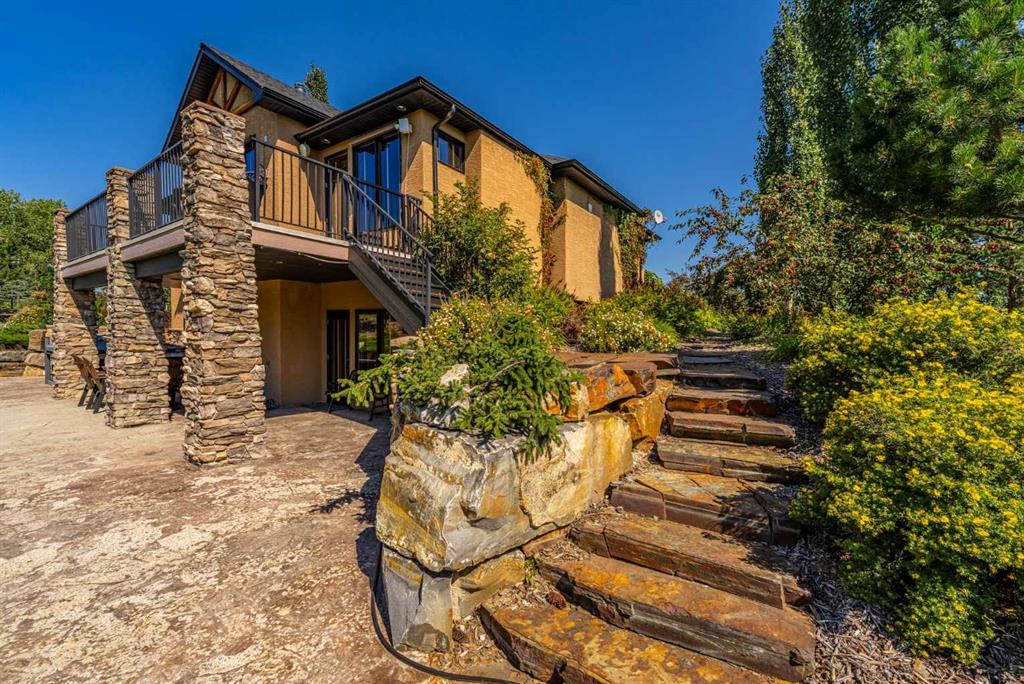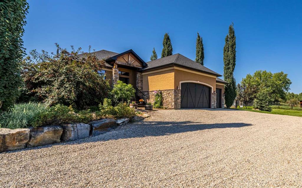 Set on 4.07 acres just minutes from Priddis and only 10 minutes to Shawnessy, this exceptional executive walkout bungalow offers a blend of refined living and country tranquility. Built in 2007, the home features 3 bedrooms, 2.5 bathrooms, a bright den, air conditioning, and two fireplaces, along with a thoughtfully designed walkout basement complete with a convenient Jack and Jill bathroom. The spa-inspired primary ensuite is a true retreat, featuring a steam shower. Designed for modern living, the home is wired for sound inside and out, with data lines throughout, and offers an abundance of well-planned storage.