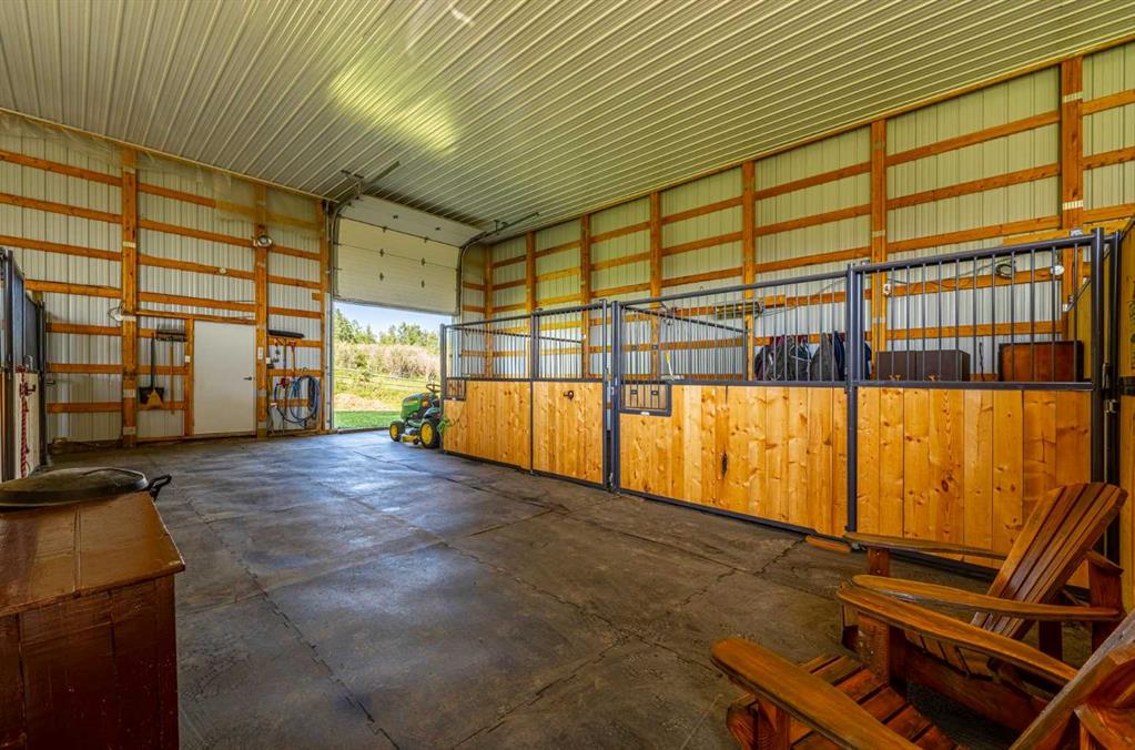 The triple attached heated garage is complemented by a versatile 40’ x 60’ shop with four horse stalls, electricity, and two overhead doors—ideal for equestrian use, RV storage, hobbies, or additional storage.