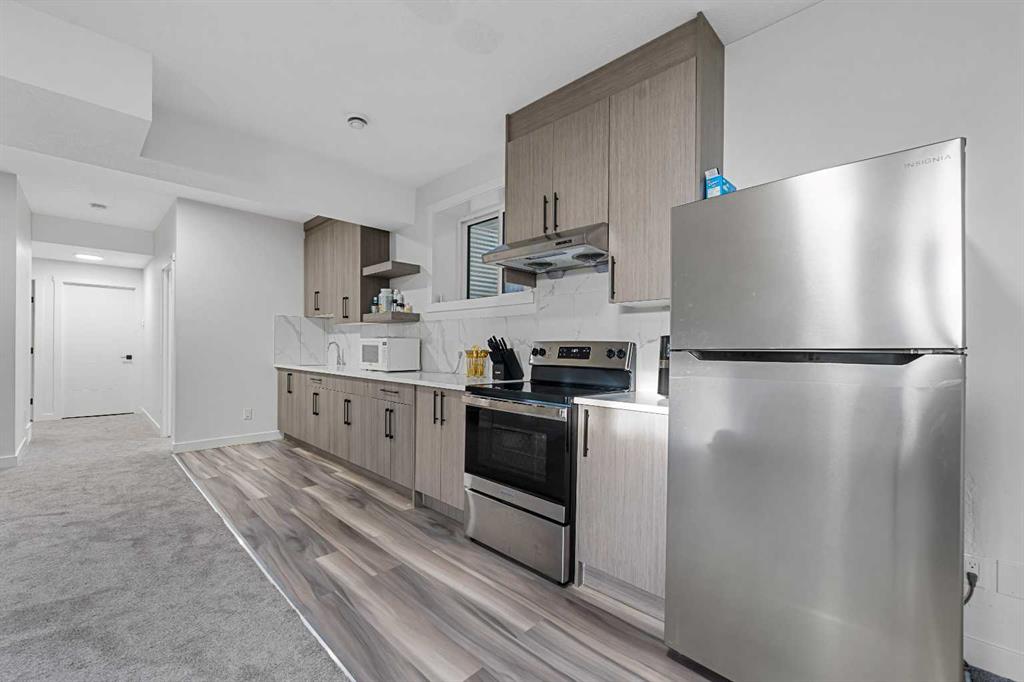 ** Main Level Bedroom & 4pc Bath** | 5 Bedrooms Upstairs | Exquisite Finishes | Quartz Countertops | LVP Flooring | Two Toned Kitchen | Full Height Cabinets | Stainless Steel Appliances | Gas Cooktop | Electric Fireplace | High Ceilings | 2 Primary Bedrooms | Upper-Level Laundry Room | 2 Bedroom Basement Suite (Illegal) | Separate Entry | Basement Laundry | Large Backyard | Front Attached Double Garage | Driveway | Incredible Location | Near Hugh. A. Bennet CBE School, Parks, Baseball Diamond & Shopping. Welcome to your beautiful, spacious 2-storey family home boasting 2816 Sq. Ft. throughout the main and upper levels with an additional 1100 Sq. Ft. in the basement suite(illegal). The front door opens to a grand open floor plan foyer, living and dining rooms with high ceilings and recessed lighting. The main level bedroom and 4pc bath are a great bonus for a large family or overnight guests! The sparkling kitchen is finished with two-toned full-height cabinets, quartz countertops, built-in stainless-steel appliances, a gas cooktop and a large centre island with barstool seating. This home is perfect for entertaining friends and family! The kitchen has a corner pantry with a frosted glass door for a clean, organized feel. The sliding glass doors off the kitchen make indoor/outdoor living easy! This leads to the backyard which is ready for you to build the deck of your dreams! The living room is accented with an electric fireplace surrounded by floor-to-ceiling black tile. The main level is complete with a mud room with built-in shelving off the interior garage door. Upstairs has 5 bedrooms, 4 ensuite bathrooms and a laundry room! The first primary bedroom has tray ceilings, a deep walk-in closet and a stunning 5pc ensuite. The 5pc ensuite has a deep soaking tub, a walk-in shower with a bench and a double vanity with plenty of storage below. The 2nd primary bedroom has a walk-in closet and a 4pc ensuite with a tub/shower combo. Bedroom 3 has a double-door closet and a 4pc ensuite bath. Bedrooms 4 and 5 both have walk-in closets and share the 4pc bathroom. Bedroom 4 has a cheater door to this bathroom making it an ensuite! The upper-level laundry is every homeowner’s dream as it’s near all the bedrooms! This is outfitted with a sink, shelf and plenty of cabinet storage. Downstairs, the 2 bedroom basement suite(illegal) has a separate side entry! The basement has high ceilings that emphasize the grandiose size of this lower level! The open floor plan kitchen and rec room allow for a comfortable living and dining space. The kitchen is finished with full-height cabinets and stainless steel appliances! The 2 bedrooms on this level are both large and have double-door closets. The 4pc bathroom on this level has a tub/shower combo and an extended single vanity with storage below. The basement has its own laundry too! The front attached garage and driveway allow for 4 vehicles to be parked at any time! Hurry and book your showing at this incredible home today!