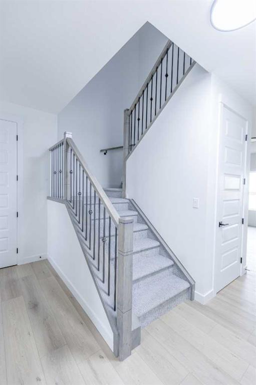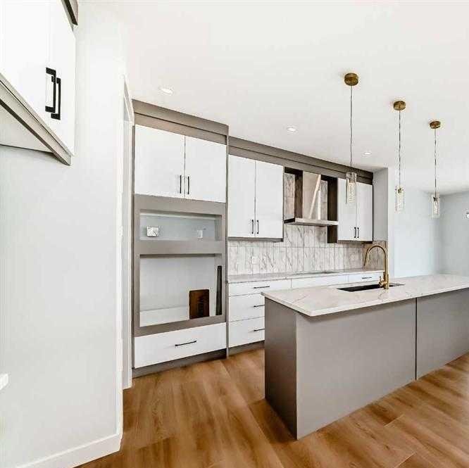 Step inside to discover a beautifully upgraded interior featuring a modern, high-end kitchen complete with sleek quartz countertops, full-height cabinetry extending to the ceiling, elegant black hardware, and a functional dual-sink setup. A premium appliance package—including a cooktop, refrigerator, built-in microwave, and washer/dryer—adds both style and convenience. The inviting main living area is enhanced by a cozy fireplace, while upgraded spindle railings and tile finishes elevate the home’s contemporary appeal. Upstairs, the convenience of a dedicated laundry room makes everyday living effortless. The front double attached garage offers ample space for parking and storage, complemented by abundant lighting throughout the home.