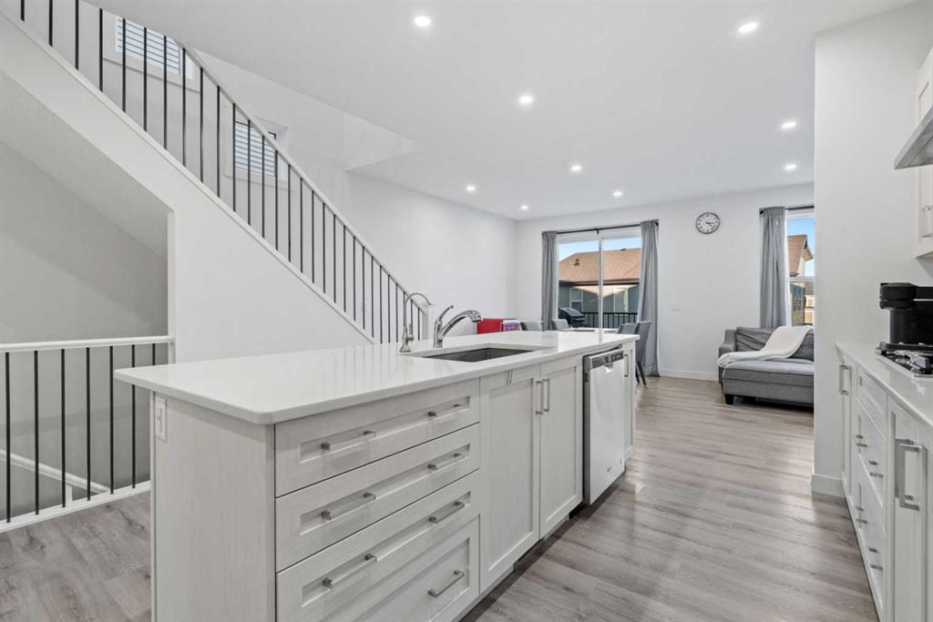Welcome to this fully FULLY FINISHED WALKOUT BASEMENT home in the heart of Sage Hill, offering over 3,200 sq. ft. of total living space (including the basement). A spacious and inviting foyer sets the tone as you step inside, with clear sightlines guiding you to the bright, open-concept main living area at the rear of the home. Expansive windows fill the space with natural light throughout the day. The main floor features 9-foot ceilings, pot lights, and a dedicated office—ideal for working from home or a quiet study space. At the heart of the home is a chef-inspired kitchen that seamlessly blends style and practicality, showcasing a large central island, chimney-style hood fan, built-in wall oven and microwave, and a gas cooktop. The adjacent dining nook opens onto a deck with a gas BBQ line, extending your living space outdoors. Completing the main level are a functional mudroom with added storage shelving, connecting directly to the double attached garage with overhead storage & built-in shelving. Upstairs, upgraded metal railings lead to a thoughtfully designed second floor featuring three spacious bedrooms, a stunning VAULTED CEILING BONUS ROOM, and a main bathroom. The luxurious primary suite offers a private retreat with a spa-like ensuite (with Vaulted / High ceilings), including a soaker tub, standalone shower, dual vanities, and a generous walk-in closet with direct access to the separate laundry room, complete with a sink and extra storage. The professionally finished walkout basement adds outstanding flexibility, featuring a bedroom, full bathroom, office, recreation/exercise area, and ample storage, with direct access to a concrete patio beneath the deck. Additional upgrades include TRIPLE-PANES windows, central air conditioning, a water softener, water filtration, and an EXTERIOR HOT WATER TAP. Major recent updates include a NEW ROOF (2025), NEW SIDING (one side, 2025), and a NEW GARAGE DOOR (2025).
