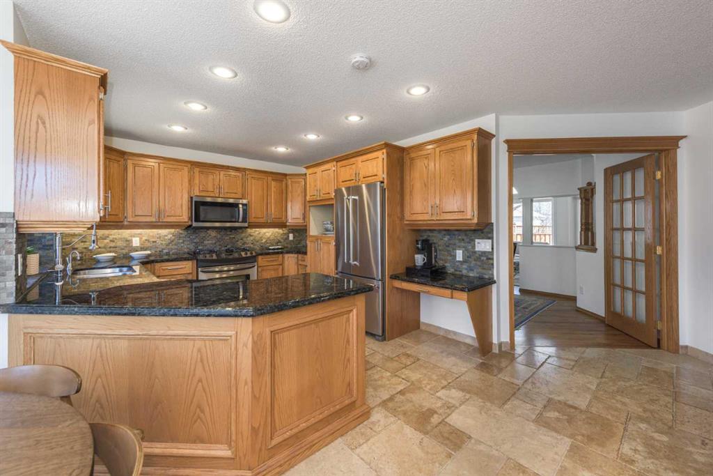 OPEN HOUSE SUNDAY APRIL 26TH FROM 2:00PM – 4:00PM -Welcome to this beautifully maintained family home, ideally situated on a quiet street in the highly sought-after community of Scenic Acres. Backing directly onto a serene park with a west-facing backyard, this exceptional walkout home offers the perfect blend of privacy, comfort, and convenience. Thoughtfully upgraded over the years and freshly painted in 2026, this home showcases numerous significant capital improvements, ensuring peace of mind for years to come. A standout feature is the solar panel system installed in 2024, with a cost exceeding $41,000. The panels are strategically positioned to be out of sight, maintaining the home’s curb appeal while providing exceptional energy efficiency and long-term savings. Additional notable updates include two Lennox furnaces with Nest thermostats (2019), central air conditioning (2019), windows throughout (2018–2021), shingles (2016), LED lighting and smart switches, water softener (2020), washer and dryer (2019), fridge and microwave (2020), garage door and opener (2017), and a gas fireplace conversion (2019). Interior renovations completed in 2014 feature hardwood, carpet, and travertine flooring, granite countertops, and beautifully updated bathrooms, including heated floors and a luxurious steam shower in the primary ensuite. The main floor features an inviting and functional layout, highlighted by an elegant formal living room with a soaring high ceiling and a formal dining area—perfect for entertaining. The spacious kitchen offers an eating nook overlooking the park, creating a bright and relaxing setting for everyday meals. A warm and welcoming family room with custom built-ins and a gas fireplace provides the ideal space for comfortable living. Completing this level are a convenient powder room and a functional mudroom with laundry and direct access to the heated double attached garage. Upstairs, you’ll find four generously sized bedrooms, including a tranquil primary retreat with picturesque park views and a spa-inspired ensuite featuring heated floors and a steam shower. The fully developed walkout basement adds incredible versatility, featuring a large recreation room with a full wall of windows, a fifth bedroom, a full bathroom, and ample storage space—ideal for guests or a growing family. Outdoor living is equally impressive, with a charming stamped concrete front patio perfect for morning coffee, an elevated rear deck with a BBQ gas line and awning, and a lower patio that opens to a beautifully landscaped yard with mature trees and direct park access. Located in an established, family-friendly neighbourhood, this home is within walking distance to public, Catholic, and French immersion schools, the C-Train station, parks, pathways, and the Scenic Acres community centre. Enjoy convenient shopping and amenities at Crowfoot Crossing, along with quick access to major roadways, making downtown commutes and weekend escapes to the Rocky Mountains effortless.