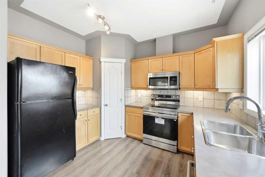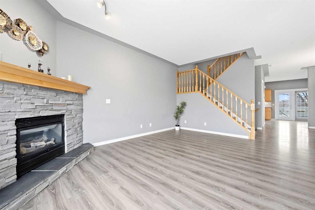 Welcome to this spacious and well-appointed 3-bedroom, 2.5-bathroom home offering a highly desirable, family-friendly layout, a fully finished walkout basement, attached double garage, and low-maintenance living. The bright and open main floor features a cozy fireplace, a functional kitchen complete with a brand new Samsung stainless steel range, and a sunny breakfast nook—perfect for everyday living and entertaining. Upstairs, you’ll find three generously sized bedrooms, providing comfortable space for the whole family. Start your mornings in the primary retreat, where you’ll enjoy beautiful Rocky Mountain views, a walk-in closet, and a 4-piece ensuite with a relaxing jetted tub. The fully finished walkout basement adds incredible versatility, featuring a dedicated laundry room with utility sink and a flexible living area ideal for a family room, home office, or gym. Step outside to the balcony equipped with a natural gas BBQ line—perfect for summer gatherings. Located in a prime, convenient area close to restaurants, shopping, Cineplex, schools, parks, and major routes, this home offers both comfort and accessibility.