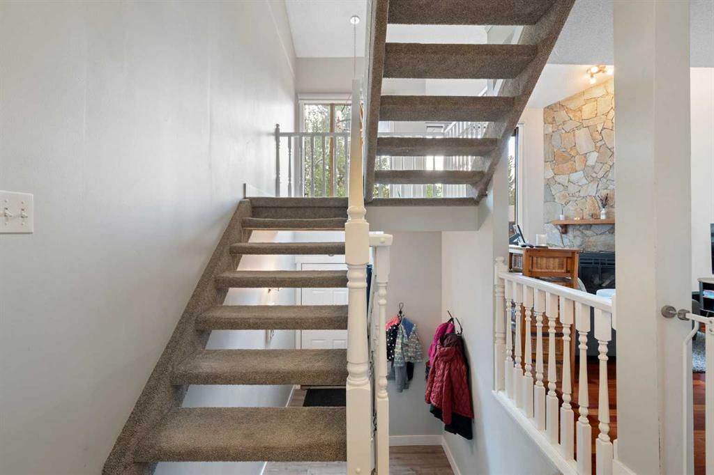 Looking for a spacious town house with an attached garage and basement in the sought after neighborhood of Silver Springs? Look no further. Updates include newer hardwood flooring, carpets, hot water tank, FURNACE June 2025, garage door, bathroom fans and gorgeous kitchen renovation. The main floor features a bright and spacious living room with a floor to ceiling natural stone fireplace. The updated kitchen has white shaker cabinets, stylish subway tile back splash, stainless steel appliance package, main floor laundry and breakfast nook leading to your private back deck. The dining area features a built-in wet bar and over looks the open concept living room with soaring VAULTED ceilings. Don’t forget the 2 pc powder room. Upstairs you will find a large primary bedroom with a 2 pc en-suite, 2nd bedroom and 4 pc main bathroom with large tub with newer tile surround. There is a den/office area open to the main floor. The fully developed lower level has a flex space that can be a family room/office/3rd bedroom. The OVER sized single garage has a new garage door and lots of extra storage plus a drive way for extra parking. This is a pet friendly complex that needs board approval. Silver Springs has lots to offer including schools, shopping, easy access to down town and urban parks and pathways. This is a very well taken care of and well run complex. Pet friendly with board approval.