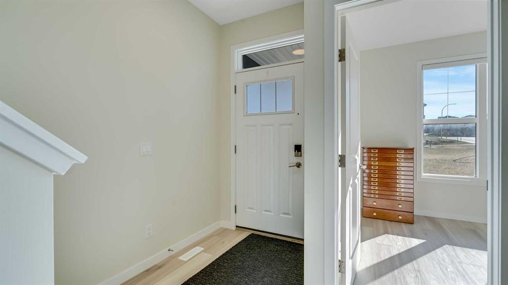 Imagine waking up each day to a park-like greenspace right at your doorstep—where kids can run freely, parents can relax, and in summer months the community hosts outdoor movie nights and fun events just steps away. This rare and coveted setting elevates daily living and makes this home truly special. Built by Jayman in better-than-new condition, this beautifully maintained 2-storey offers thoughtful upgrades, high-efficiency features, and outstanding natural light thanks to its full south-facing exposure.——The welcoming foyer opens into 9’ ceilings and stylish LVP flooring. A sun-filled flex room on the main level offers valuable versatility—perfect as a bedroom for parents, a study space for children, or a bright home office. The main floor flex room can also be used as a bedroom, giving a total of five bedrooms in the home. The open-concept kitchen is the heart of the home, complete with sleek quartz counters, gas cooktop, built-in oven, and a generous walk-in pantry. Step out to the spacious deck for sunny morning coffees or evening BBQs overlooking the greenspace.——The upper level features a large bonus room plus three well-appointed bedrooms. The primary suite offers a calming retreat with a spacious bedroom, 4-piece ensuite, and walk-in closet. A roomy laundry room makes household tasks easy and efficient.——The fully finished walk-out level expands your living space with a sizeable rec/media area, a fourth bedroom, and a full bathroom. With direct access to the backyard, this level offers fantastic potential for multi-generational living or a private setup to help offset housing costs.——This home includes a tankless water heater, high-efficiency furnace, radon mitigation system, dechlorinator, and water softener. A large double detached garage (22’ x 20’) and a low-maintenance backyard complete the package. Located in a vibrant new community surrounded by green space, family-friendly amenities, and programs designed for outdoor enjoyment, this turnkey property is truly where everyday living feels elevated.