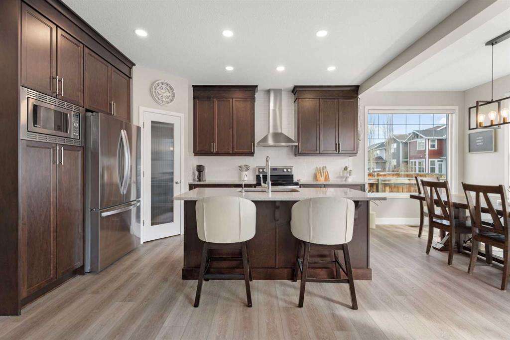 OPEN HOUSE this SATURDAY APRIL 25 2:00-4:00pm…..Upon entry you are greeted by a grand foyer, featuring Updated flooring with a Modern touch in Mind, Wrought Iron Stair Railings and Upgraded Light Fixtures. The kitchen has Rich Cabinetry reaching to the full 9′ ceilings, High end Stainless Appliances, low maintenance Quartz Stone counter tops, Drinking Water Filtration and an Under-Mount Granite sink. Take note of the special lighting in the large dining area that overlooks the back yard. The main floor is rounded out by a spacious laundry room, a den/office/flex room, a Gas Fireplace, Beautiful Windows, and Very Expensive Window Coverings. The Upper level has a Massive Bonus Room (again with the most spectacular windows) and a total of 3 bedrooms. The Primary Bedroom features a Beautiful Ensuite Bathroom that has 2 sinks, a Huge Soaker Tub, a Tiled shower, and a Separate Water Closet. This Energy efficient Home has High End Triple Pane Windows and is as good as NEW, except for the fact that this one is Landscaped, Fenced, and the deck is built. The lot is Larger than Most being on a CORNER, the Exterior has great curb Appeal, and the interior is Full of Upgrades, All in the Right Places. Additional features include a Gas line to the stove, upgraded carpet, Granite throughout the Bathrooms, a Fantastic Basement layout that is perfect for future development, a Spacious Insulated Garage with a High Ceiling and more. You can have all of this within walking distance to Schools, Shopping, coffee shops, pubs, restaurants, Playgrounds, Walking paths, the Lake, and South Health Campus. Did I forget the Central AIR CONDITIONING?