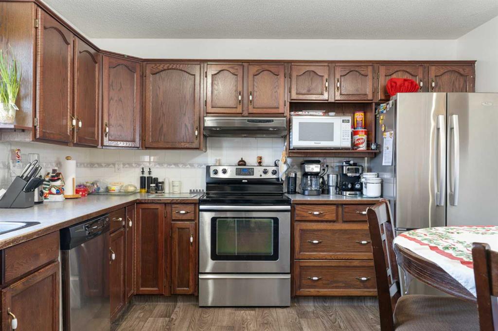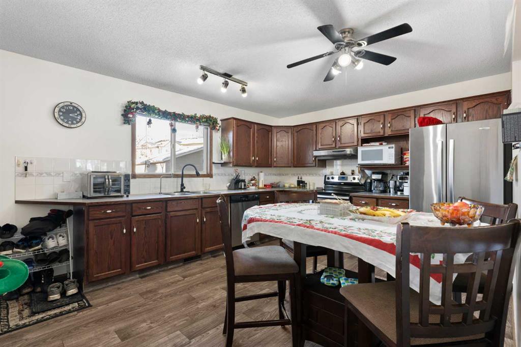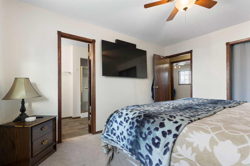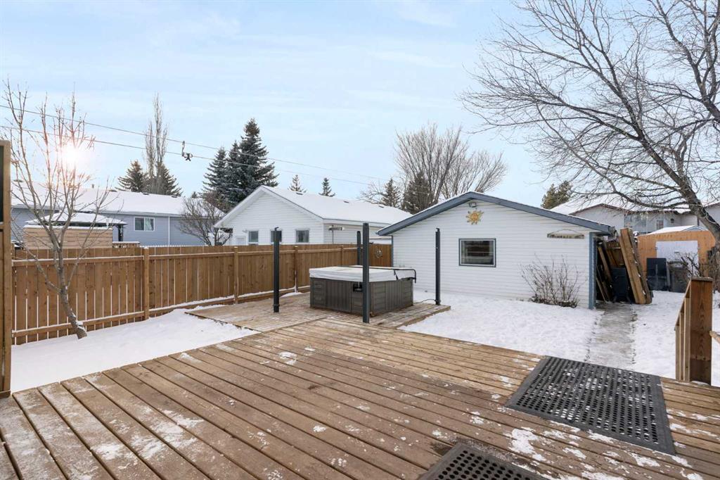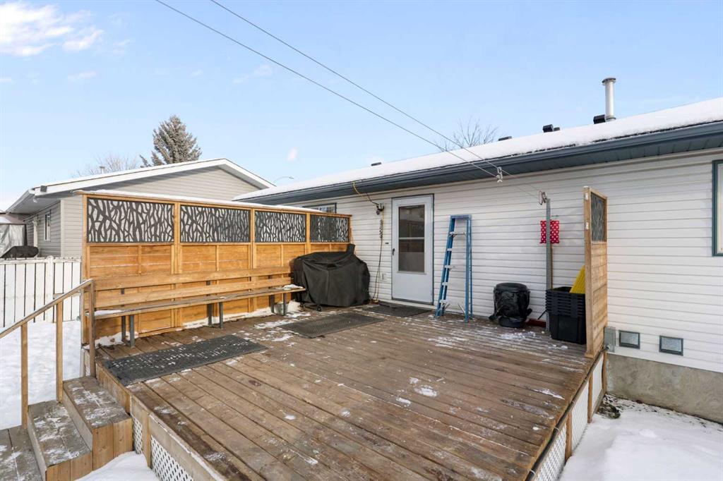 Hello, Gorgeous! Welcome to 18 Greenview Crescent, a bright and cheerful bungalow perfectly situated on a quiet street backing onto a park in the community of Green Meadow. This well cared for home offers over 1,100 square feet above grade with an inviting main floor featuring a large bay window in the living room that fills the space with natural light, along with an eat in kitchen complete with stainless steel appliances and plenty of cabinet space. The main level includes three bedrooms, including a spacious primary bedroom with a full ensuite, plus an additional four piece bathroom. The fully finished basement extends your living space with a large family room, two additional bedrooms, another full bathroom, dedicated laundry, and generous storage areas. Outside, the private backyard features a large deck, fruit and rose bushes, and a fire pit, creating the perfect space for relaxing or entertaining. An oversized double detached garage and extra parking add to the convenience of this fantastic property. With schools, playgrounds, shopping, and amenities nearby, this home offers outstanding value and an incredible opportunity in a desirable location. Do not miss your chance to make this wonderful Strathmore bungalow your own.