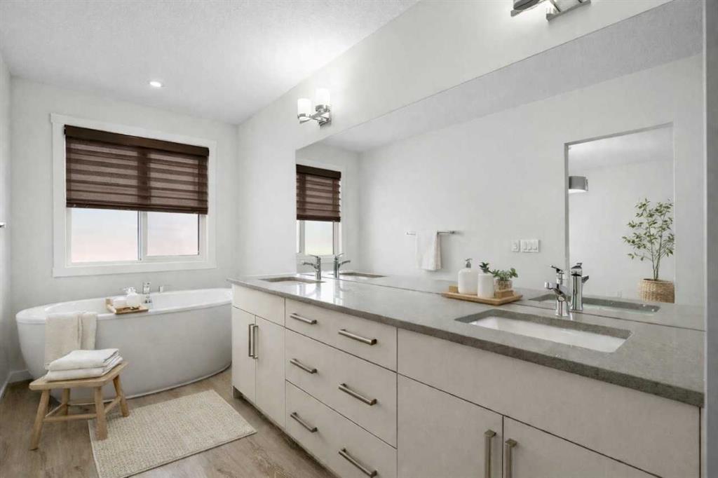 PRICE REDUCED!! Located in the highly desirable Heartwood community with parks, pathways, and nearby schools, this home features a separate side entry, perfect for a potential future basement development. Step into a bright open-to-above foyer with 9’ knockdown ceilings and abundant natural light. The main floor offers a versatile flex room for office or guests and a chef-inspired kitchen with ceiling-height cabinets, soft-close drawers, a sleek chimney hood fan, premium finishes, abundant natural and recessed lighting, and ample storage. Upstairs, the primary bedroom boasts a 5-piece ensuite with dual sinks, a tiled shower and a soaker tub, while two additional bedrooms share a full bathroom and a bonus room provides space for family or study. Elegant metal spindle railings, added windows, thoughtful quality upgrades, Smart Home technology, and a 9’ basement foundation height complete this move-in ready home.